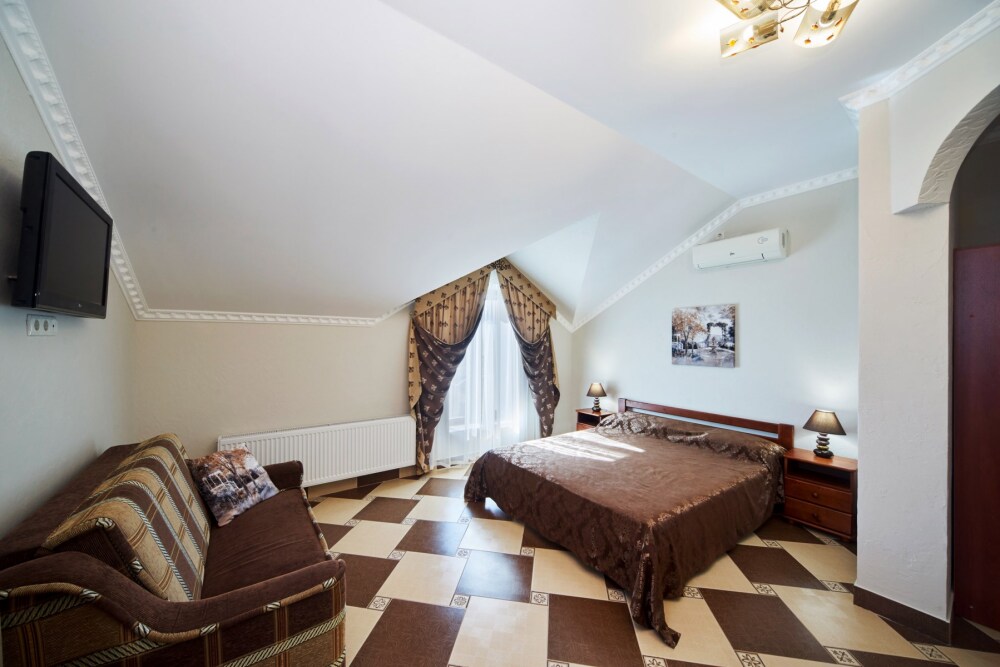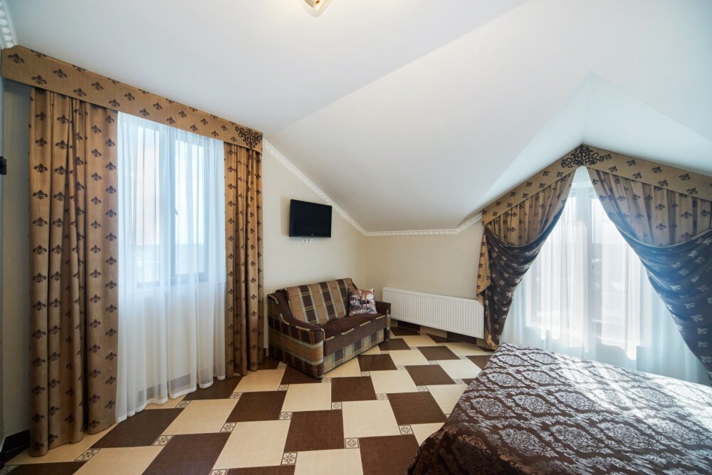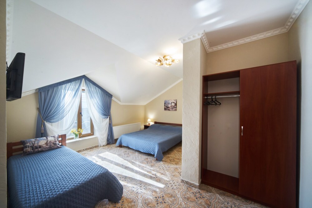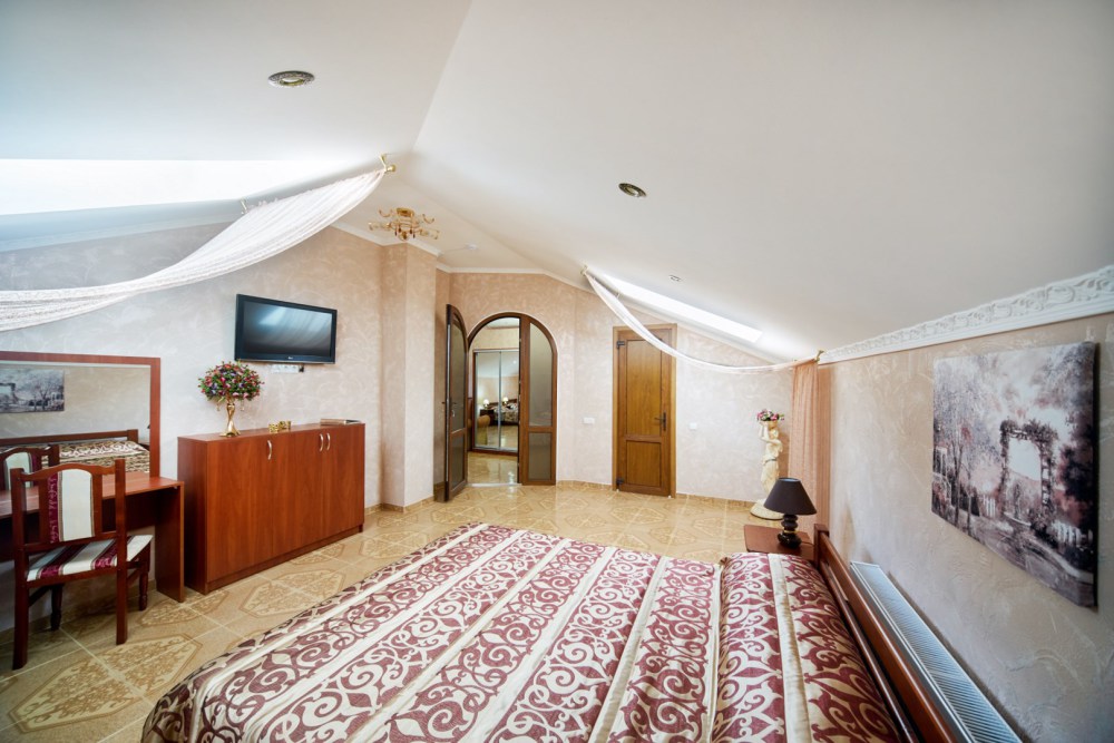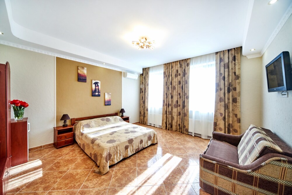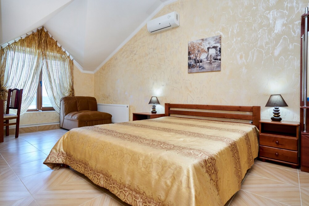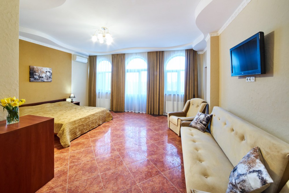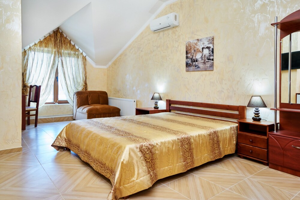 В гостевом доме есть номера, которые подойдут как небольшой семье или компании, так и большие двухкомнатные номера, которые вмещают в себя до 6 человек.