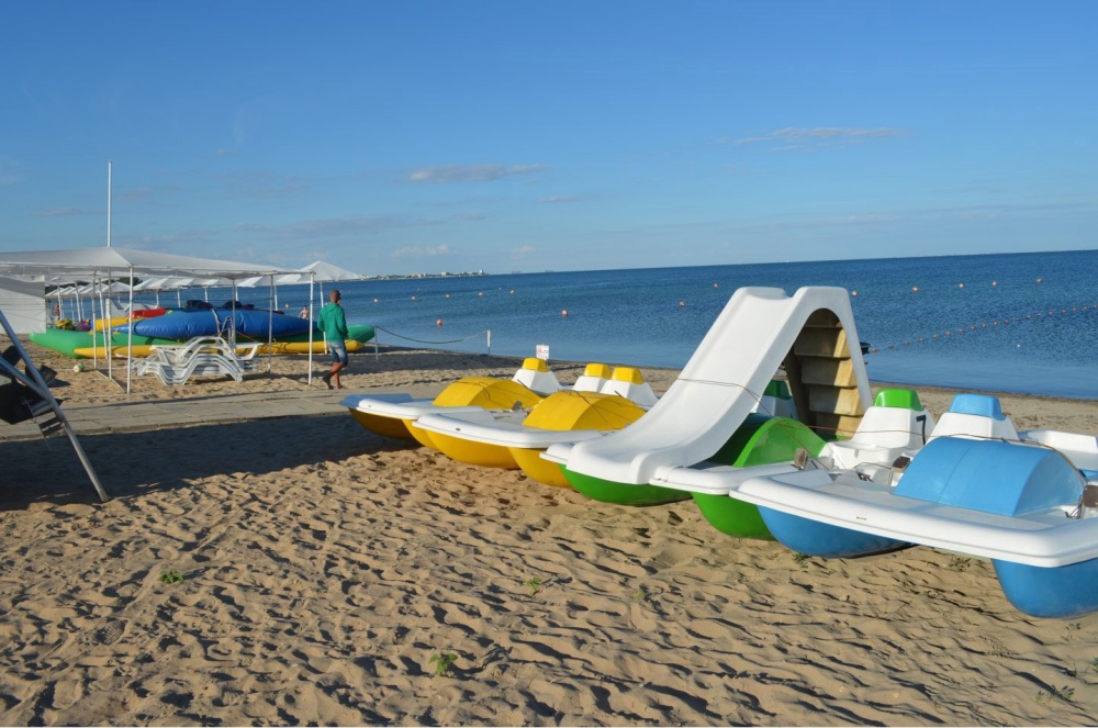 Мамам с детками будет интересно посетить такие места, как: аквапарк «У Лукоморья», дельфинарий, аквариум, тропик парк, дом великана, веревочный парк, парк «Крым в миниатюре» или парк аттракционов. Все это находится в 7 км от нас, на центральной набережной г. Евпатории. У Вас будет уникальная возможность посетить самый большой аквапарк Крыма «Банановая республика», к которому очень часто курсируют бесплатные маршрутные автомобили.