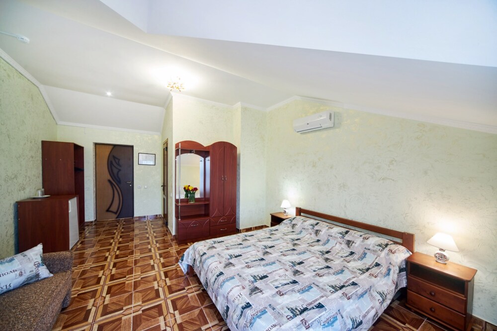 Номера оборудованы всем необходимым. В каждом номере современный ремонт с хорошей мебелью и санузлом. В номерах установлены: кондиционер ( Сплит система), ТV, сейф, мини-холодильник, фен. На всей территории гостевого дома можно воспользоваться бесплатным Wi-Fi.