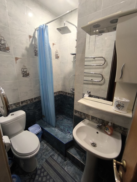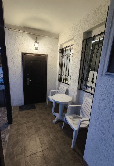 В квартире есть: двухспальная кровать,раскладной диван, кресло-кровать, укомплектованная кухня, душевая кабинка, горячая и холодная вода постоянно, кондиционер,стиральная машина, утюг, телевизор, кабельное ТВ, Wi-Fi, небольшой закрытый дворик.