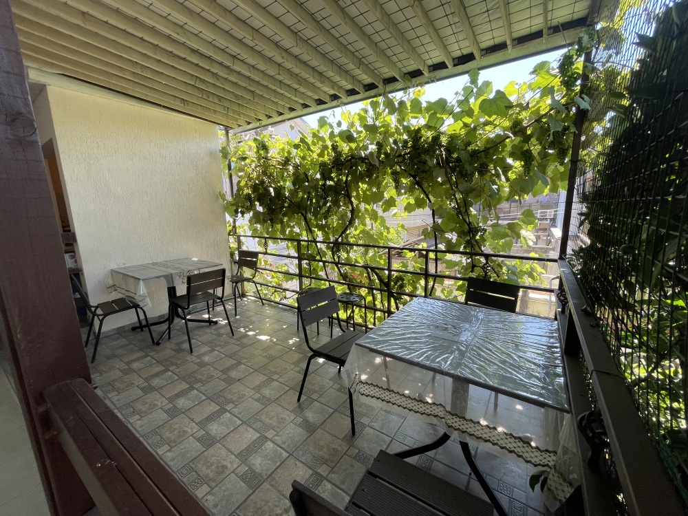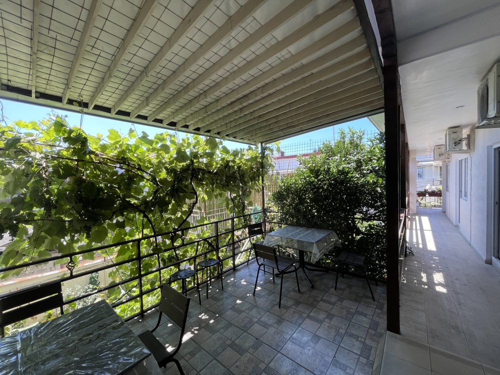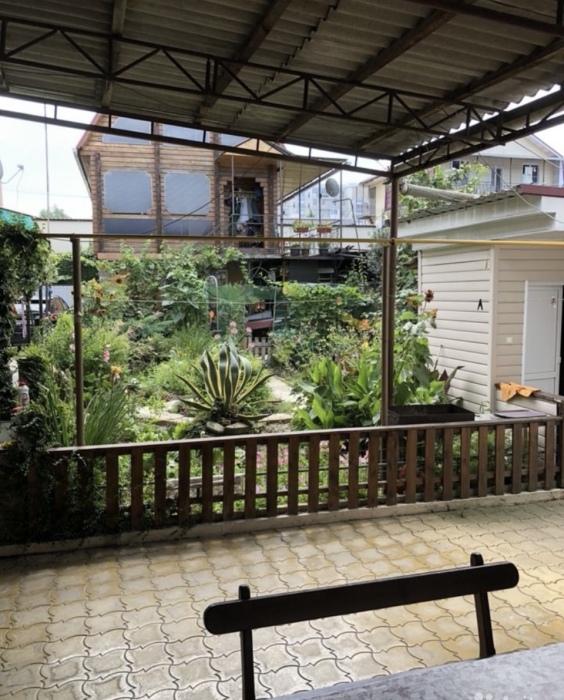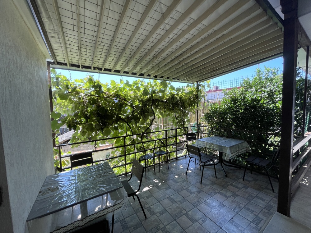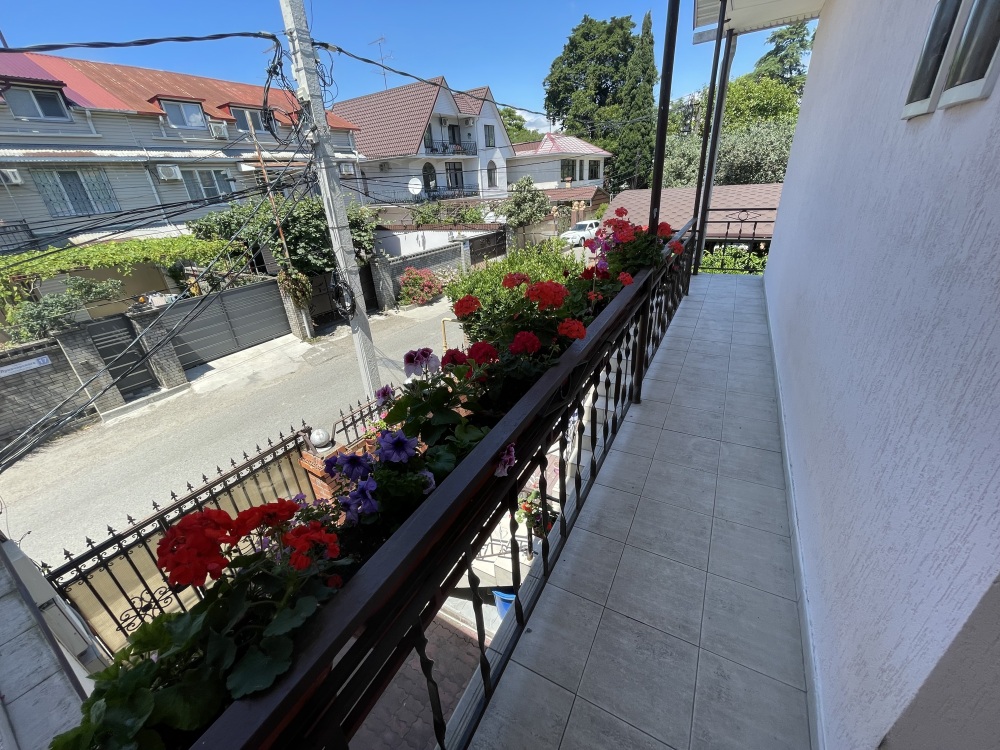 Гостевой дом располагается на улице Луначарского в центральной части Адлера. Фасад и территория дома украшены зелеными насаждениями и цветами. Для маленьких туристов предоставляются игрушки. Листья винограда создают естественную тень, которая защищает двор дома от летнего солнца.