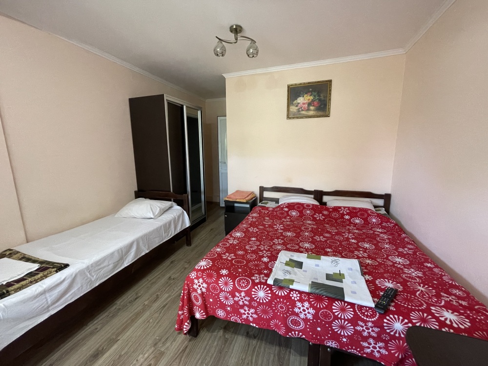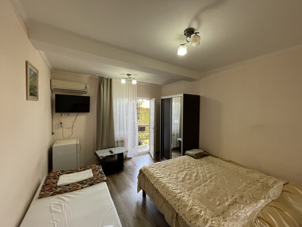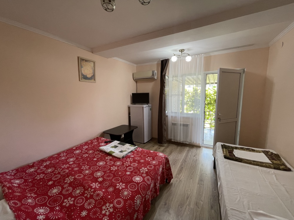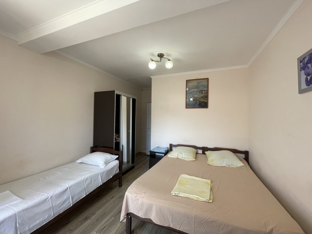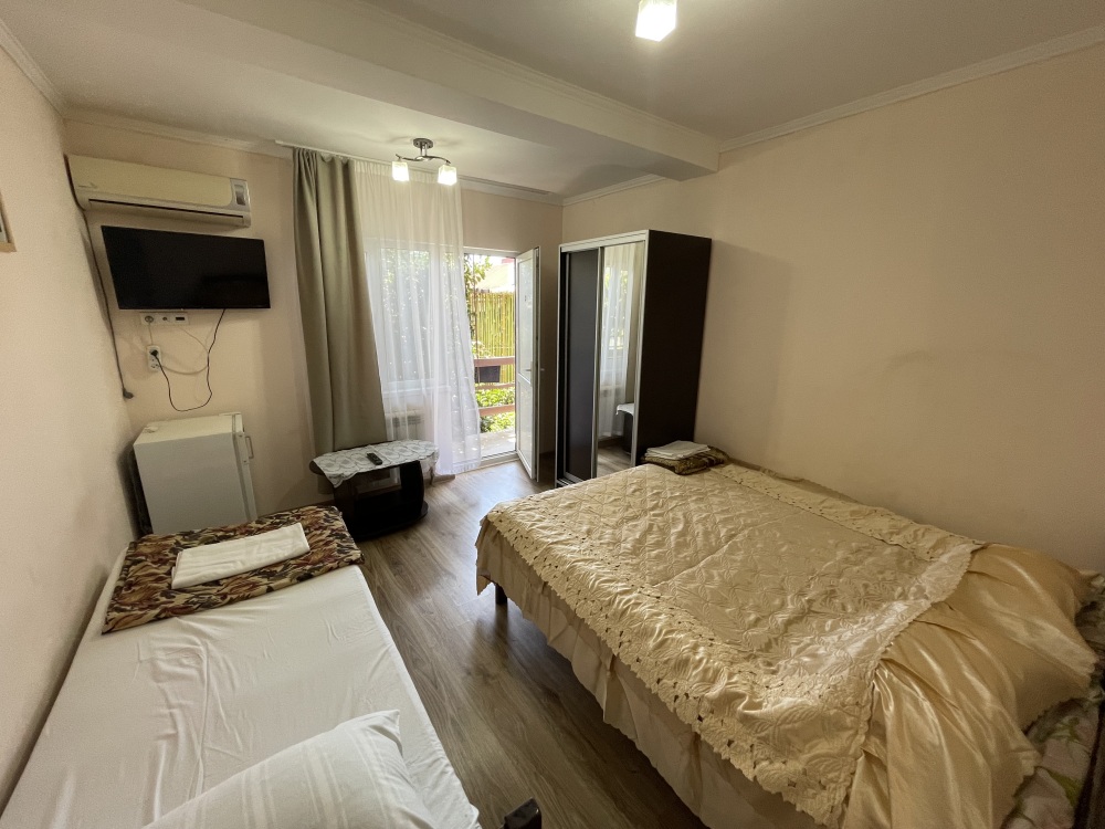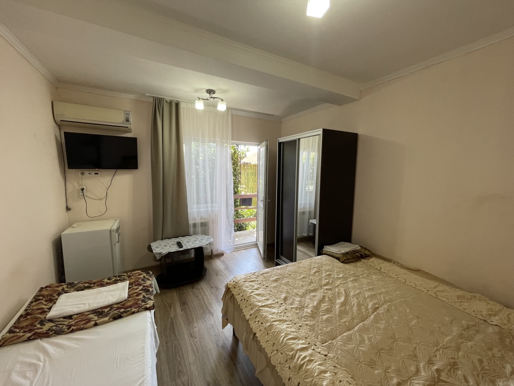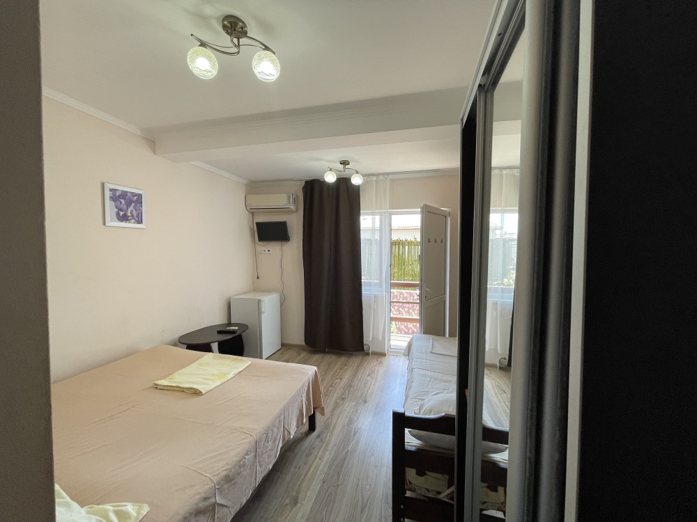 В гостевом доме Вам предложат остановиться в двухместных эконом комнатах (телевизор, кондиционер), стандартных номерах (телевизор, кондиционер, санузел, холодильник) на 2-3 гостя, а так же в номере с индивидуальной кухней.
