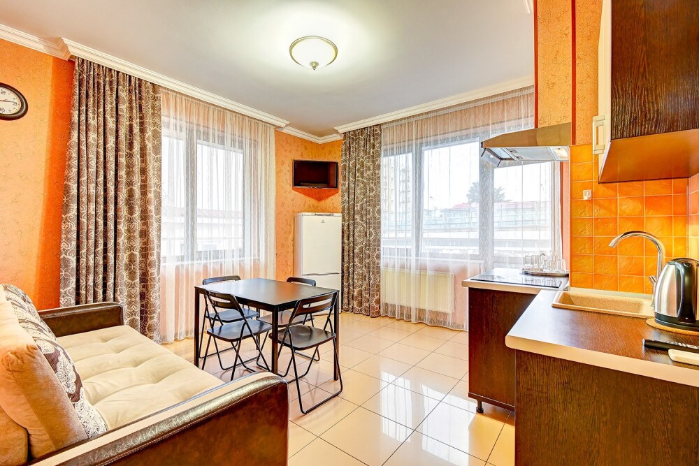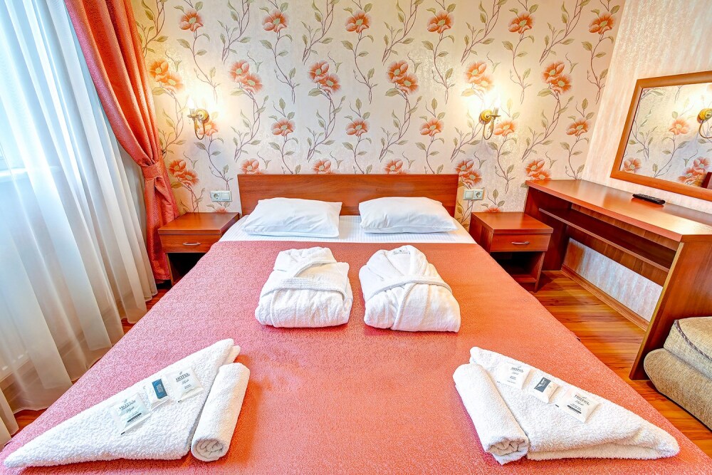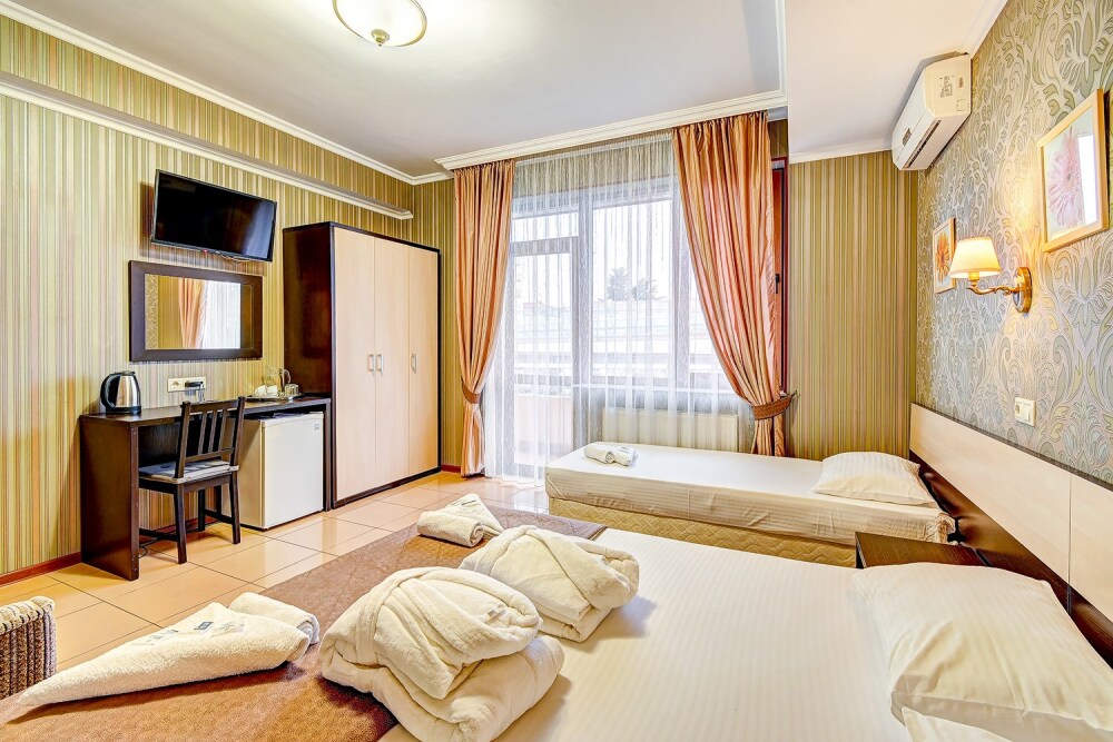 Удобное расположение отеля позволяет легко добраться за 30-40 минут как до центра г. Сочи , так и до Красной поляны – «Олимпийского городка 2014 года». В 300 м от отеля находится городской песчано-галечный пляж (бесплатный), где за дополнительную плату в пользование отдыхающих предоставляются зонтики, лежаки, теневые навесы и шезлонги, а также разнообразные водные аттракционы. В нескольких минутах ходьбы: торгово-развлекательные комплексы, центральный городской парк культуры и отдыха с многочисленными кафе и аттракционами, телеграф, главпочтамт, рынок «Апельсин», магазины. В десяти минутах езды находится курортный городок, аквариум, аквапарк.