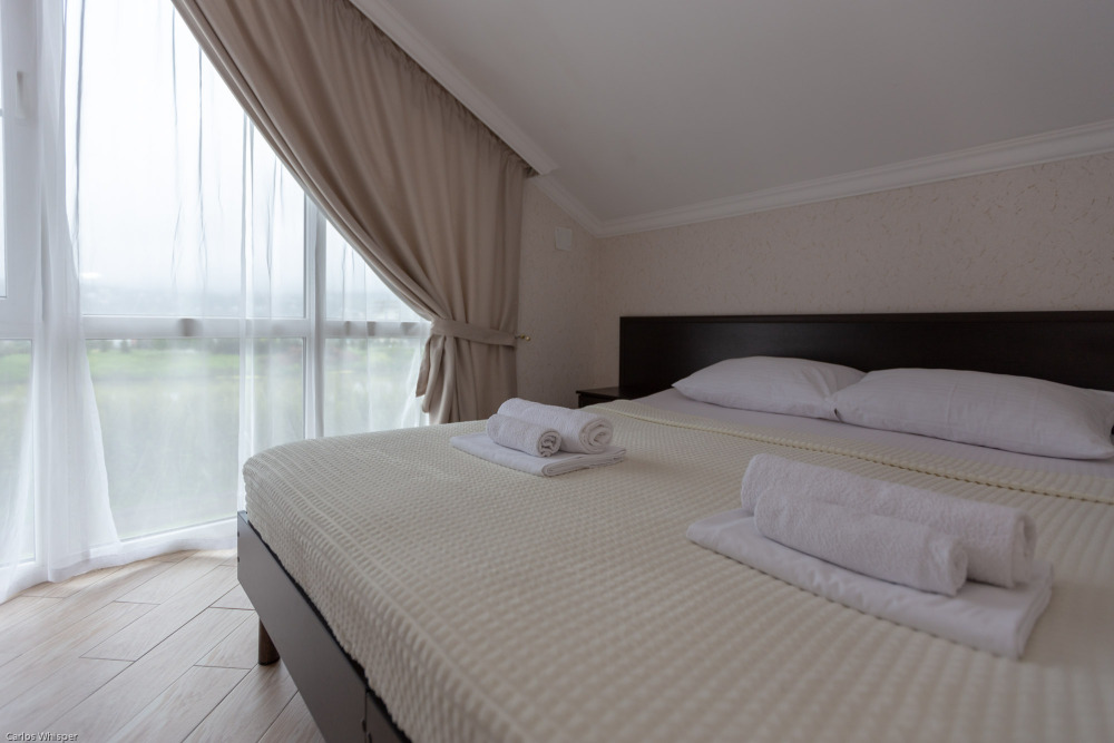 Номерной фонд представлен номерами «Стандарт» с удобствами, новой мебелью, хорошим ремонтом и современной бытовой техникой. Номера разной вместимости и идеально подходят для семейного отдыха.
