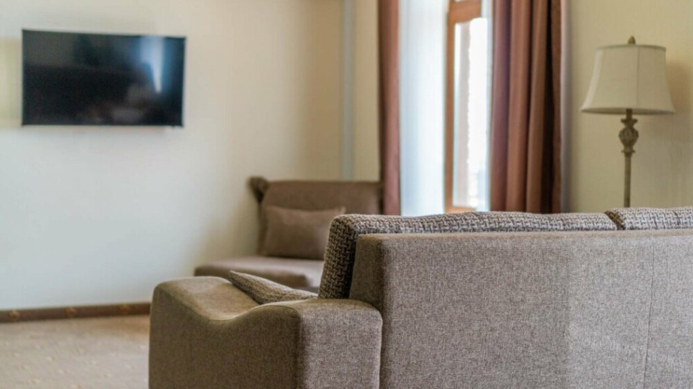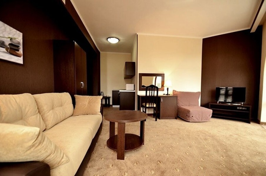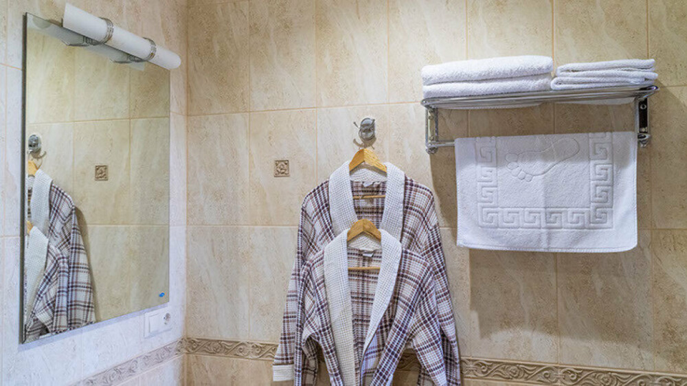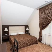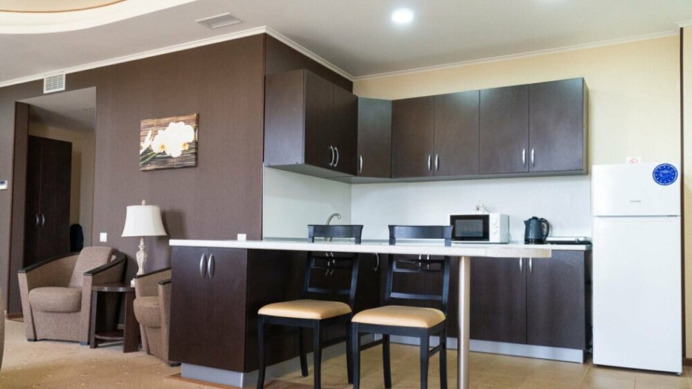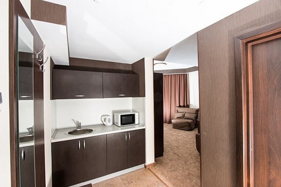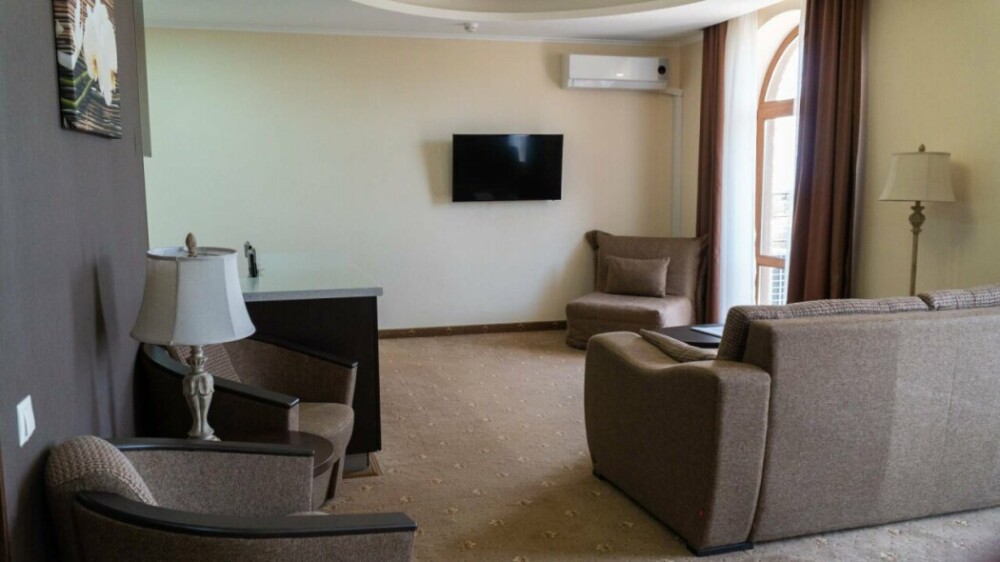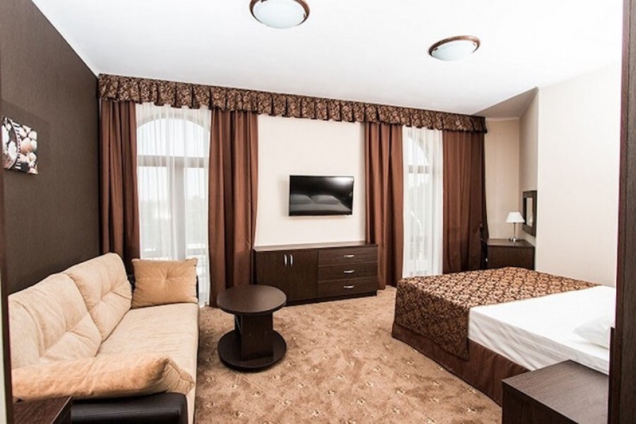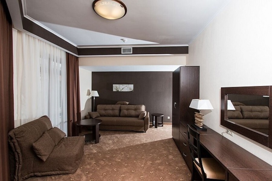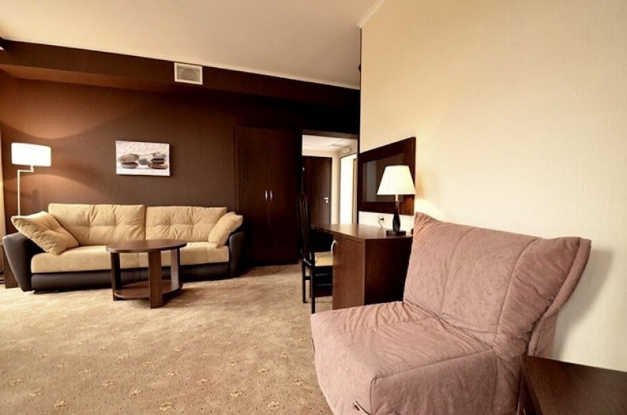 Это двухкомнатные номера различной площади и планировки с двумя раздельными комнатами и выходом на балкон. В каждой комнате отдельный ЖК ТВ. В каждой гостиной большой диван и кресло-кровать. В номере есть микроволновая печь, мини- холодильник, чайник и чайный набор. В спальне большая двуспальная кровать и комод с зеркалом. Также в номерах имеется 2 отдельных балкона, в каждой комнате отдельный ЖК ТВ.