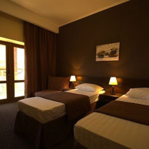 В номере двуспальная кровать, либо 2 односпальные кровати, 2 прикроватные тумбы, ЖК ТВ., письменный/туалетный стол с зеркалом и тумбой под холодильник, мини-холодильник, небольшой прикроватный столик, шкаф для одежды, багажная тумба, прихожая с зеркалом. В санузле имеется душ.