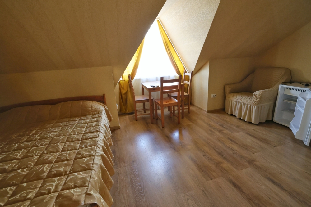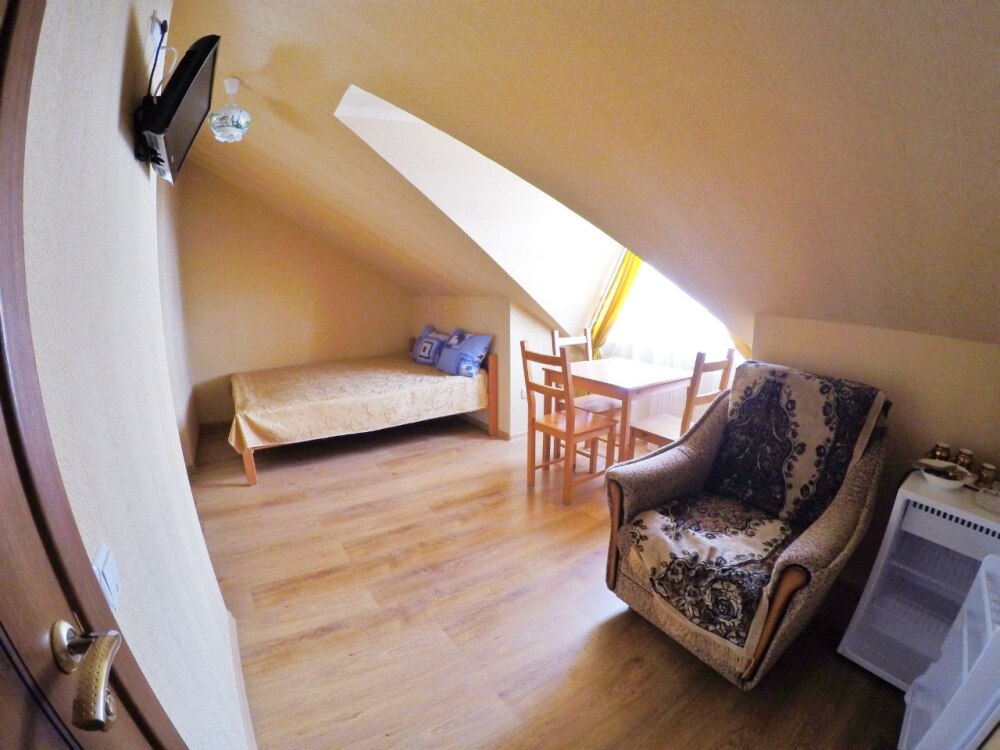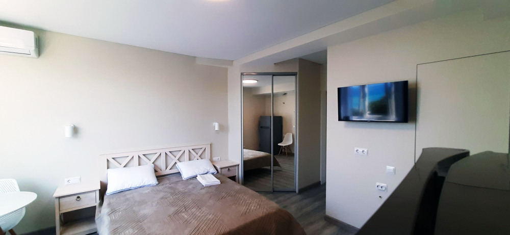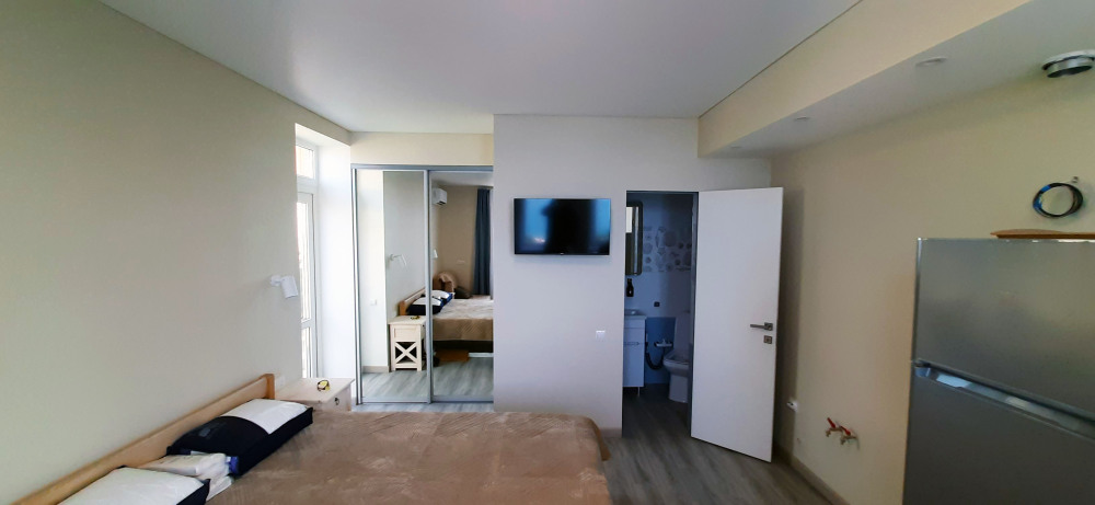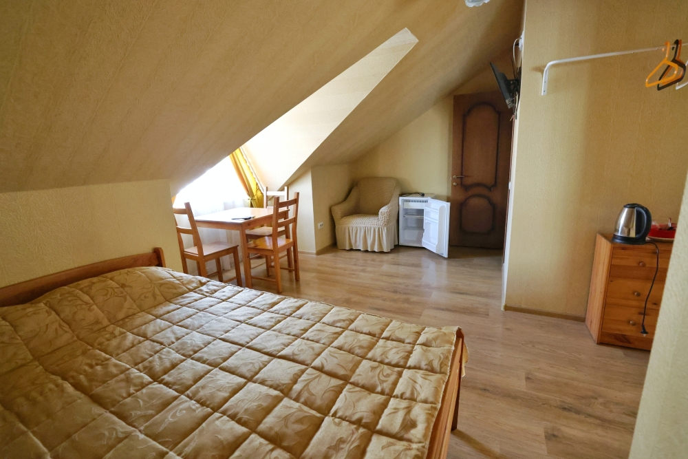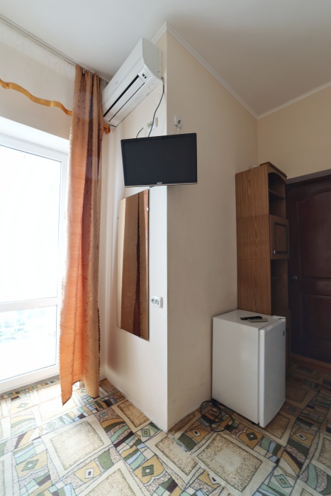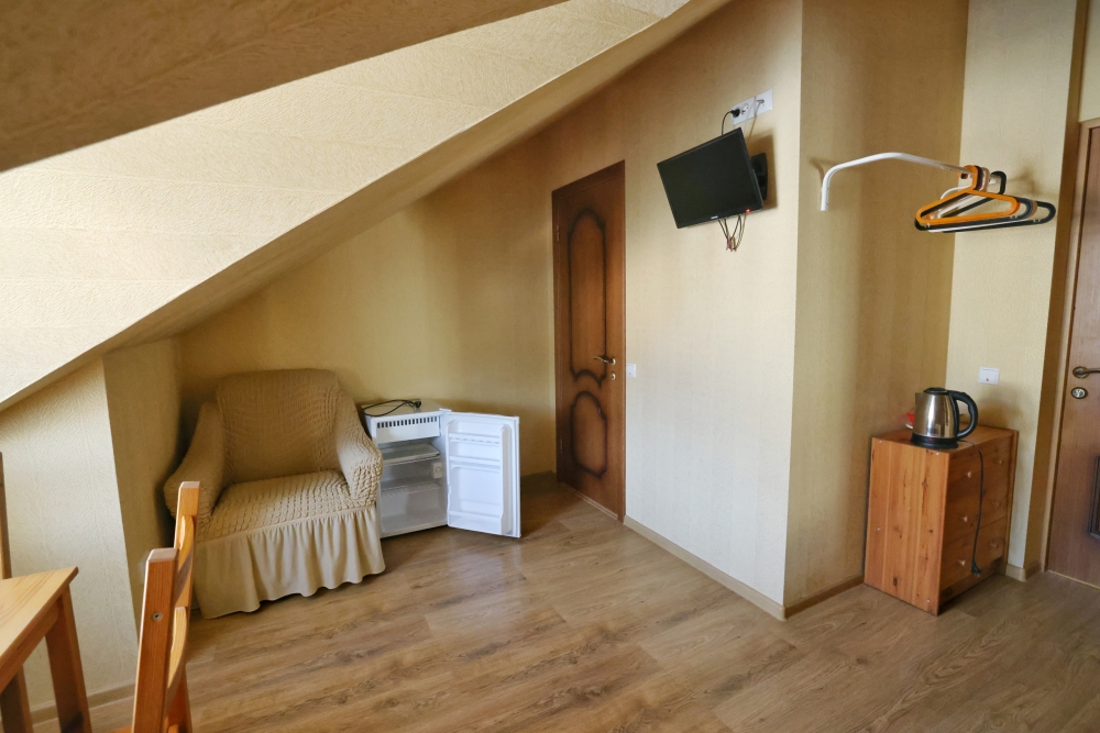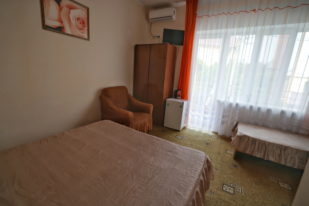 В номере бесплатный Wi-Fi, санузел с душевой кабиной, горячая вода и свежие полотенца. Двуспальная кровать 160 на 200, односпальная кровать 70 на 200 и раскладное кресло. Телевизор для развлечений, мощный кондиционер для идеального микроклимата и холодильник для прохладительных напитков и фруктов. Электрический чайник для утреннего кофе и всё то, что создает ощущение домашнего уюта.