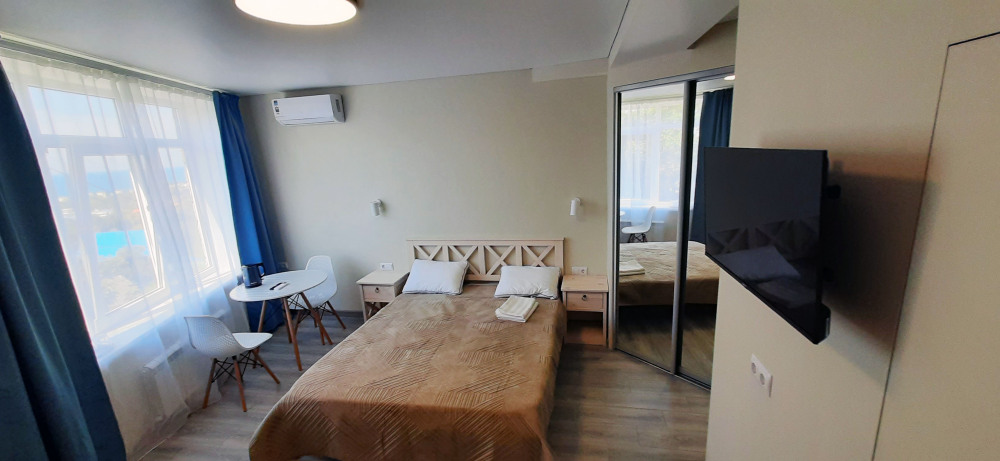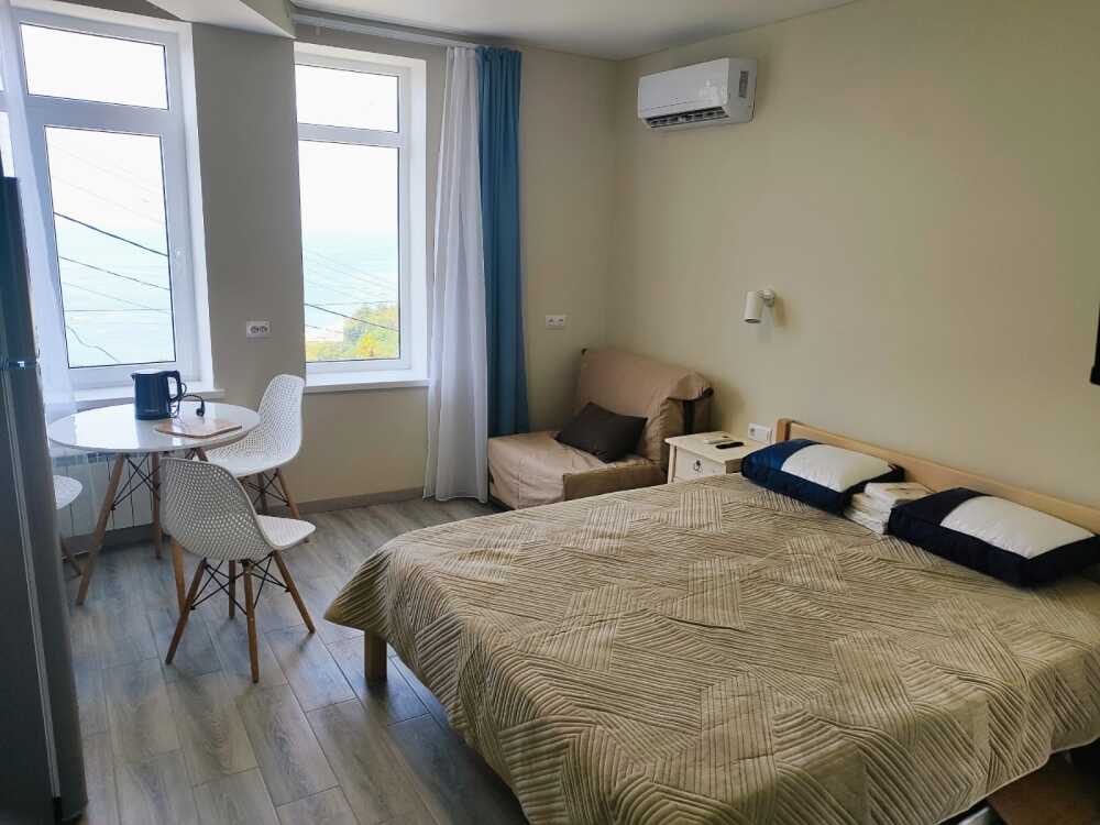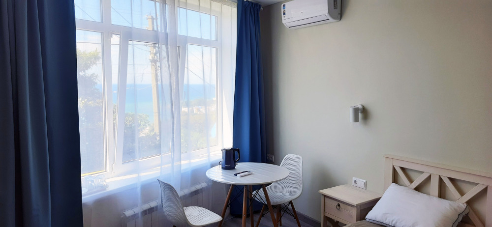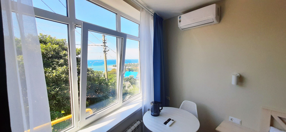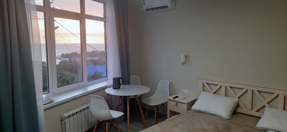 Ваш номер с персональной панорамой: Каждый номер — это собственная смотровая площадка. Вы будете просыпаться и засыпать под шум прибоя, наблюдая, как солнце окрашивает море в вечерние краски. Из номера вас ждёт выход на просторный панорамный балкон, где можно наслаждаться вечерним закатом и звездным небом. Уютный общий балкон на два соседних номера — идеально для семей или компаний друзей. Летом ясная погода дарит завораживающие закаты почти каждый день. А для полного единения с природой выходите на общую просторную веранду с бассейном, который уже с июня прогревается до комфортных +25°C.