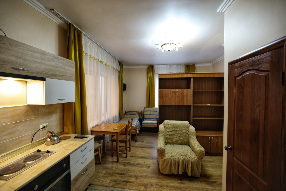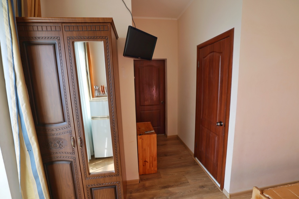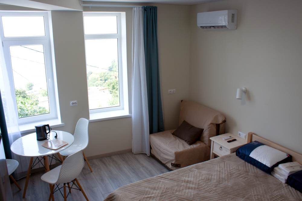 Комфорт в деталях: В каждом номере бесплатный Wi-Fi, собственный санузел с душевой кабиной, круглосуточно горячая вода и свежие полотенца. Современный телевизор для развлечений, мощный кондиционер для идеального микроклимата и холодильник для прохладительных напитков и фруктов. Электрический чайник для утреннего кофе и всё то, что создает ощущение домашнего уюта.