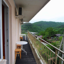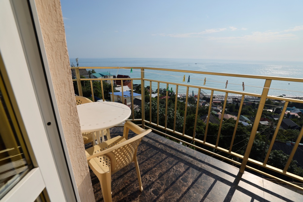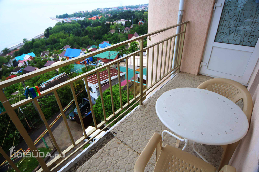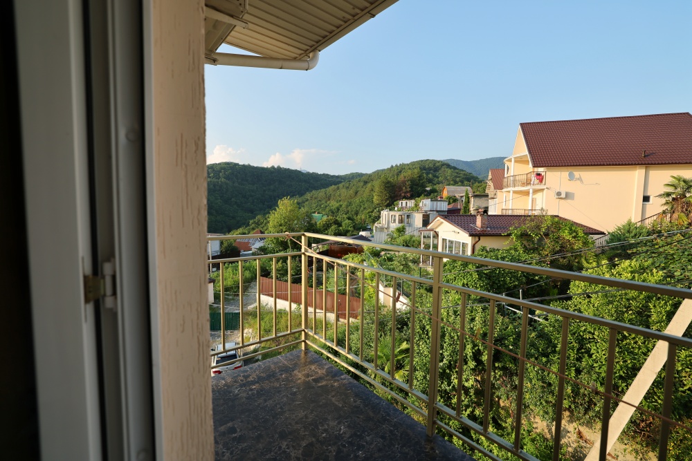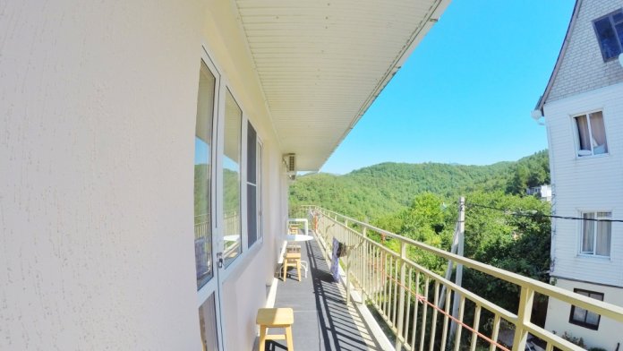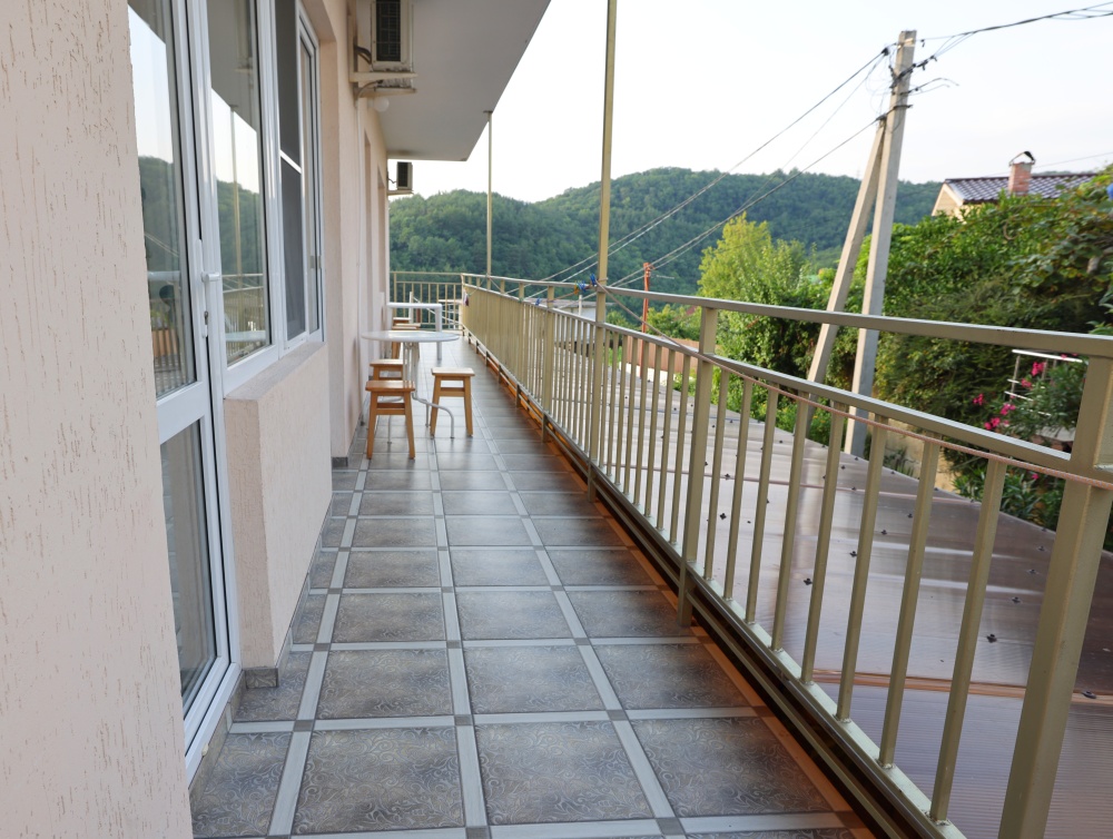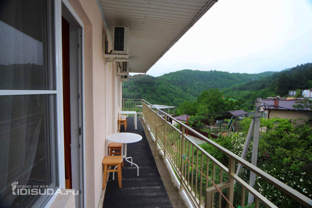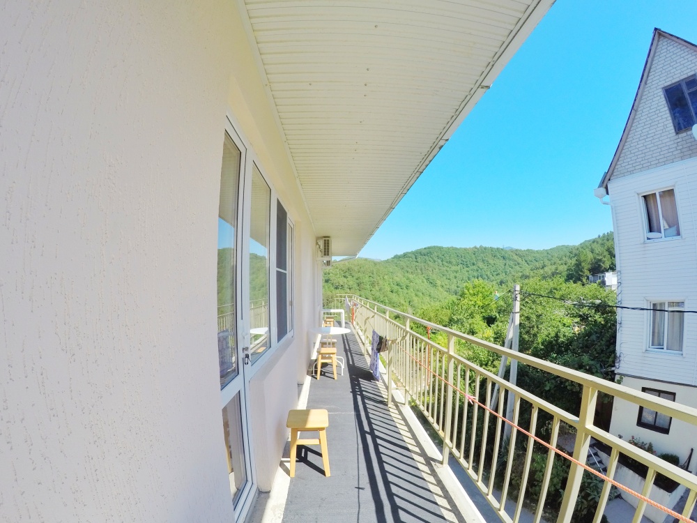 Из номера выход на общий панорамный балкон, где можно наслаждаться видом кавказских гор или провести романтический вечер под звёздами. Ваш балкон выделен пространством общего коридора. Выходите на общую веранду с бассейном, который уже с июня прогревается до комфортных +25°C.
