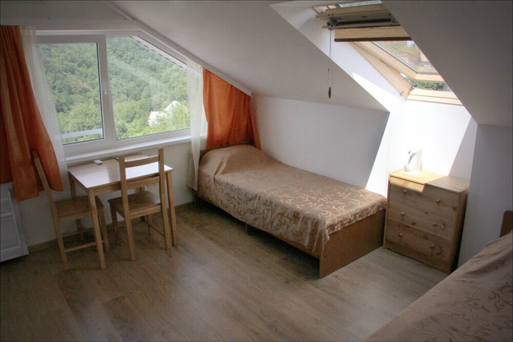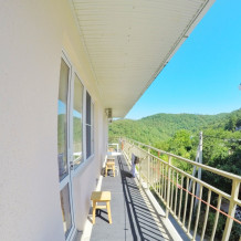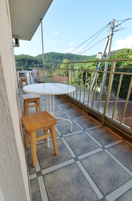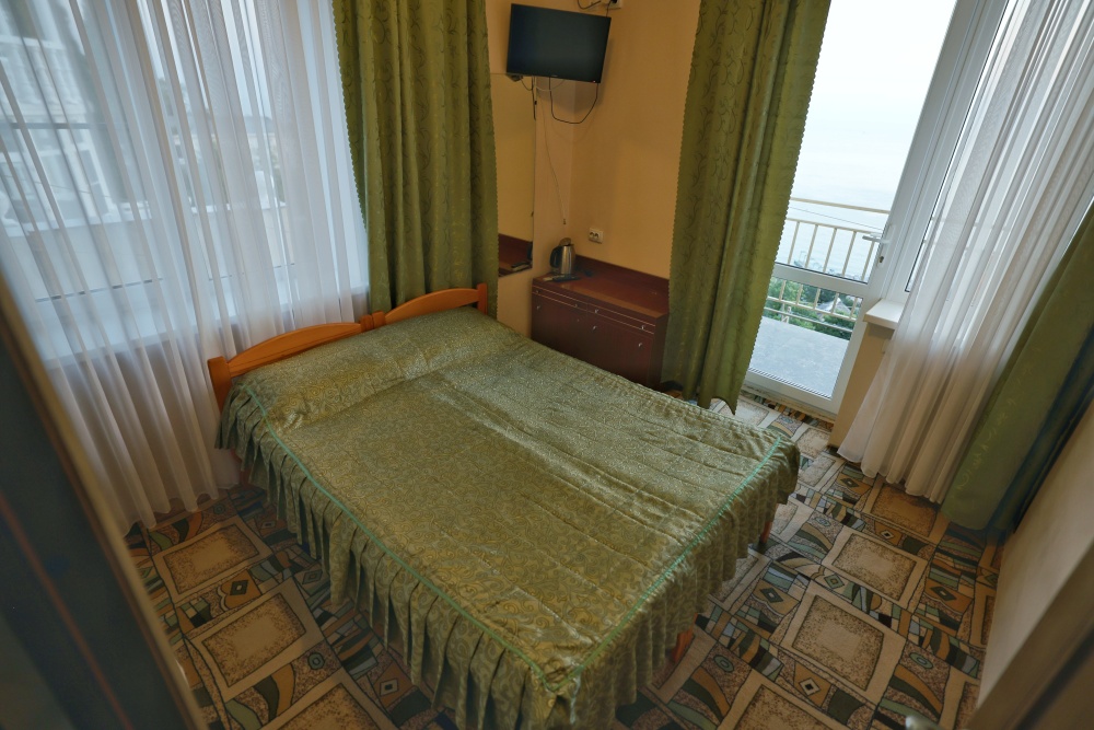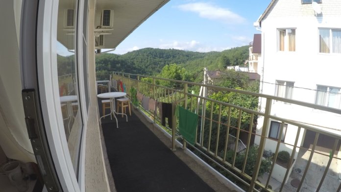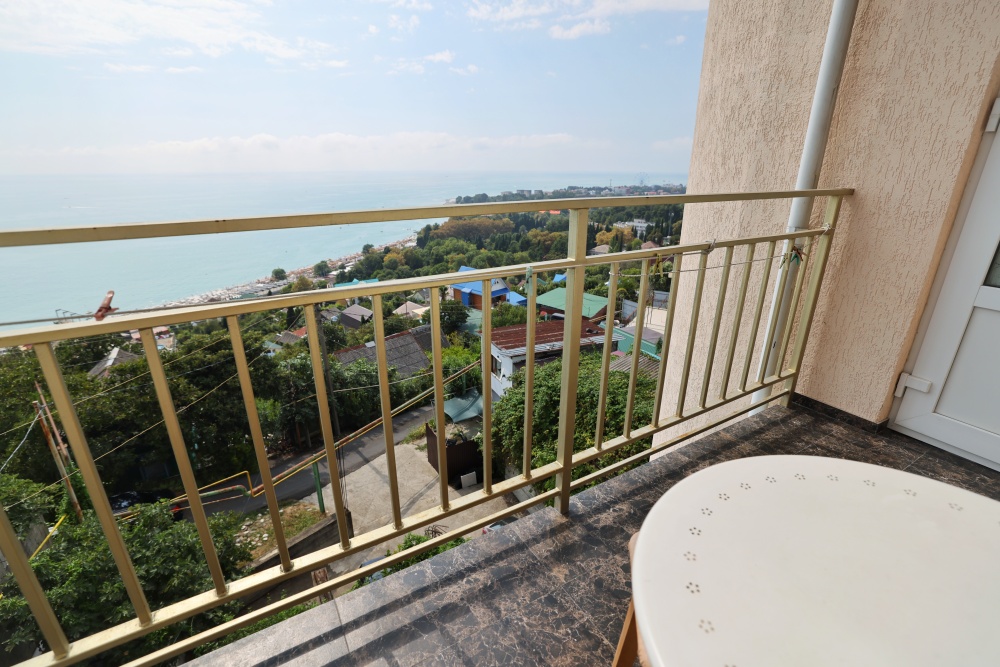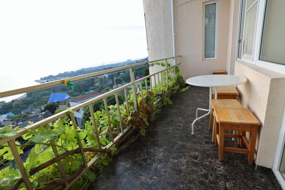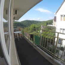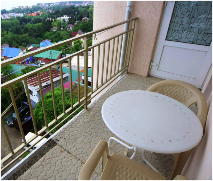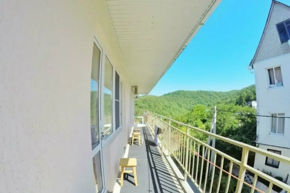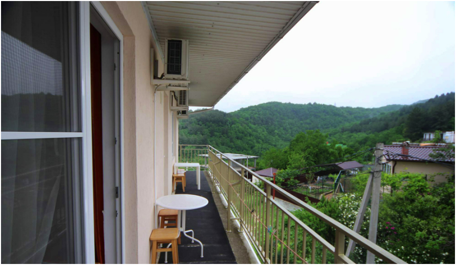 Из номера выход на общий панорамный балкон, где можно наслаждаться видом кавказских гор или провести романтический вечер под звёздами. Ваш балкон выделен пространством общего коридора. Выходите на общую веранду с бассейном, который уже с июня прогревается до комфортных +25°C.