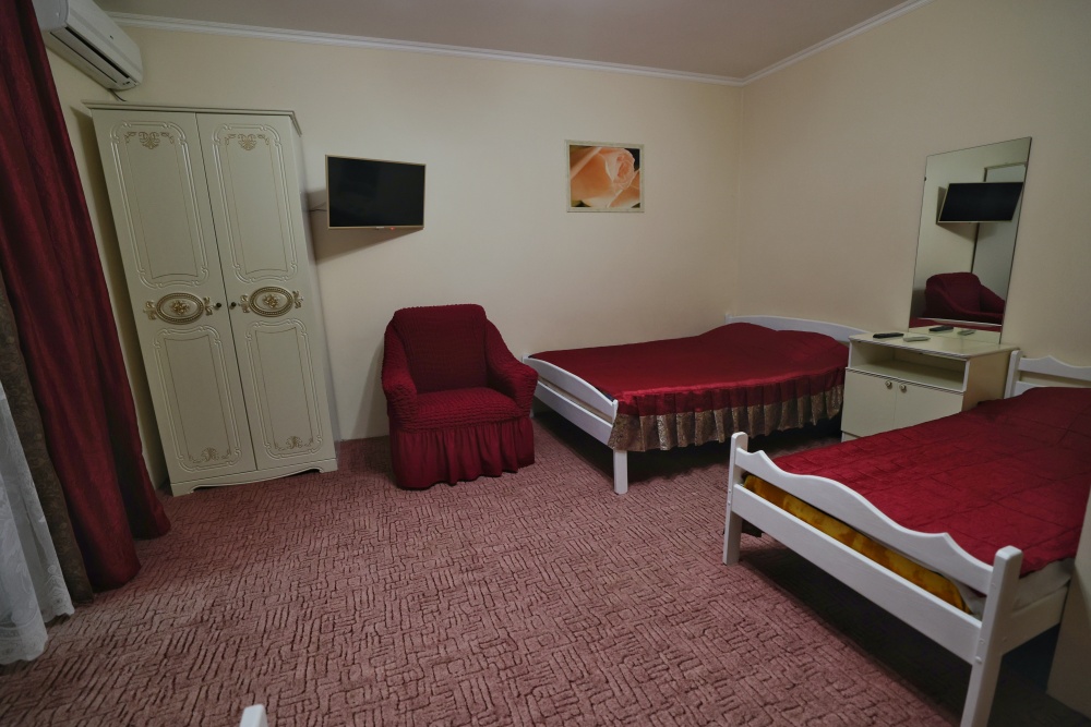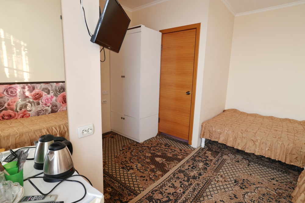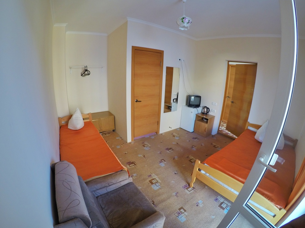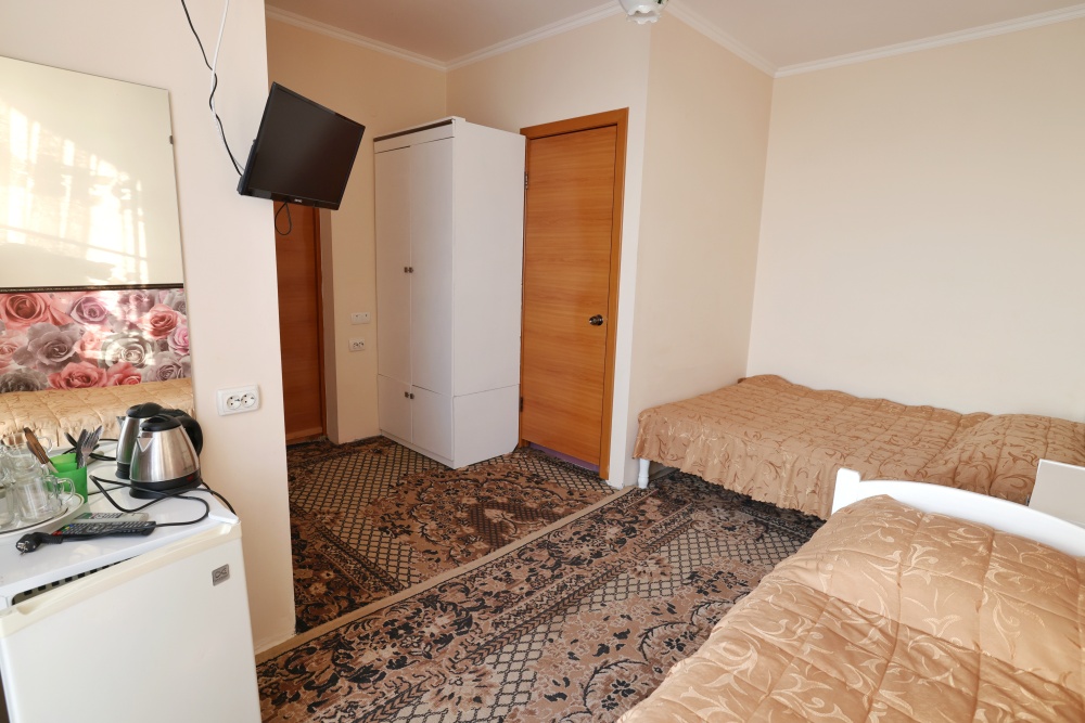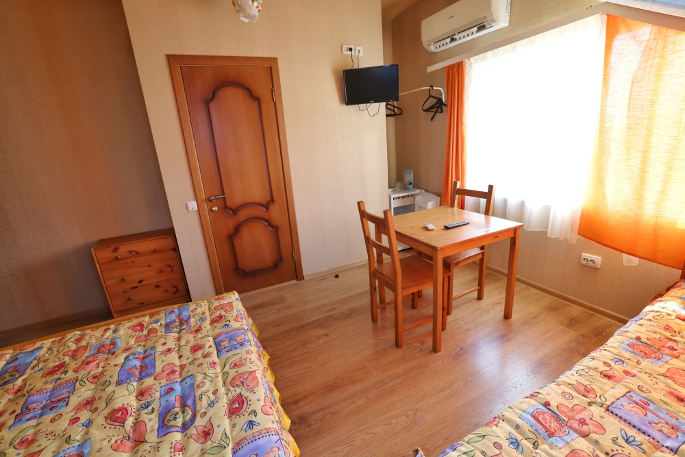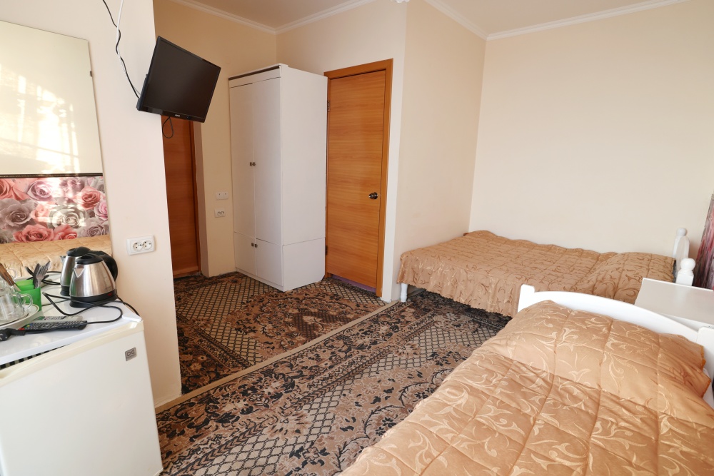 В каждом номере бесплатный Wi-Fi, две односпальные кровати, тумбочка, санузел с душевой кабиной, горячая вода и свежие полотенца. Телевизор для развлечений, мощный кондиционер для идеального микроклимата и холодильник для прохладительных напитков и фруктов. Электрический чайник и всё то, что создает ощущение домашнего уюта.