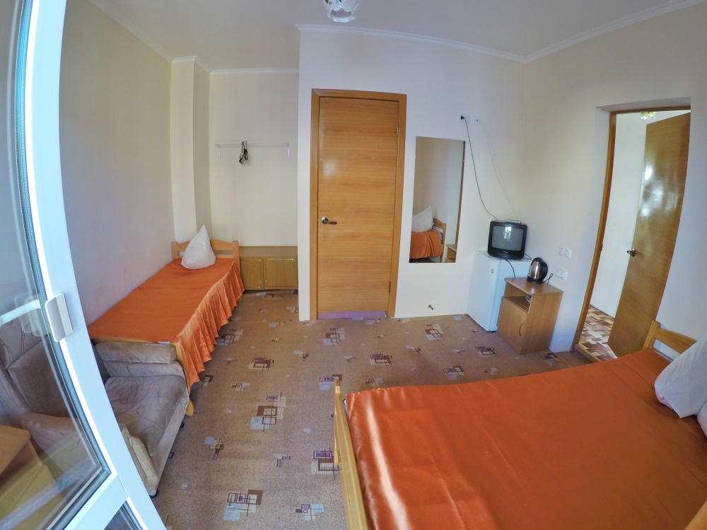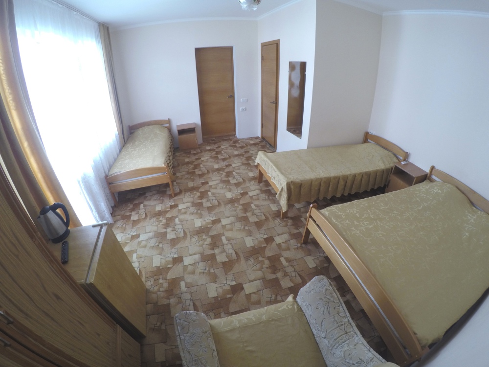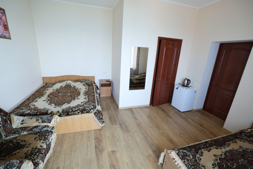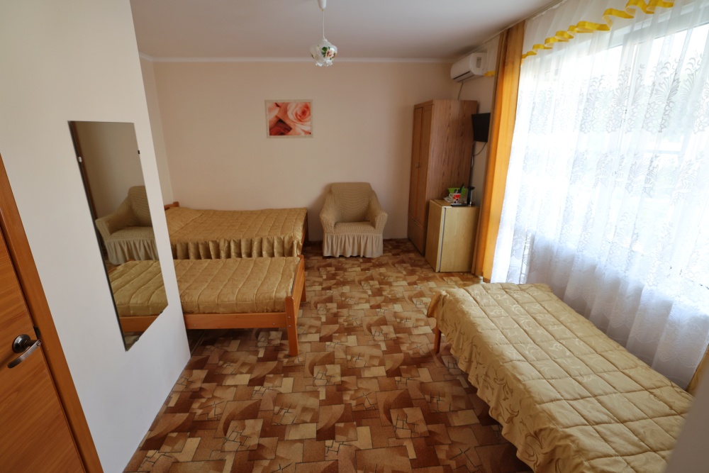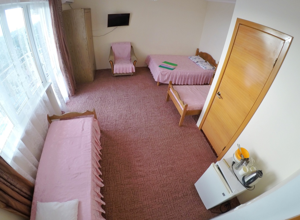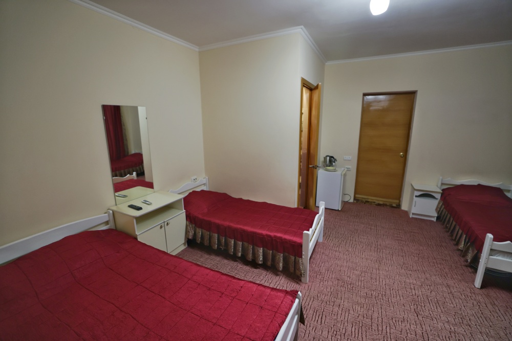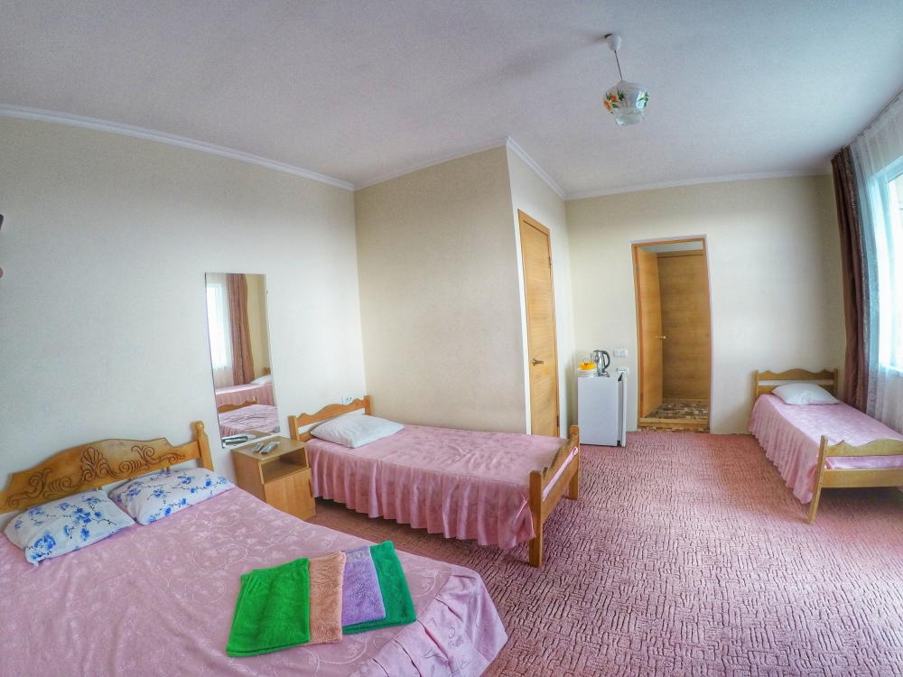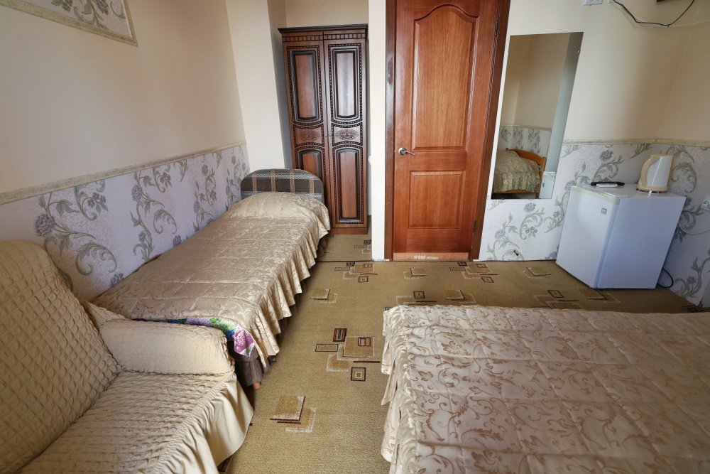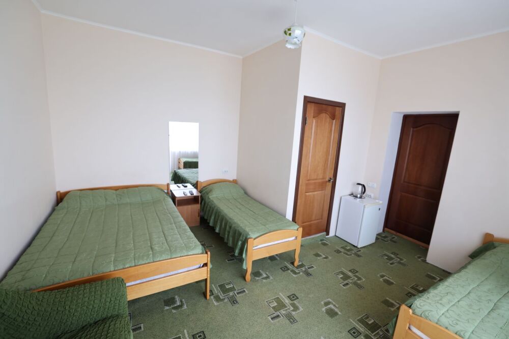 В номере бесплатный Wi-Fi, санузел с душевой кабиной, горячая вода и свежие полотенца. Двуспальная кровать 140 на 200, 2 односпальные кровати 80 на 200 и раскладное кресло. Телевизор, мощный кондиционер и холодильник для прохладительных напитков. Электрический чайник и всё то, что создает ощущение домашнего уюта.