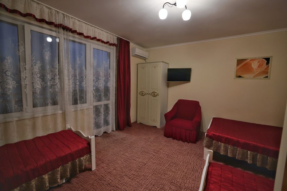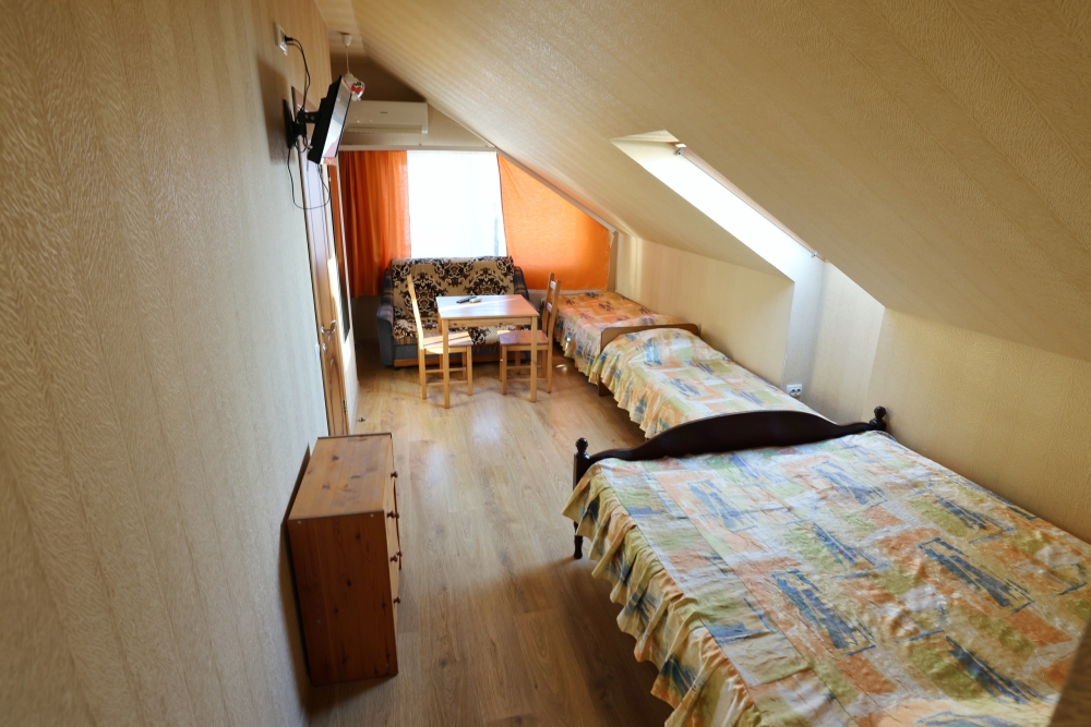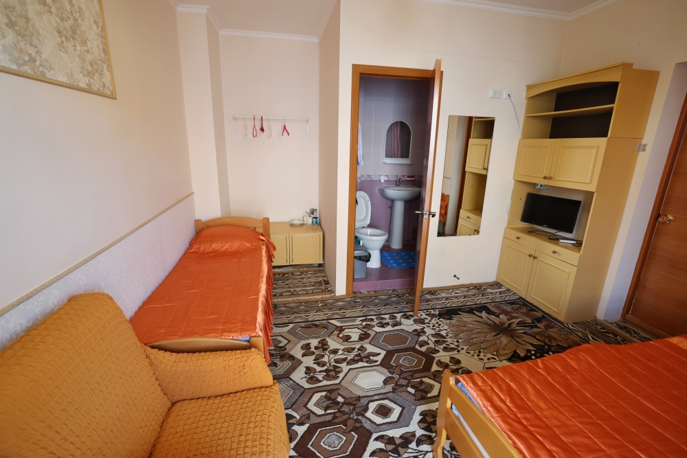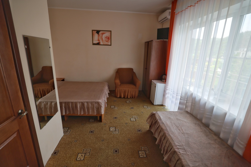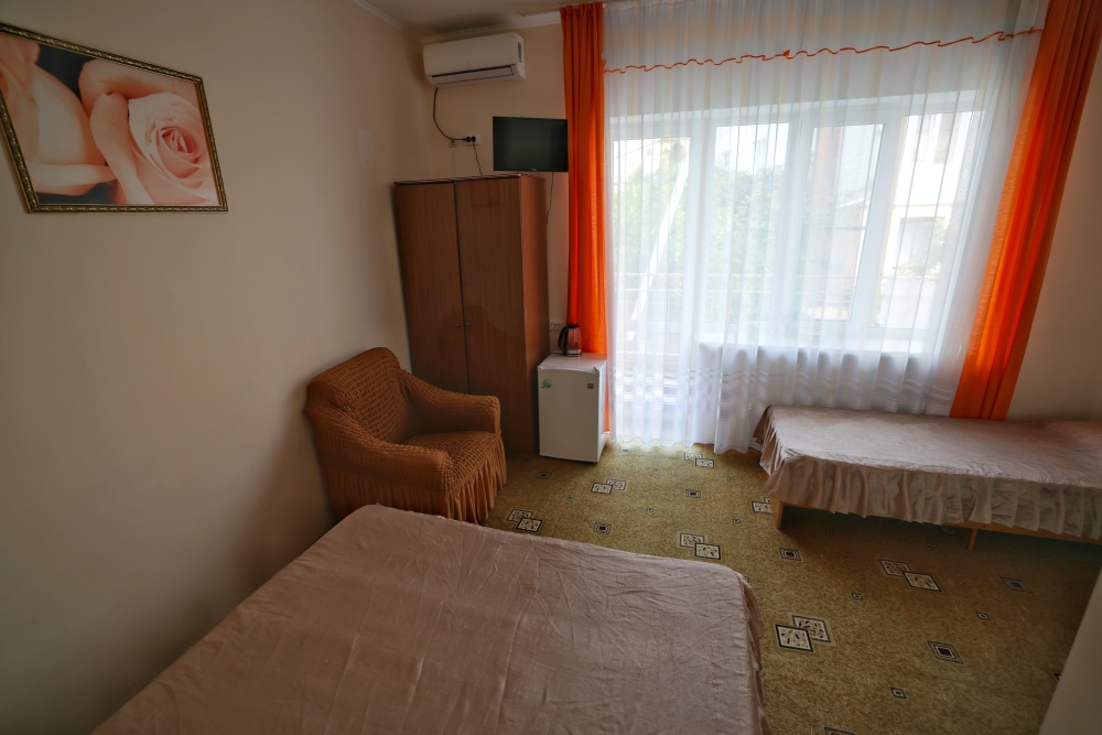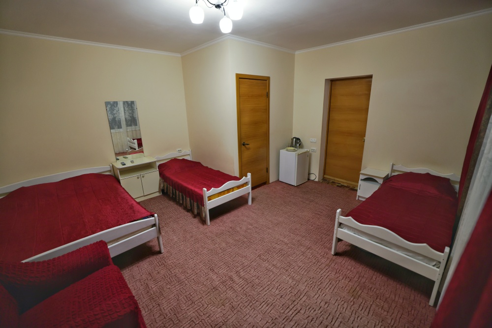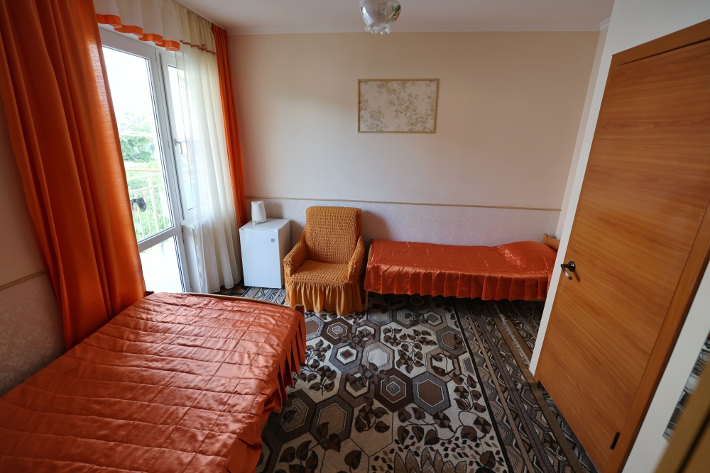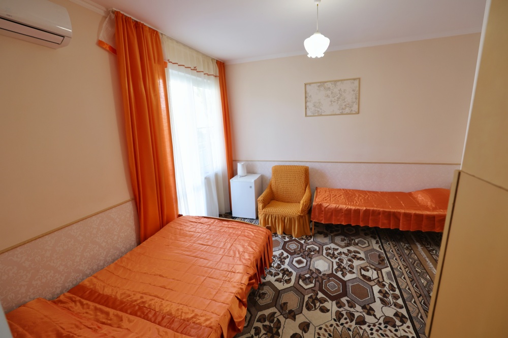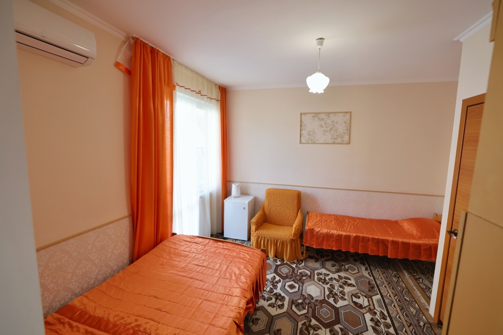 В номере бесплатный Wi-Fi, санузел с душевой кабиной, горячая вода и свежие полотенца. Двуспальная кровать 140 на 200, 2 односпальные кровати 80 на 200 и раскладное кресло. Телевизор, мощный кондиционер и холодильник для прохладительных напитков. Электрический чайник и всё то, что создает ощущение домашнего уюта.