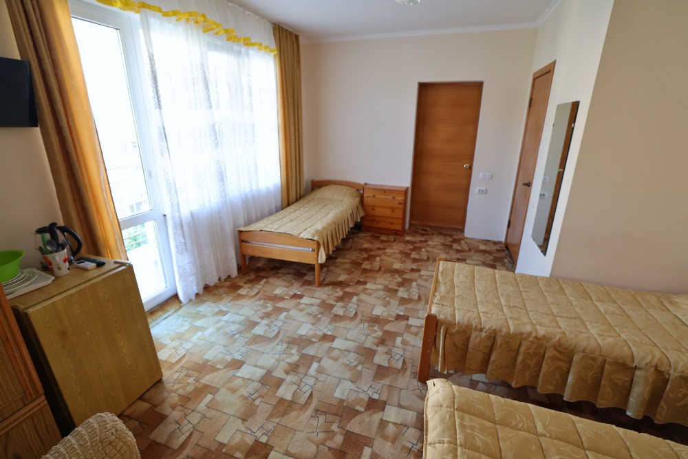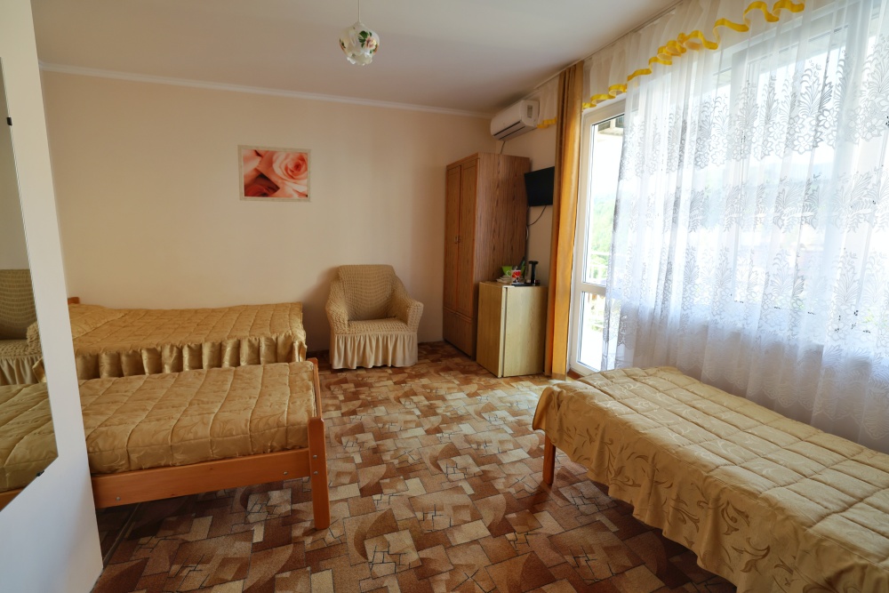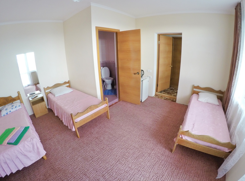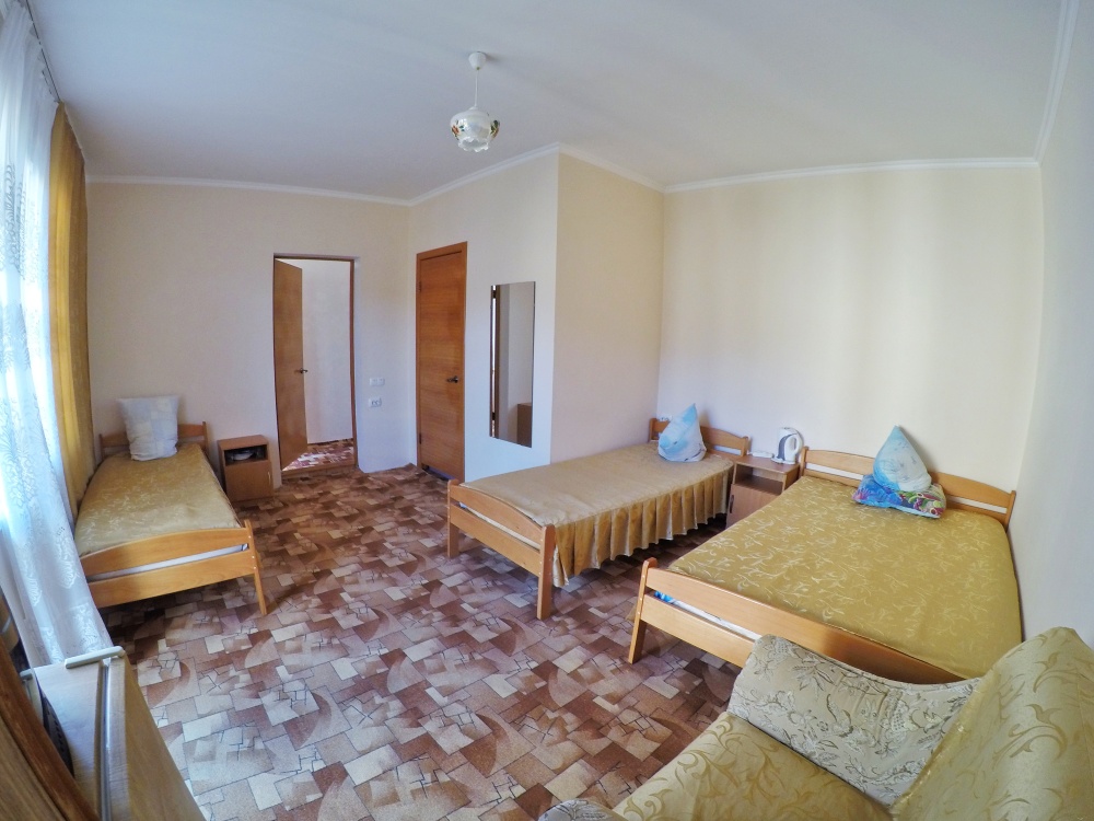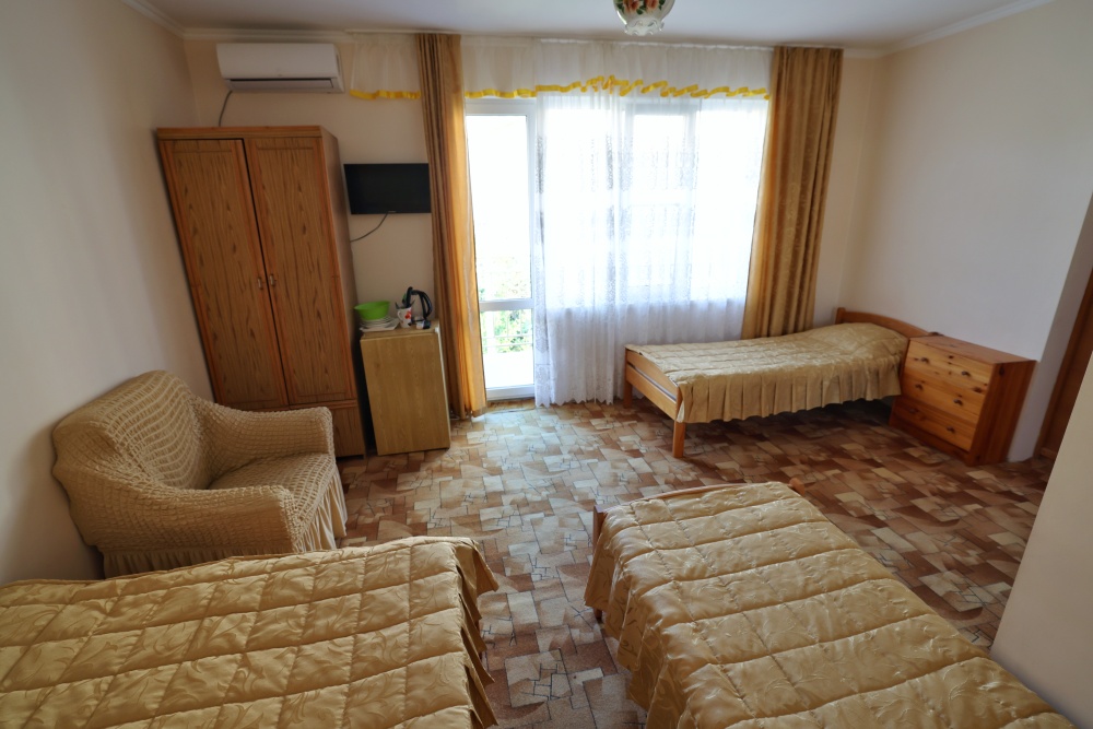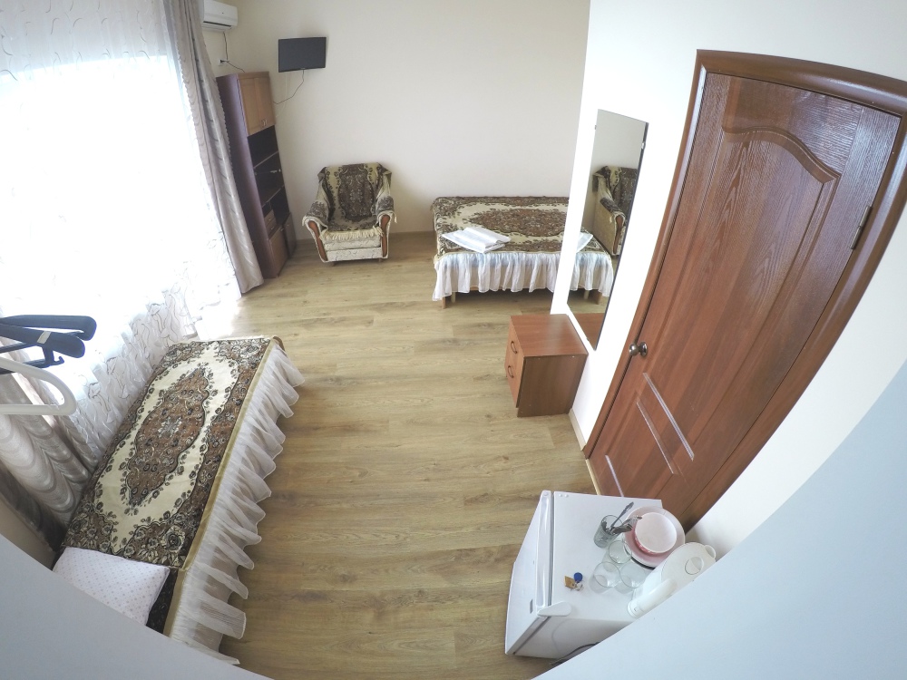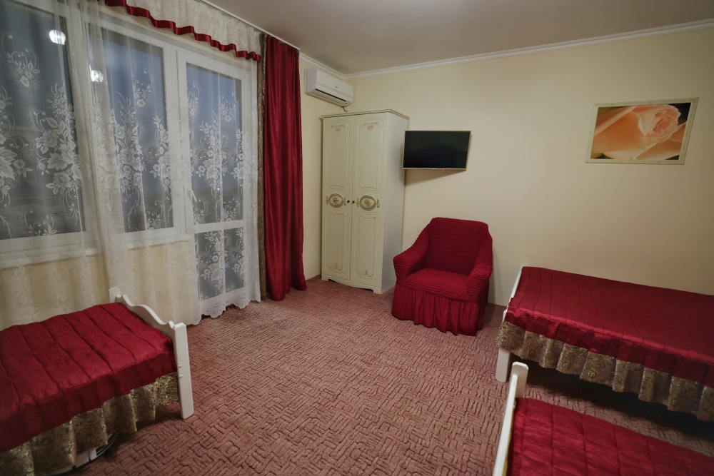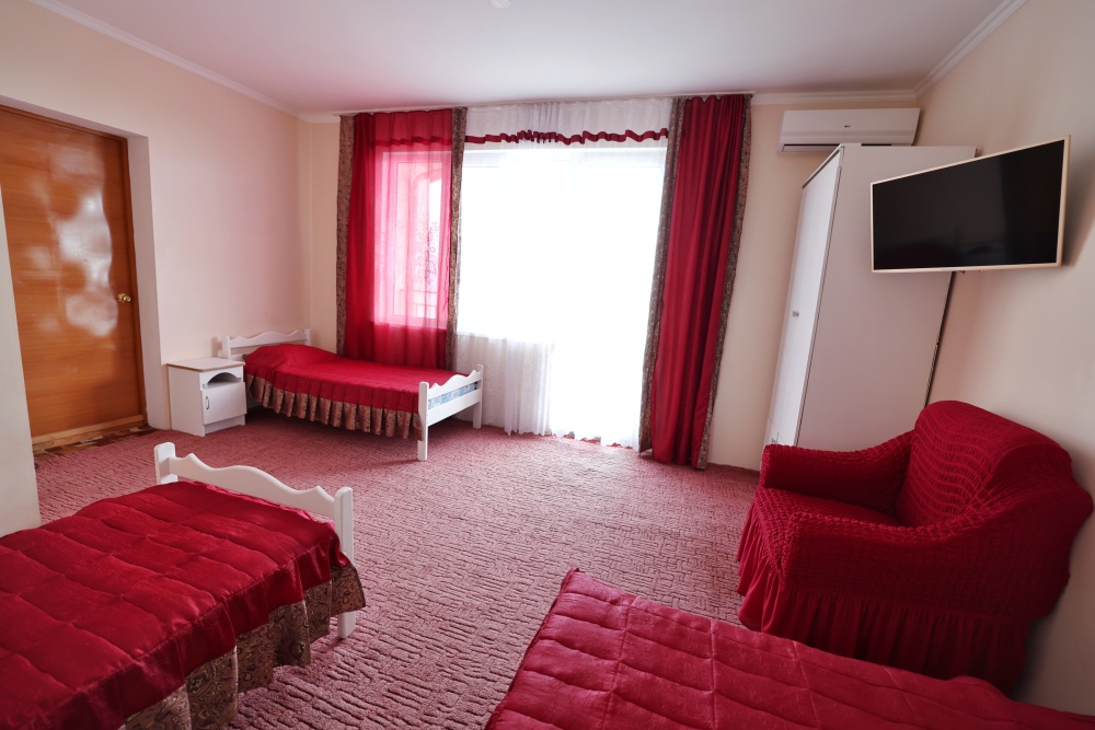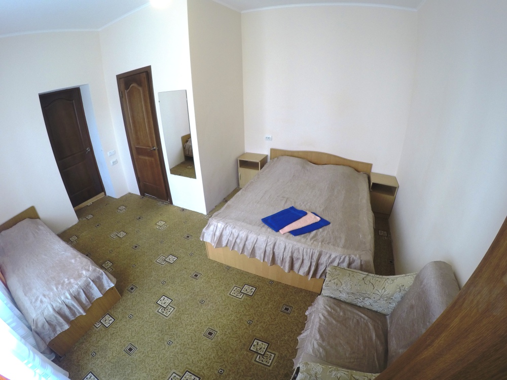 В номере бесплатный Wi-Fi, санузел с душевой кабиной, горячая вода и свежие полотенца. Двуспальная кровать 140 на 200, 2 односпальные кровати 80 на 200 и раскладное кресло. Телевизор, мощный кондиционер и холодильник для прохладительных напитков. Электрический чайник и всё то, что создает ощущение домашнего уюта.