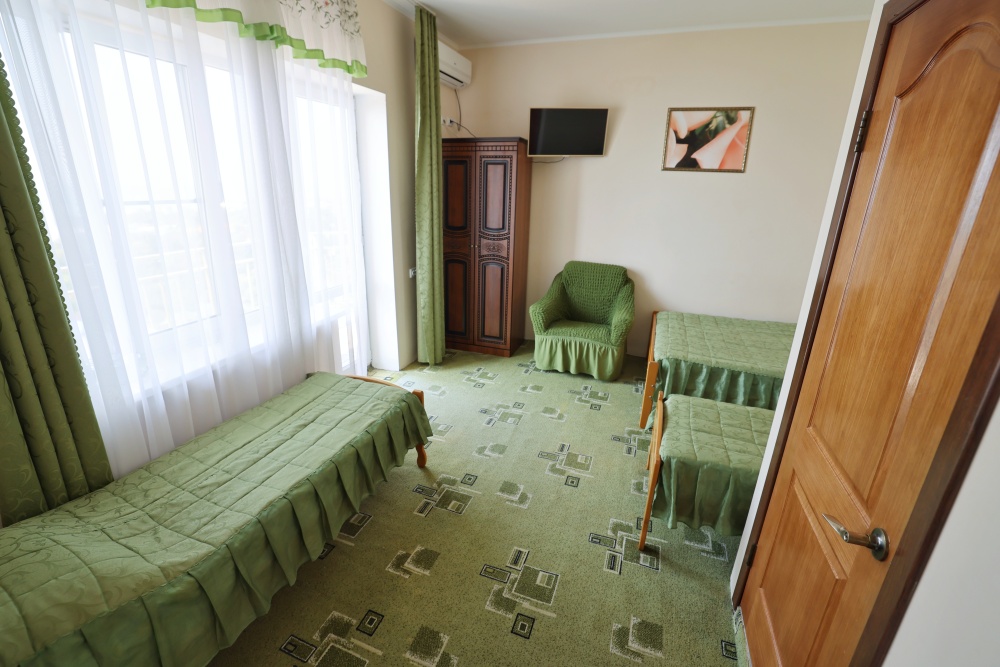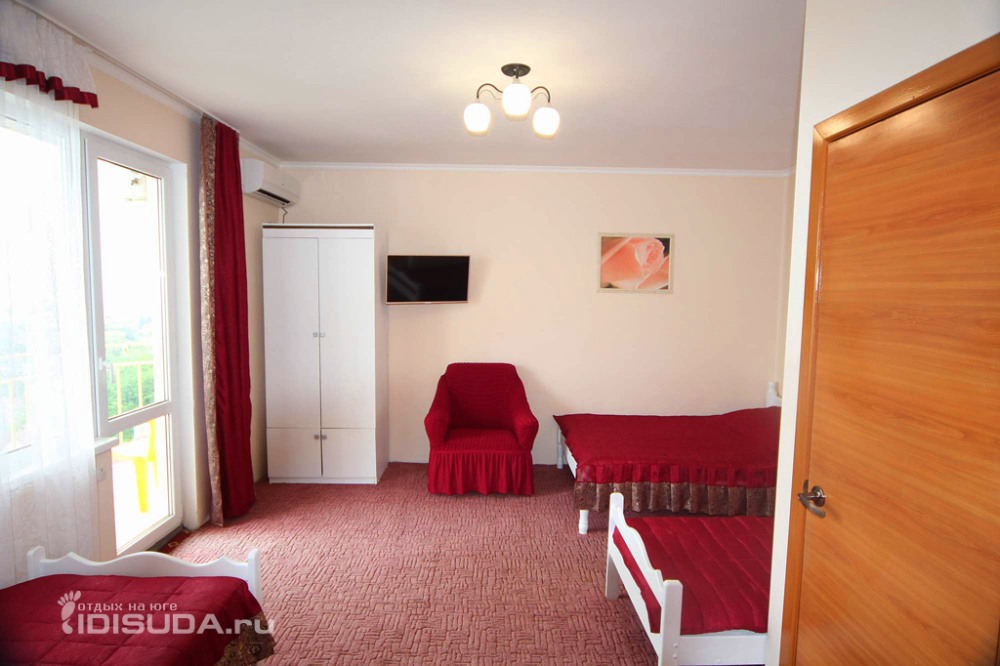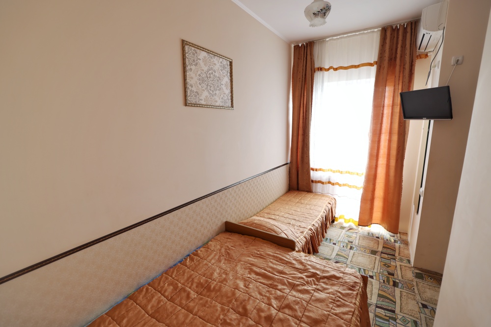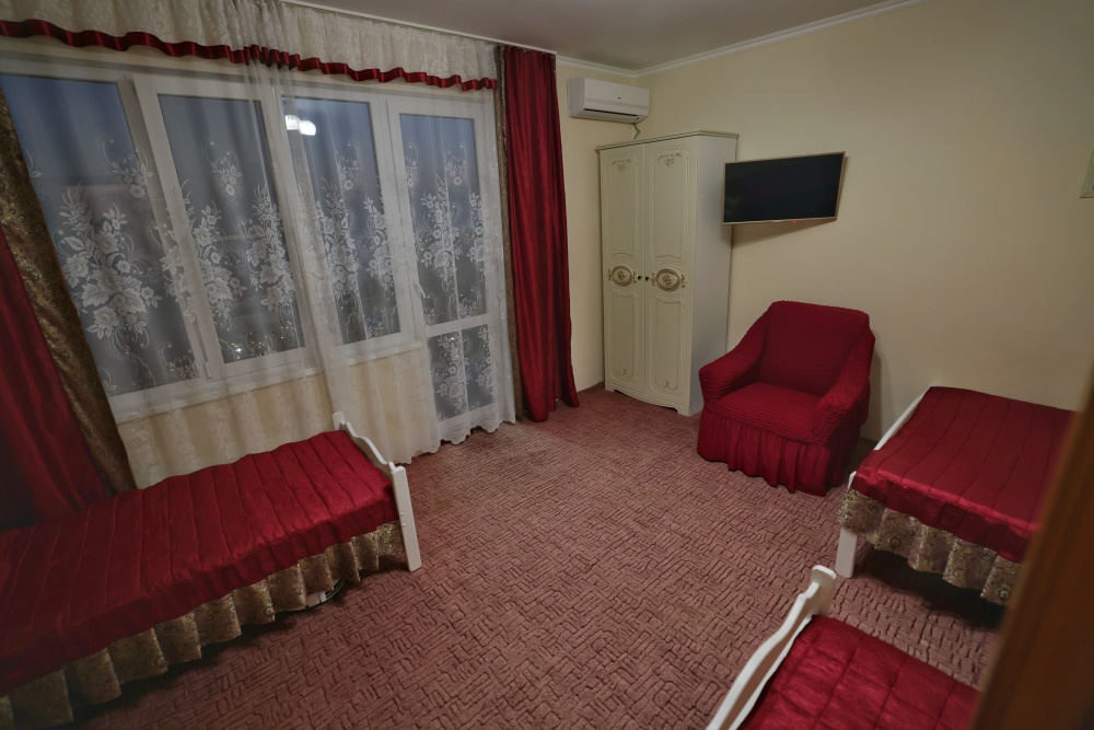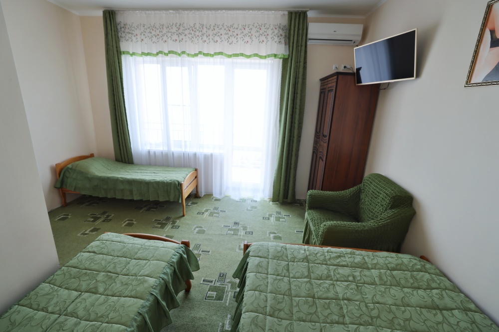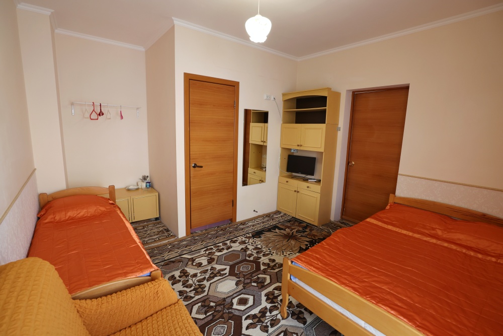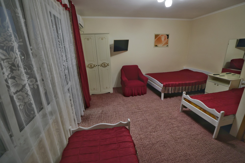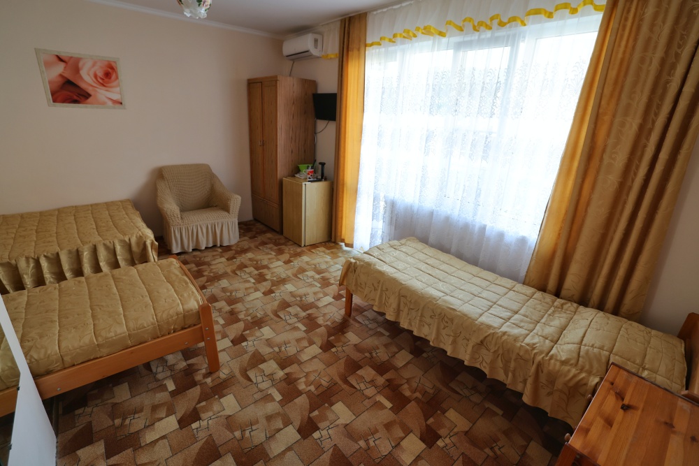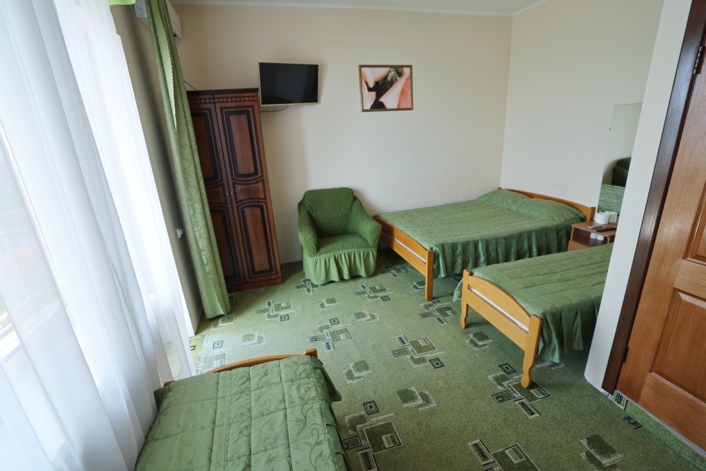 В номере бесплатный Wi-Fi, санузел с душевой кабиной, горячая вода и свежие полотенца. Двуспальная кровать 140 на 200, 2 односпальные кровати 80 на 200 и раскладное кресло. Телевизор, мощный кондиционер и холодильник для прохладительных напитков. Электрический чайник и всё то, что создает ощущение домашнего уюта.