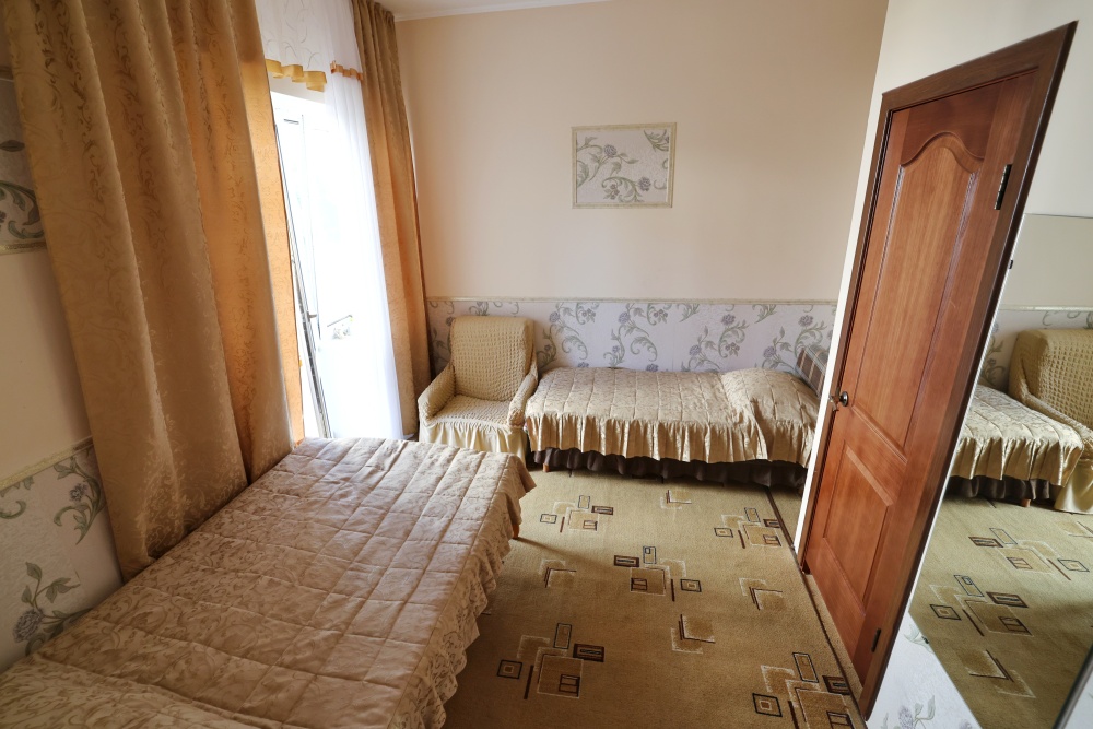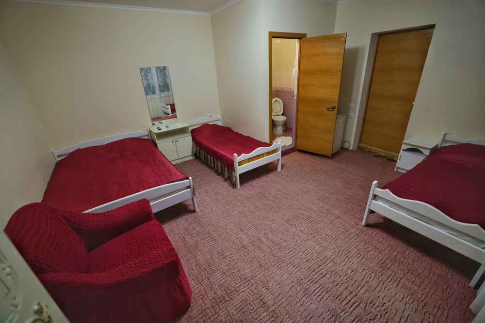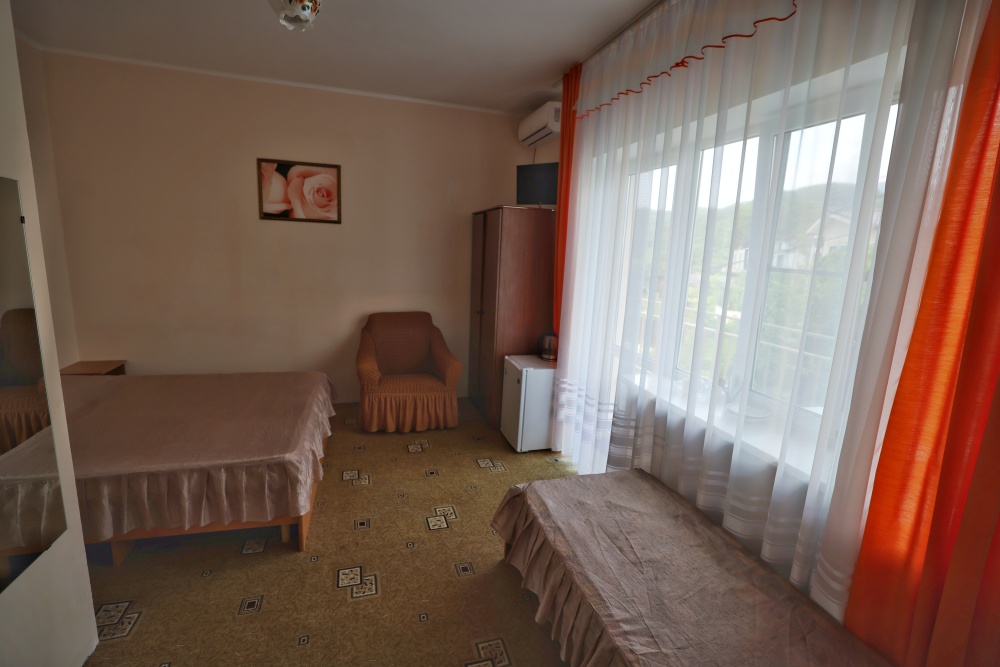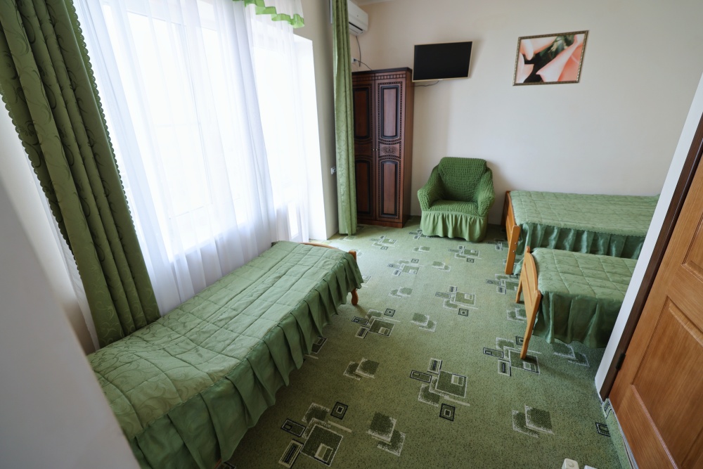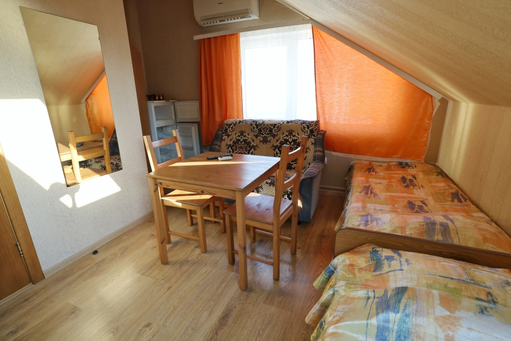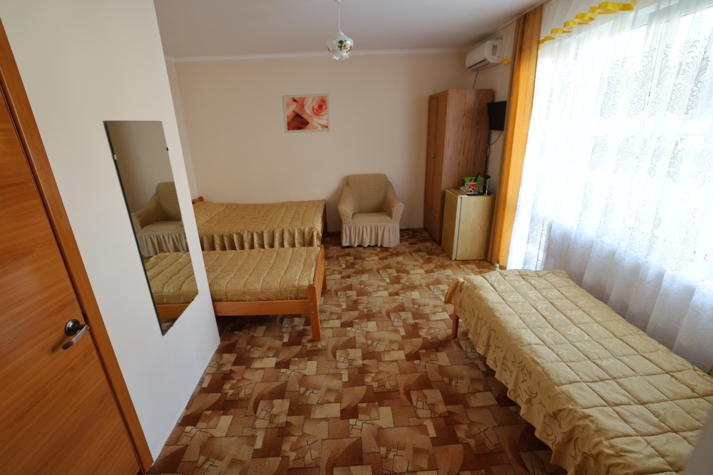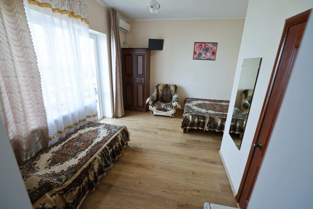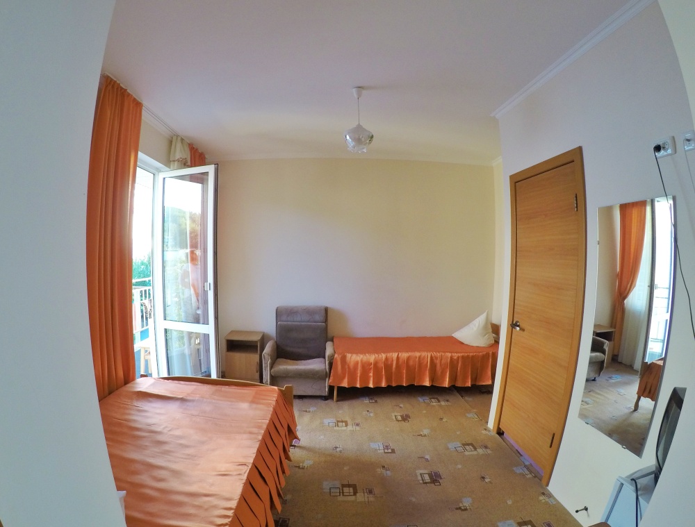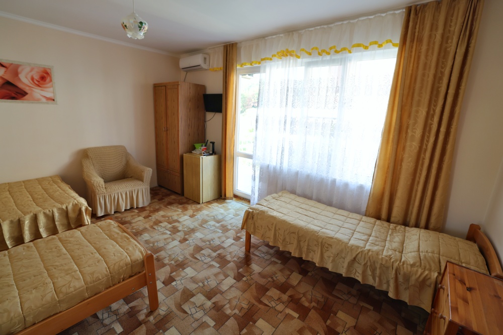 В номере бесплатный Wi-Fi, санузел с душевой кабиной, горячая вода и свежие полотенца. Двуспальная кровать 140 на 200, 2 односпальные кровати 80 на 200 и раскладное кресло. Телевизор, мощный кондиционер и холодильник для прохладительных напитков. Электрический чайник и всё то, что создает ощущение домашнего уюта.