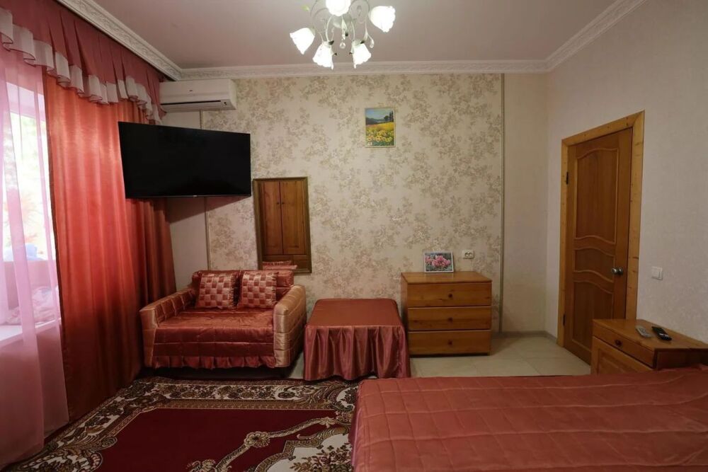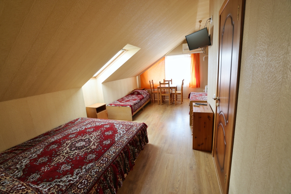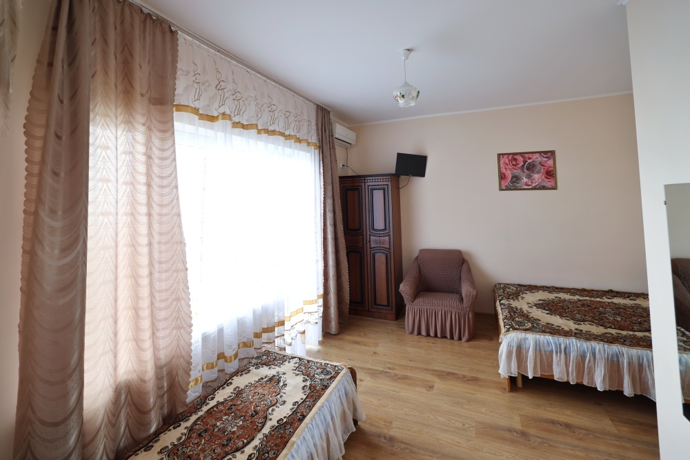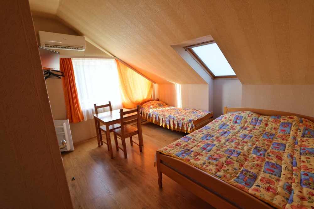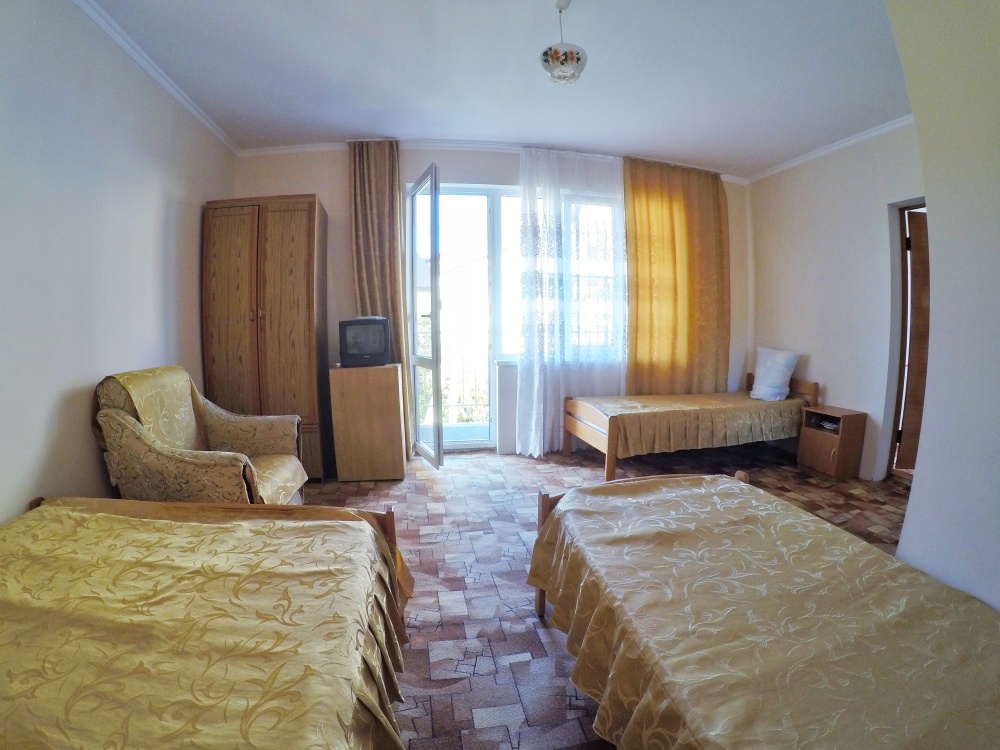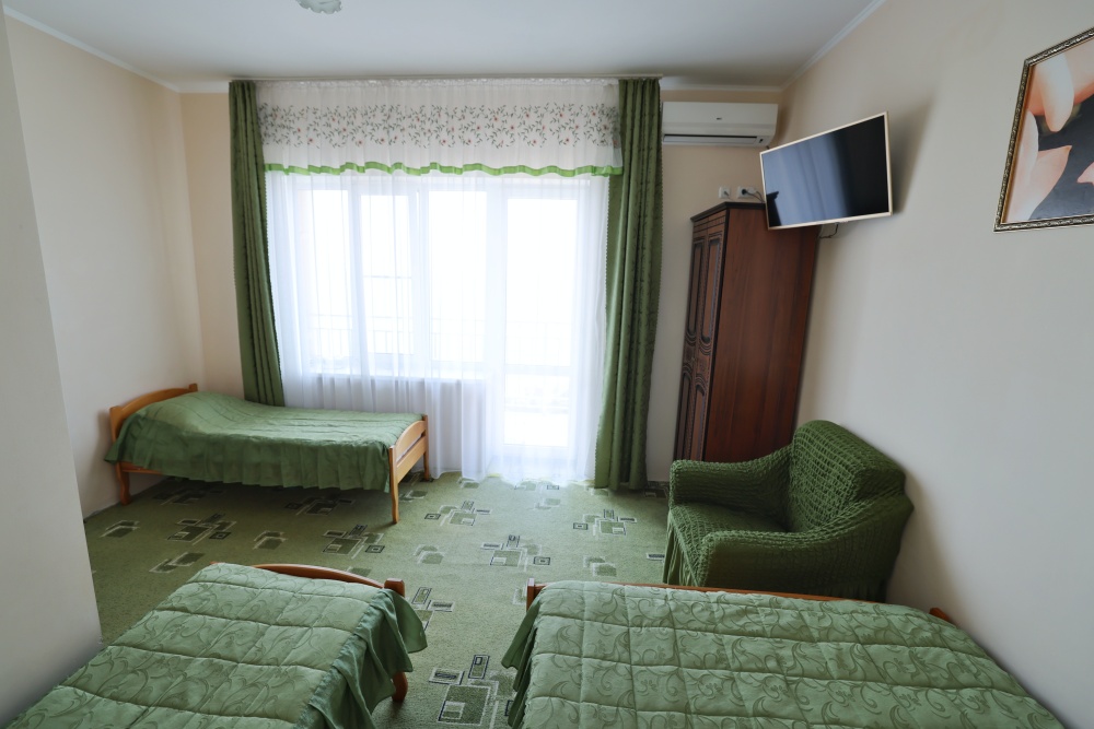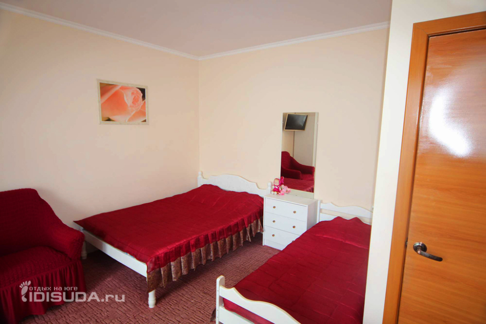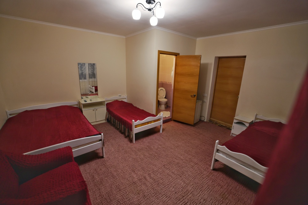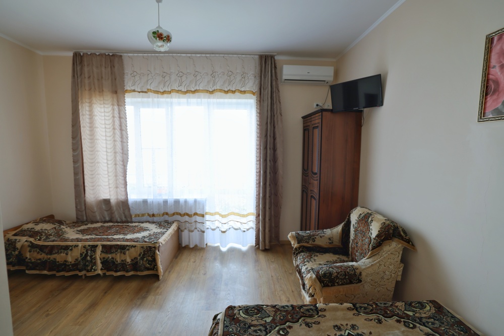 В номере бесплатный Wi-Fi, санузел с душевой кабиной, горячая вода и свежие полотенца. Двуспальная кровать 140 на 200, 2 односпальные кровати 80 на 200 и раскладное кресло. Телевизор, мощный кондиционер и холодильник для прохладительных напитков. Электрический чайник и всё то, что создает ощущение домашнего уюта.