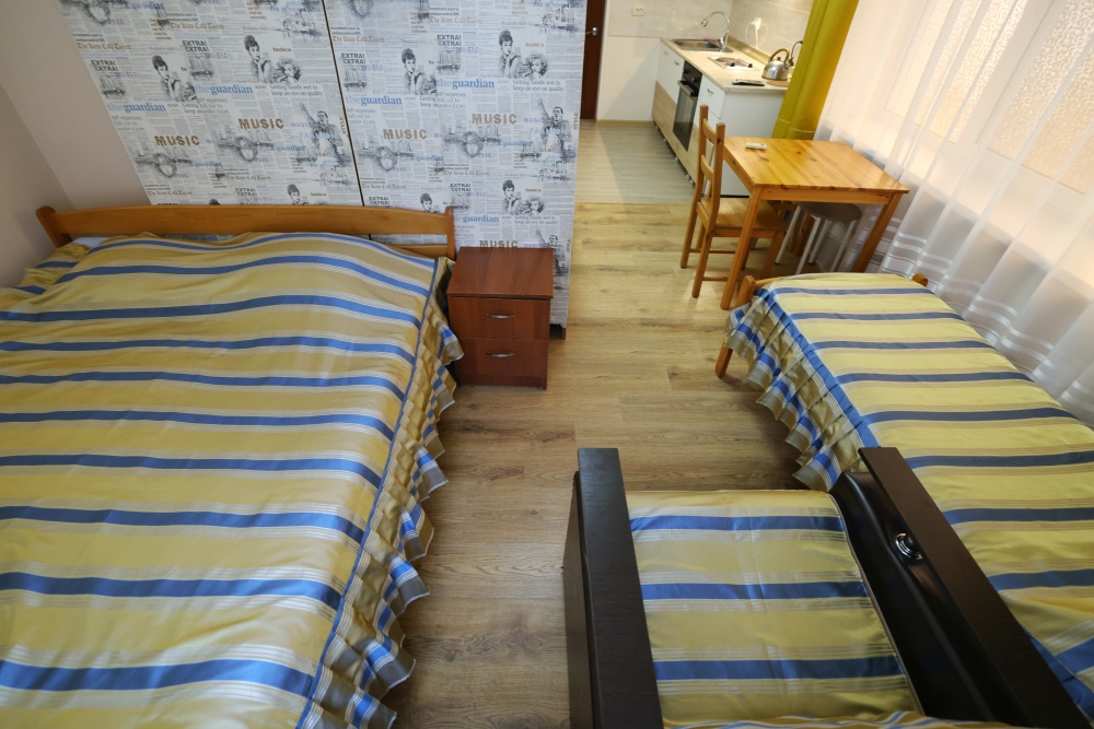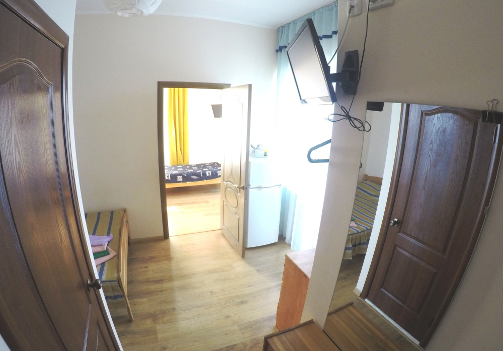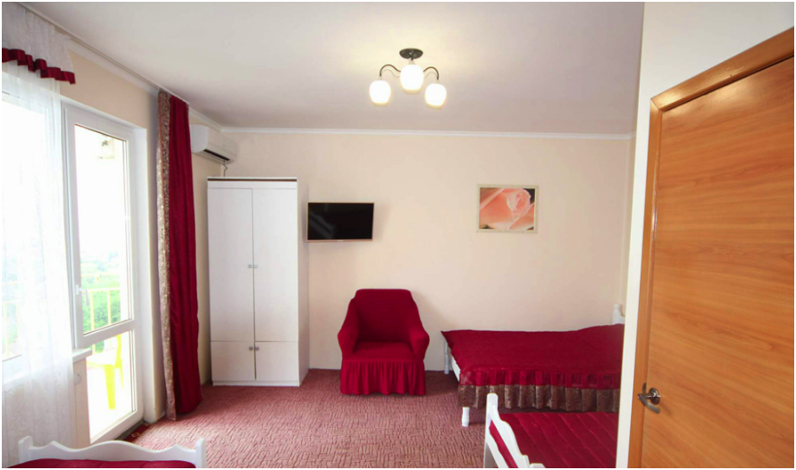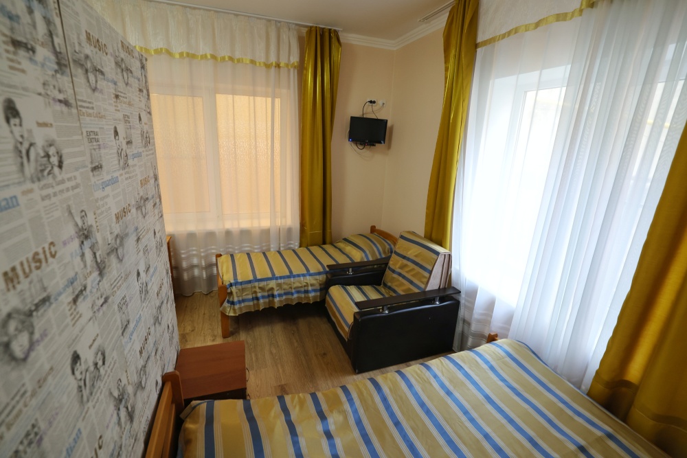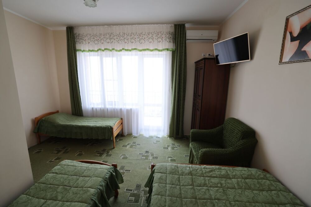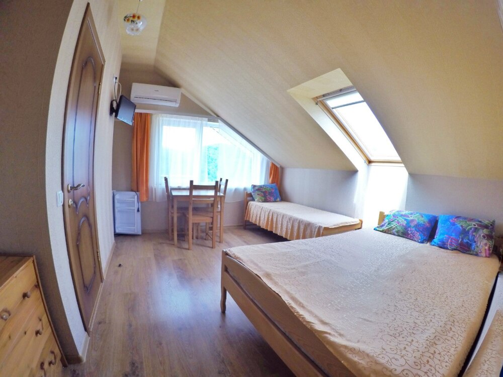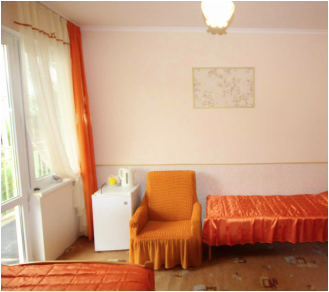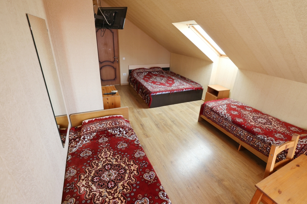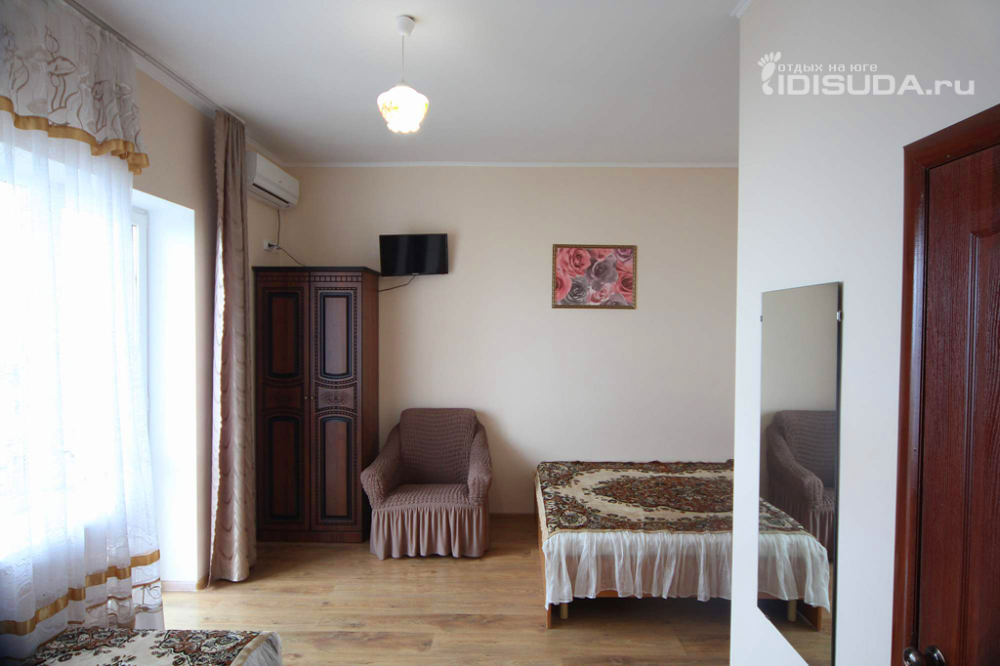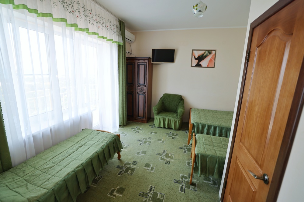 В номере бесплатный Wi-Fi, санузел с душевой кабиной, горячая вода и свежие полотенца. Двуспальная кровать 140 на 200, 2 односпальные кровати 80 на 200 и раскладное кресло. Телевизор, мощный кондиционер и холодильник для прохладительных напитков. Электрический чайник и всё то, что создает ощущение домашнего уюта.