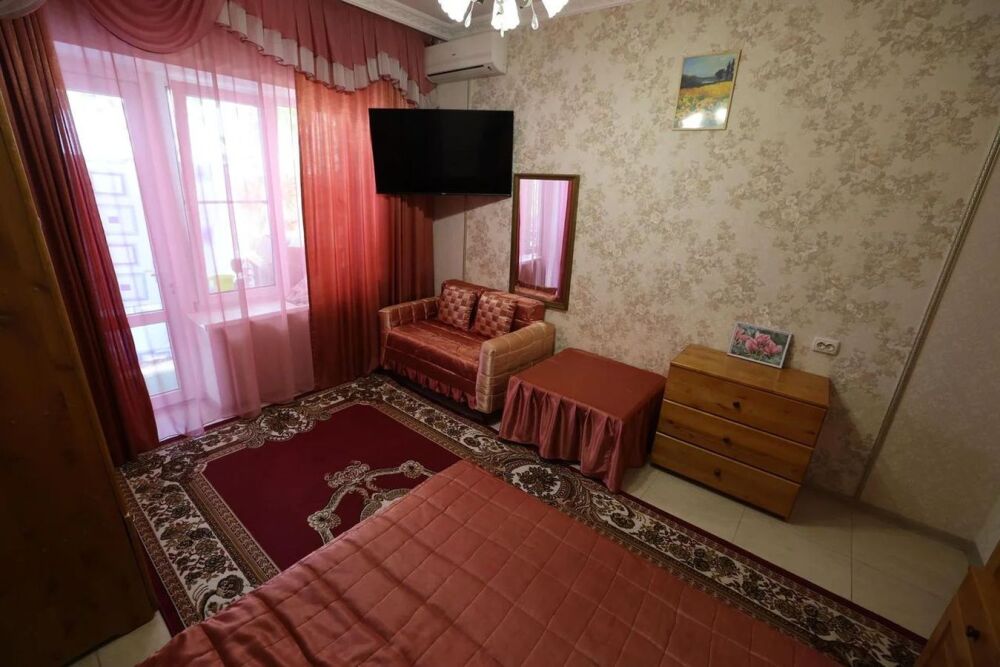 В номере бесплатный Wi-Fi, два санузла с душевой кабиной и ванной, горячая вода и свежие полотенца. Двуспальная кровать 160 на 200 и диван на 1 человека, во второй комнате кровать 160 на 200, в гостиной удобный диван на 2 человека. Телевизор для развлечений в каждой комнате, мощный кондиционер и холодильник для прохладительных напитков. Чайник, утюг и гладильная доска, стиральная машина, холодильник, микроволновка, печь, посудомоечная машина, духовка. Автостоянка для гостей, рекомендуем забронировать парковку заранее при оформлении заказа.