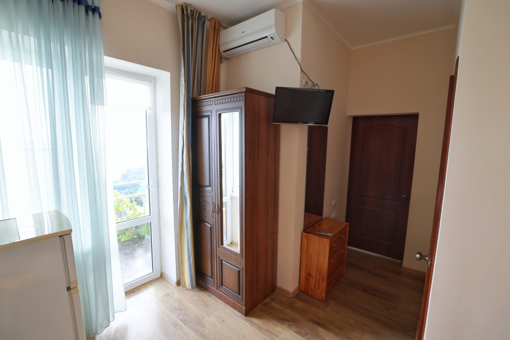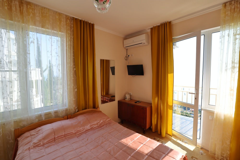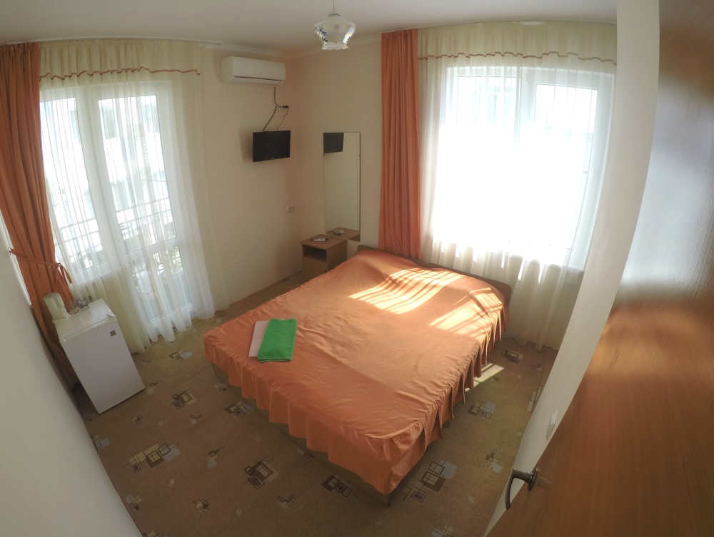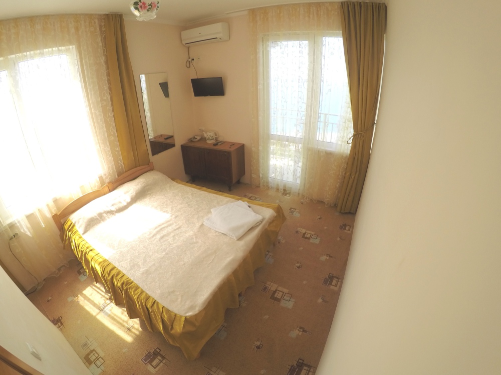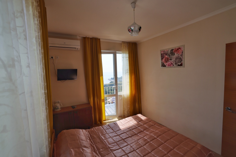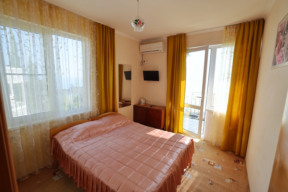 В номере две комнаты, каждая с выходом на собственный панорамный балкон, где можно наслаждаться вечерним закатом и звездным небом. Бесплатный Wi-Fi, санузел с душевой кабиной, горячая вода и свежие полотенца. Двуспальная кровать 140 на 200, во второй комнате кровать 160 на 200 и односпальная кровать 70 на 200. Телевизор в каждой комнате, мощный кондиционер и холодильник для прохладительных напитков. Электрический чайник для утреннего кофе и всё то, что создает ощущение домашнего уюта. Выходите на общую просторную веранду с бассейном, который уже с июня прогревается до комфортных +25°C.