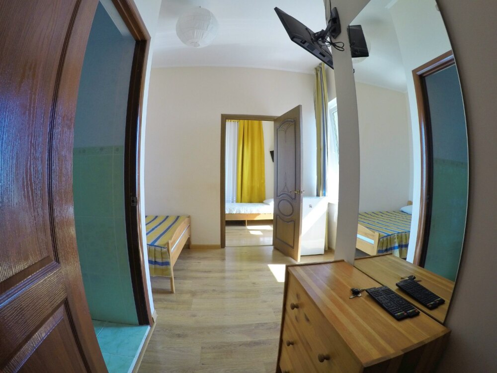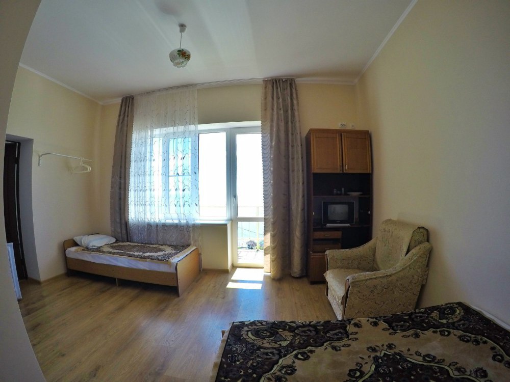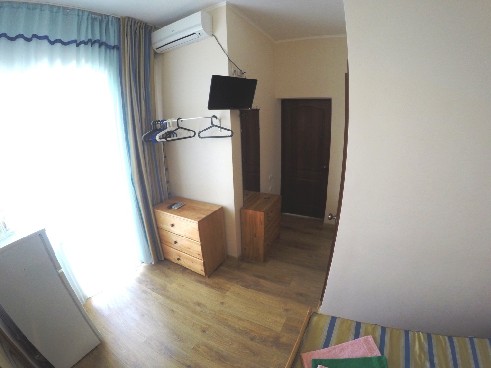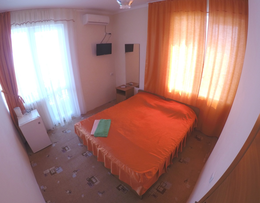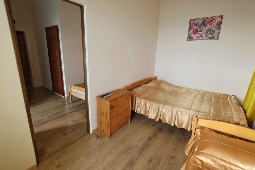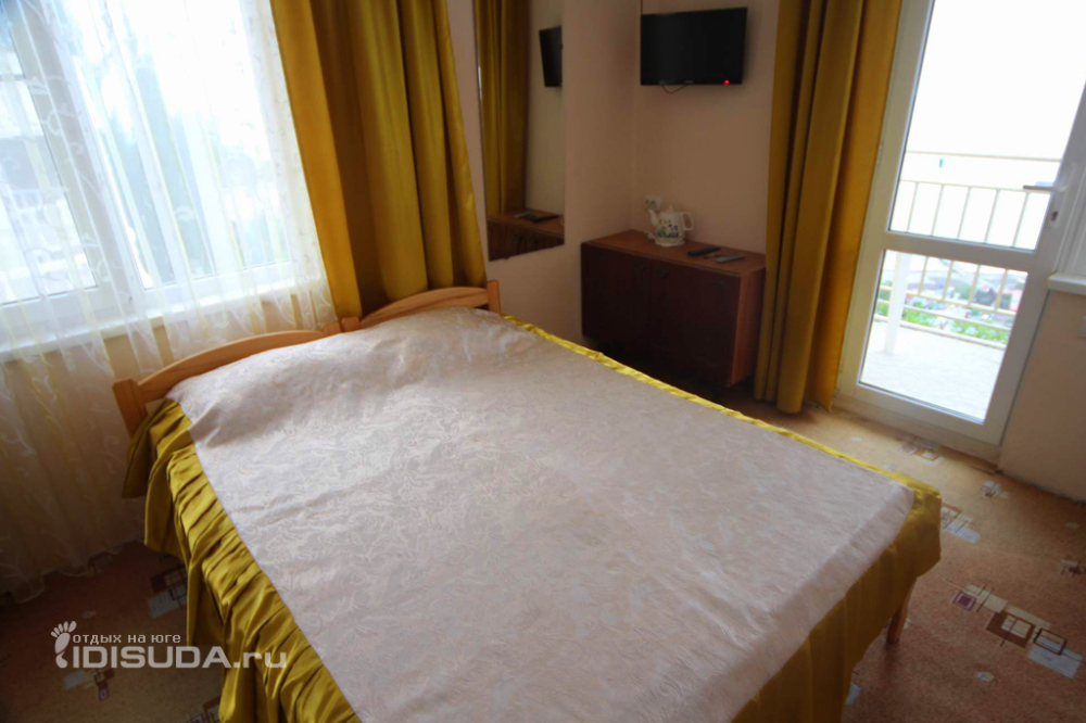 В номере две комнаты, каждая с выходом на собственный панорамный балкон, где можно наслаждаться вечерним закатом и звездным небом. Бесплатный Wi-Fi, санузел с душевой кабиной, горячая вода и свежие полотенца. Двуспальная кровать 140 на 200, во второй комнате кровать 160 на 200 и односпальная кровать 70 на 200. Телевизор в каждой комнате, мощный кондиционер и холодильник для прохладительных напитков. Электрический чайник для утреннего кофе и всё то, что создает ощущение домашнего уюта. Выходите на общую просторную веранду с бассейном, который уже с июня прогревается до комфортных +25°C.