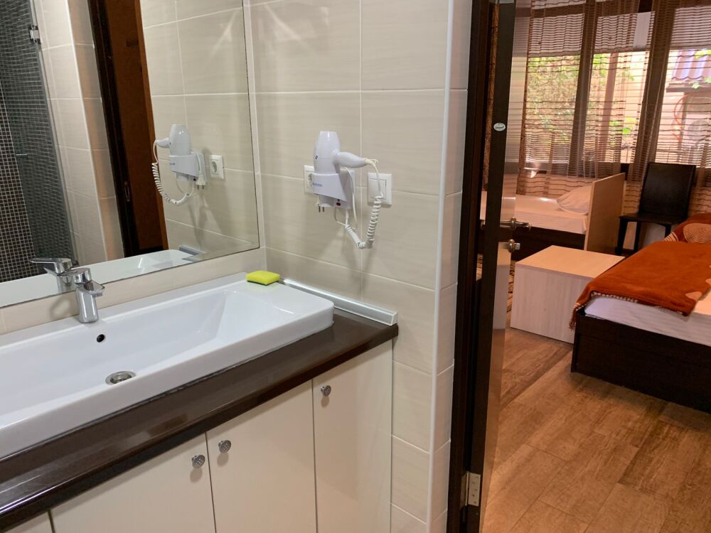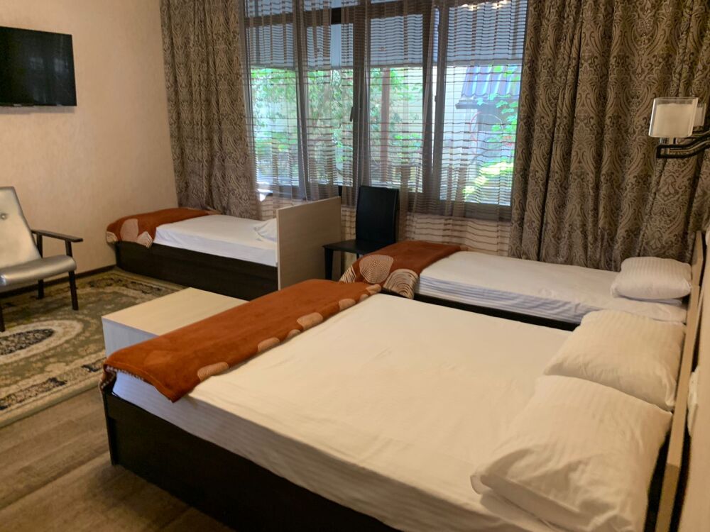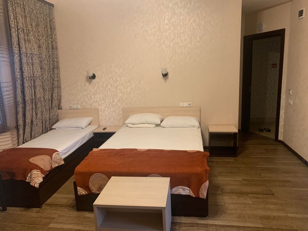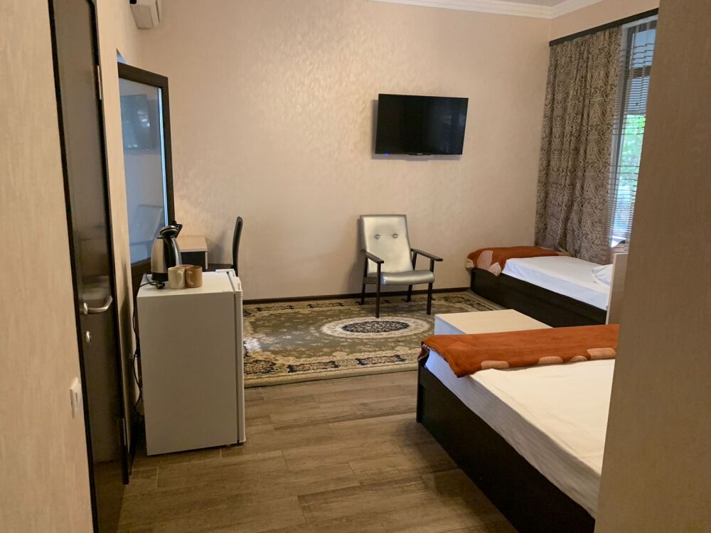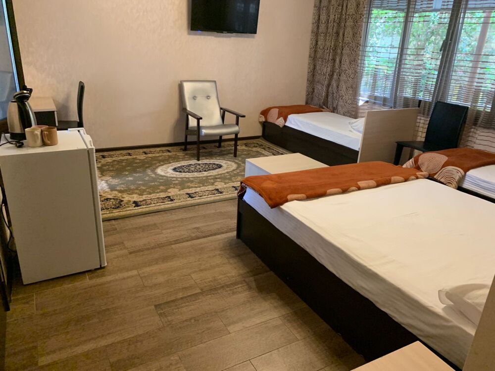 В номерах имеются: телевизор с плоским экраном, холодильник, кондиционер и санузел. Для Вашего удобства есть общая кухня со всей необходимой посудой.