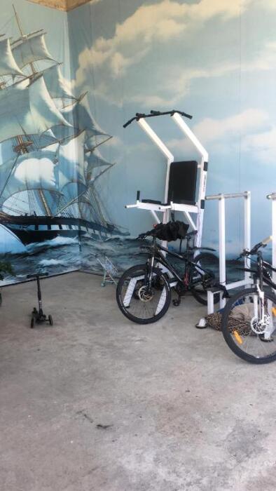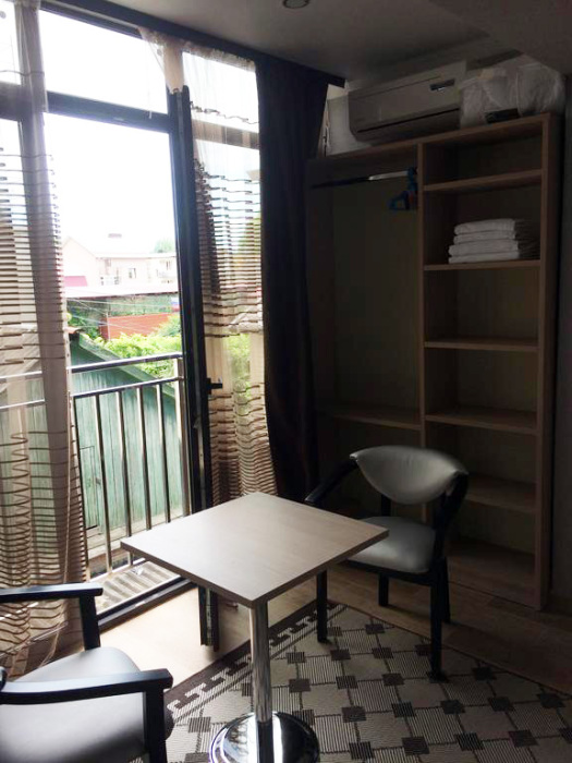 Территория гостиницы небольшая, но компактная. В закрытом дворе есть мангал и место для отдыха, парковки своей нет. В 100 м от дома расположена платная парковка.