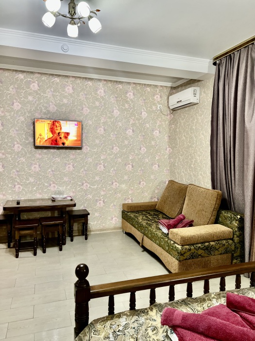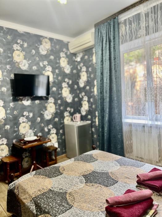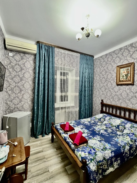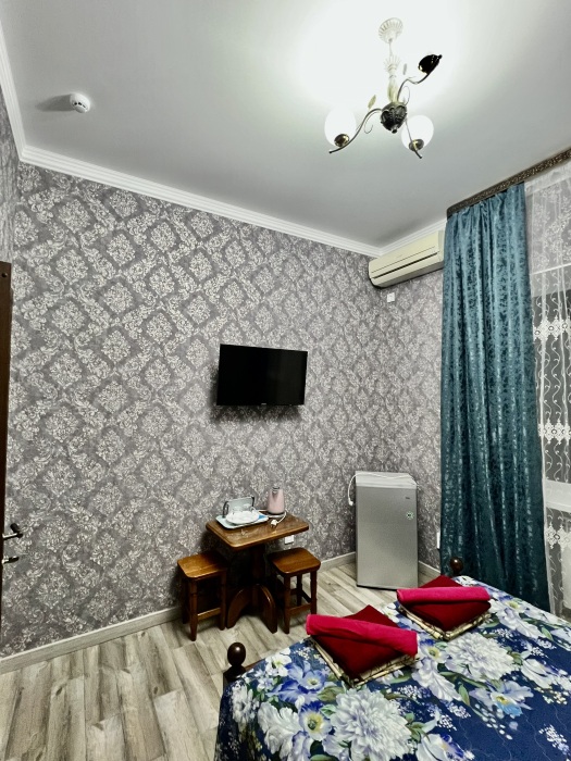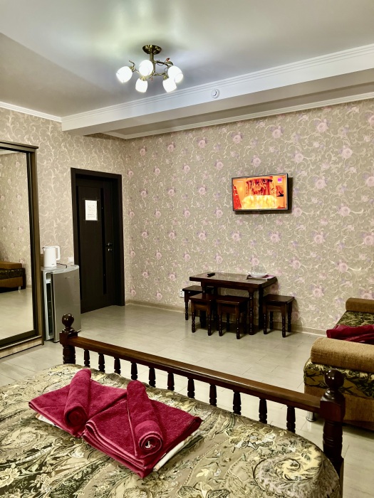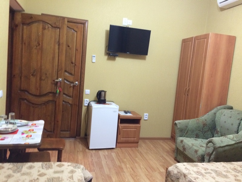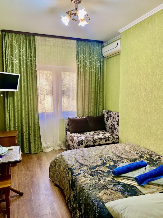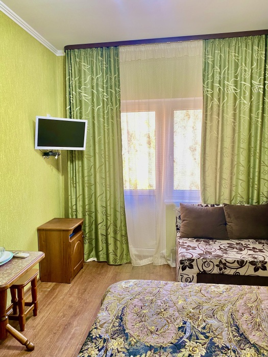Комфортные комнаты с 2,3 и 4-местным размещением ,с современным интерьером. Комнаты оборудованы :туалет, душ, холодильник, сплит-система, телевизор, электрический чайник, сейф ,фен . При необходимости предоставляются дополнительные места. Водоснабжение круглосуточное (горячая и холодная вода)