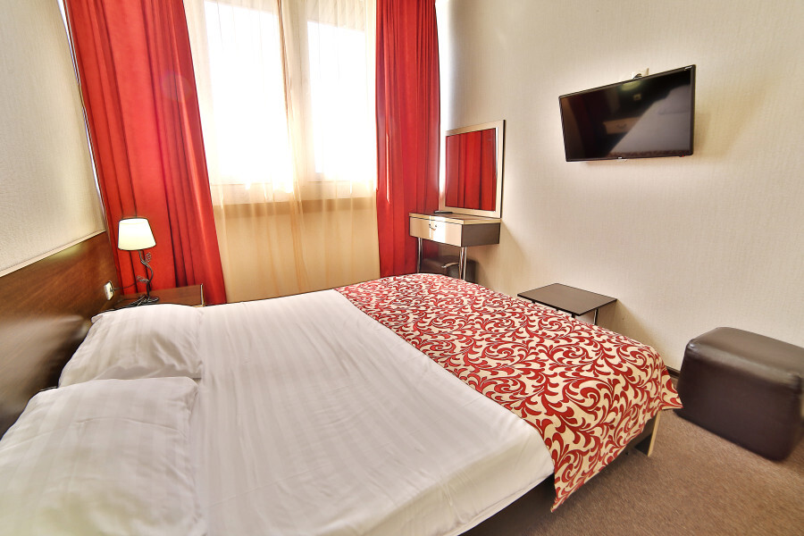 Номер стандарт расположен на первом этаже. Для многих гостей является преимуществом, т.к в гостинице нет лифта. В отличии от номеров других категорий в номере душевая кабина. Доступен для людей с ограниченными возможностями.