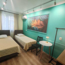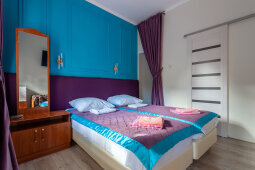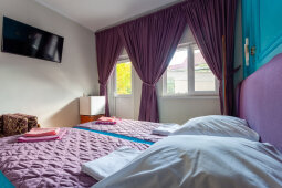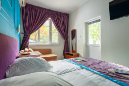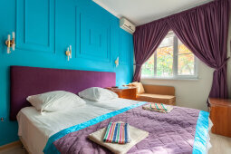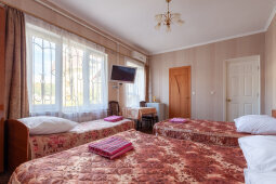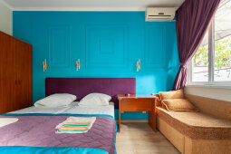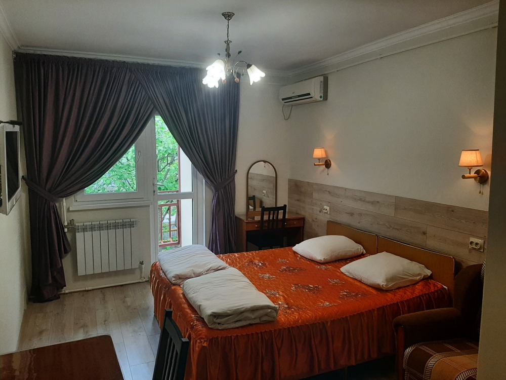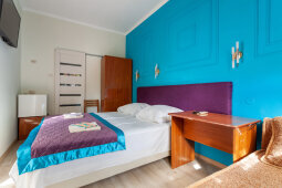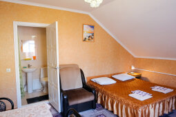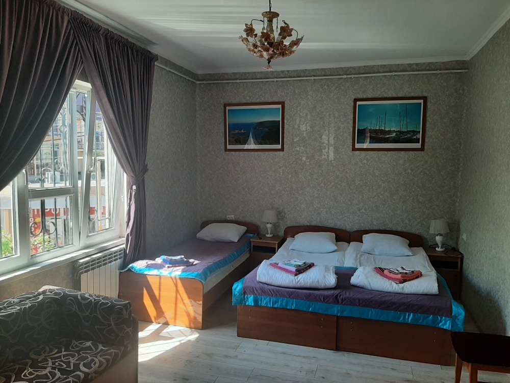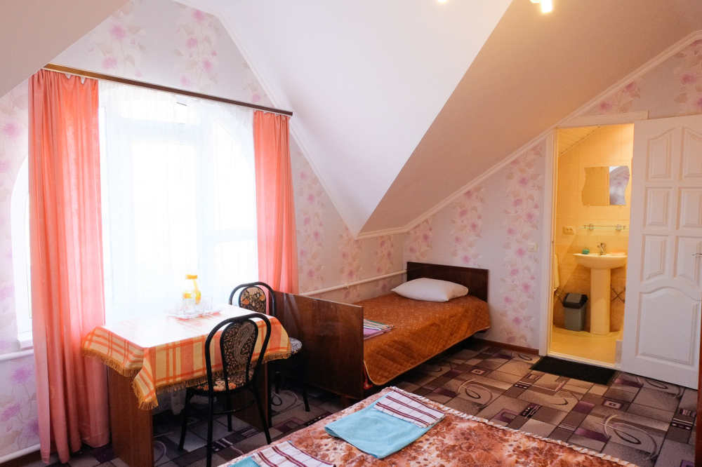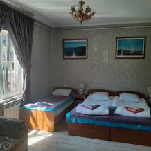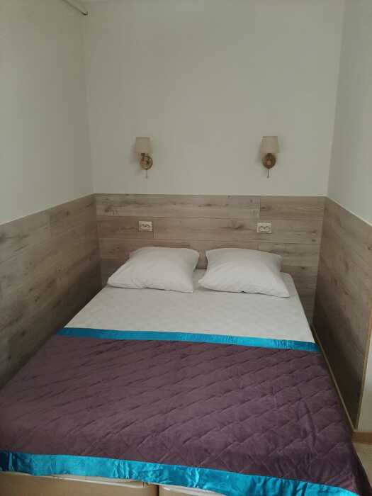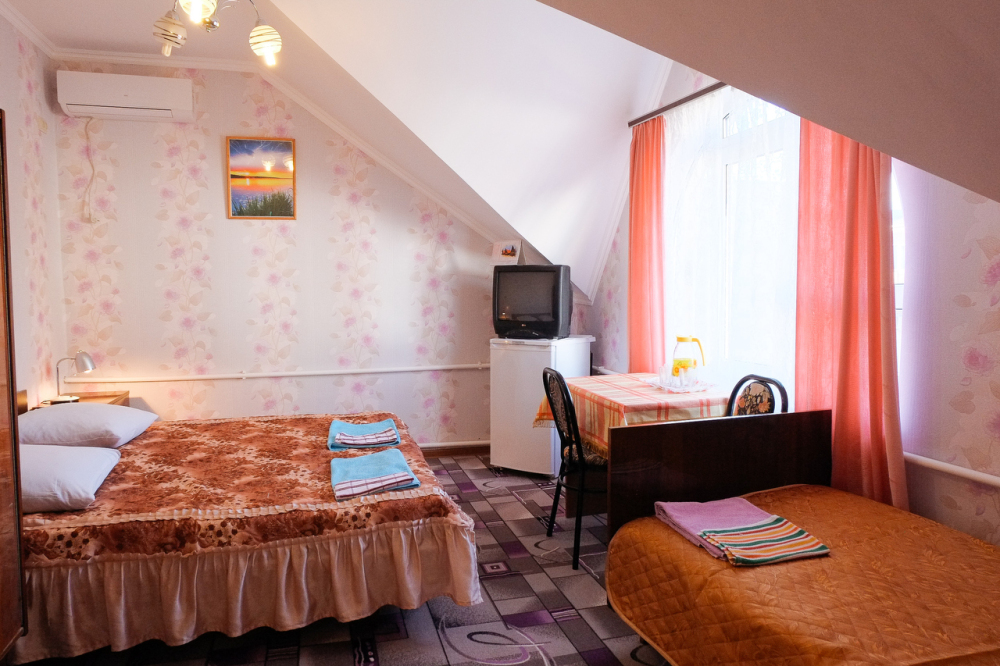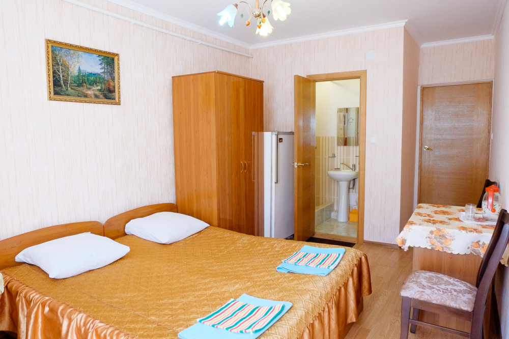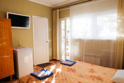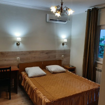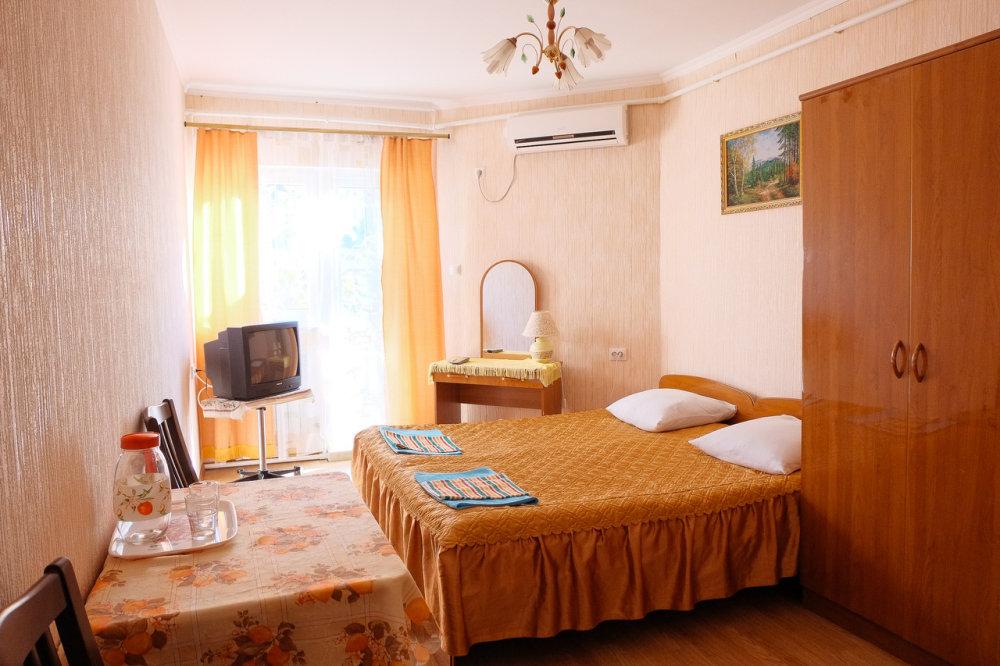 В нашем отеле есть номера на любой вкус с удобствами, кондиционерами, телевизорами, холодильниками, в них есть все для комфортного отдыха. В отеле бесплатный Wi-Fi. Любители готовить самостоятельно, могут приготовить легкий обед в просторной кухне со всем необходимым инвентарем. Для детей есть детская площадка и качели. Рады будем видеть вас с детьми.