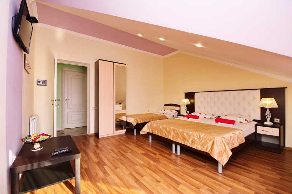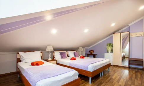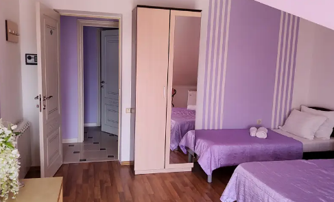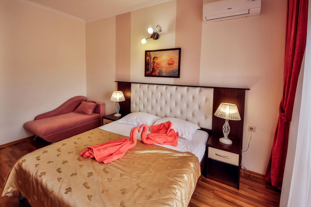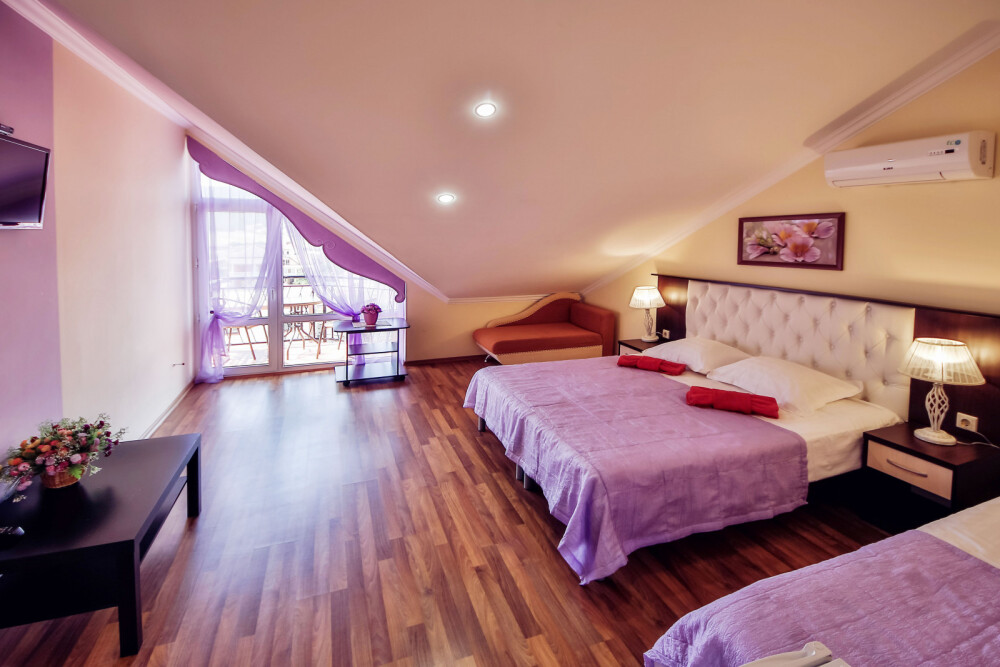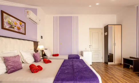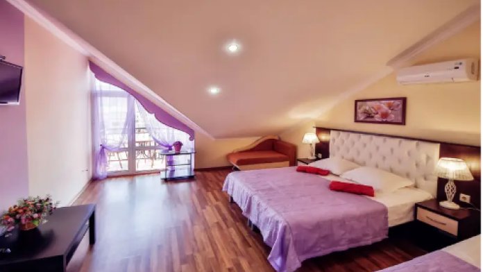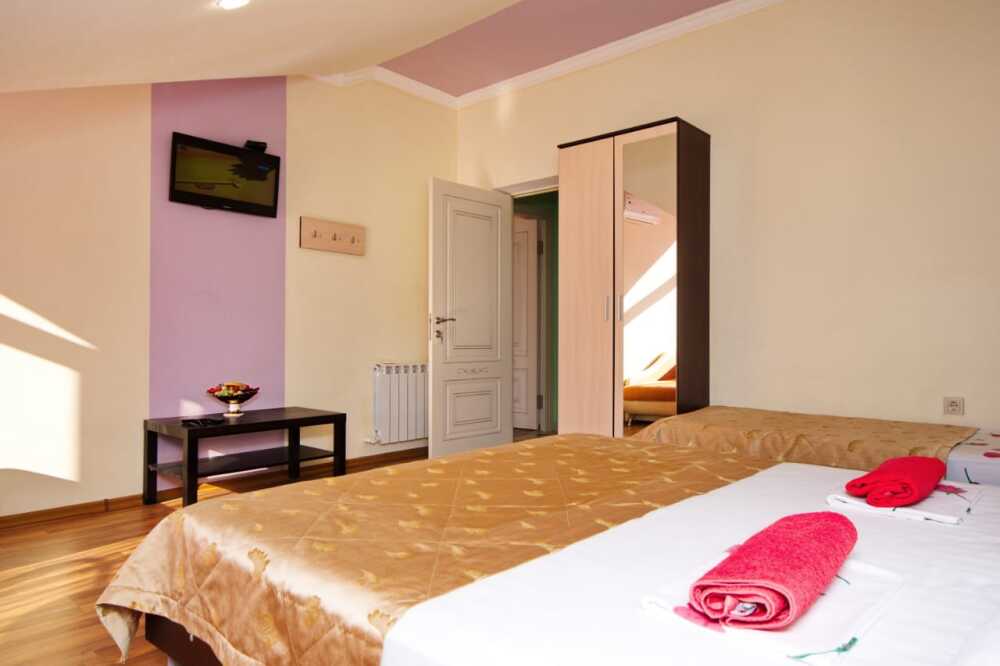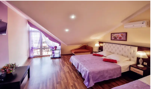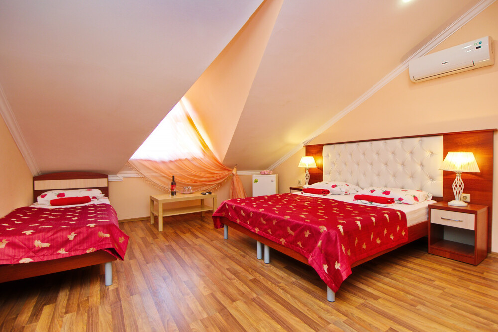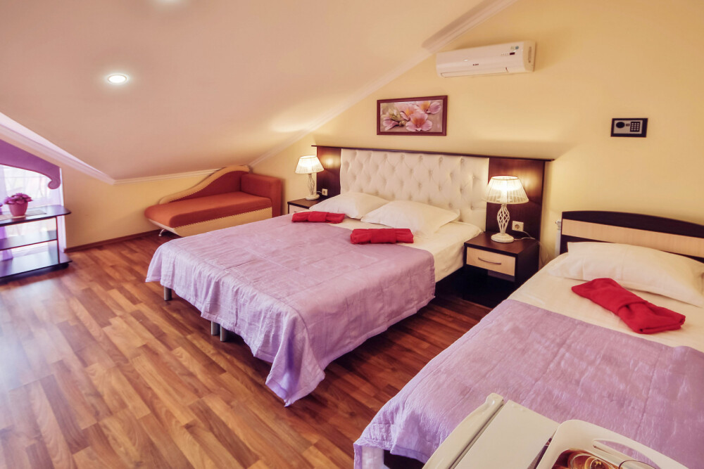 Дом располагает уютными комнатами различного уровня комфорта и стоимости, выполненными в современном европейском дизайне (2,3,4-местные и 2-комнатные). В каждой комнате: сплит-система и отопление, позволяющие создать благоприятный микроклимат, кабельное телевидение, сейф для хранения ценностей, фен. В некоторых комнатах приятным дополнениям станет открытый, уютный балкон, меблированный столиками и стульями.