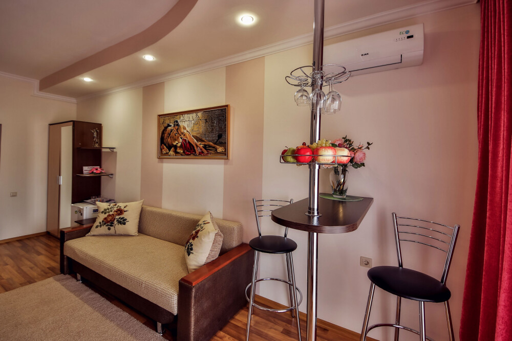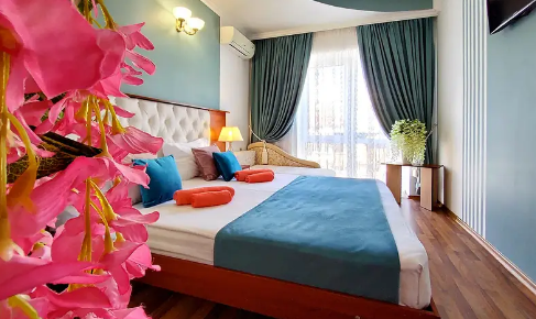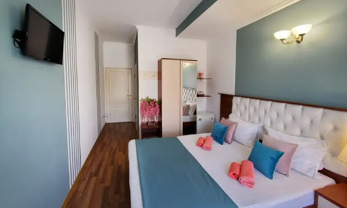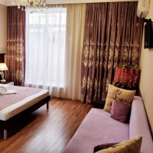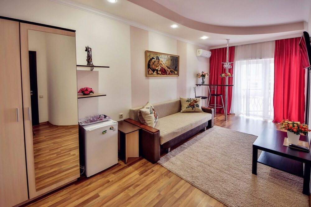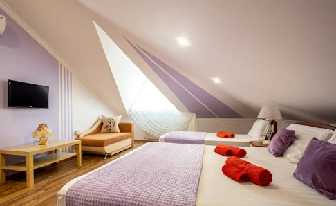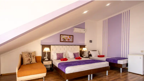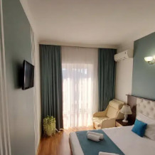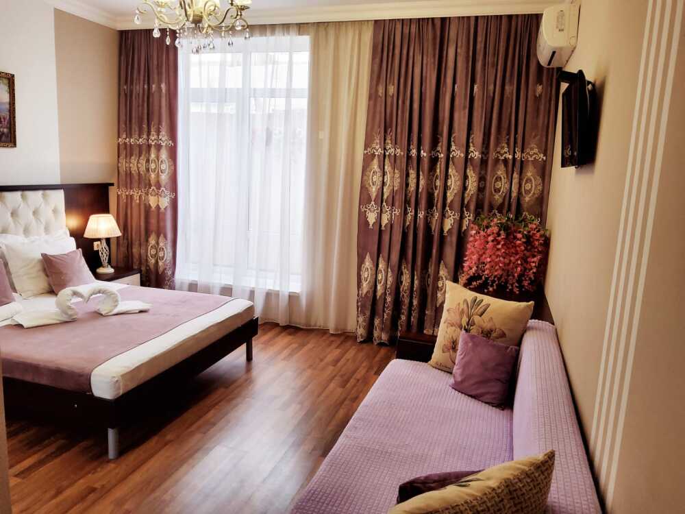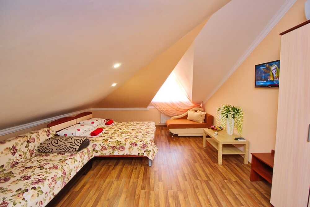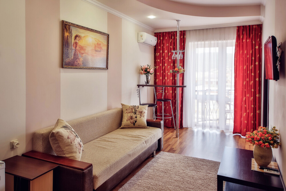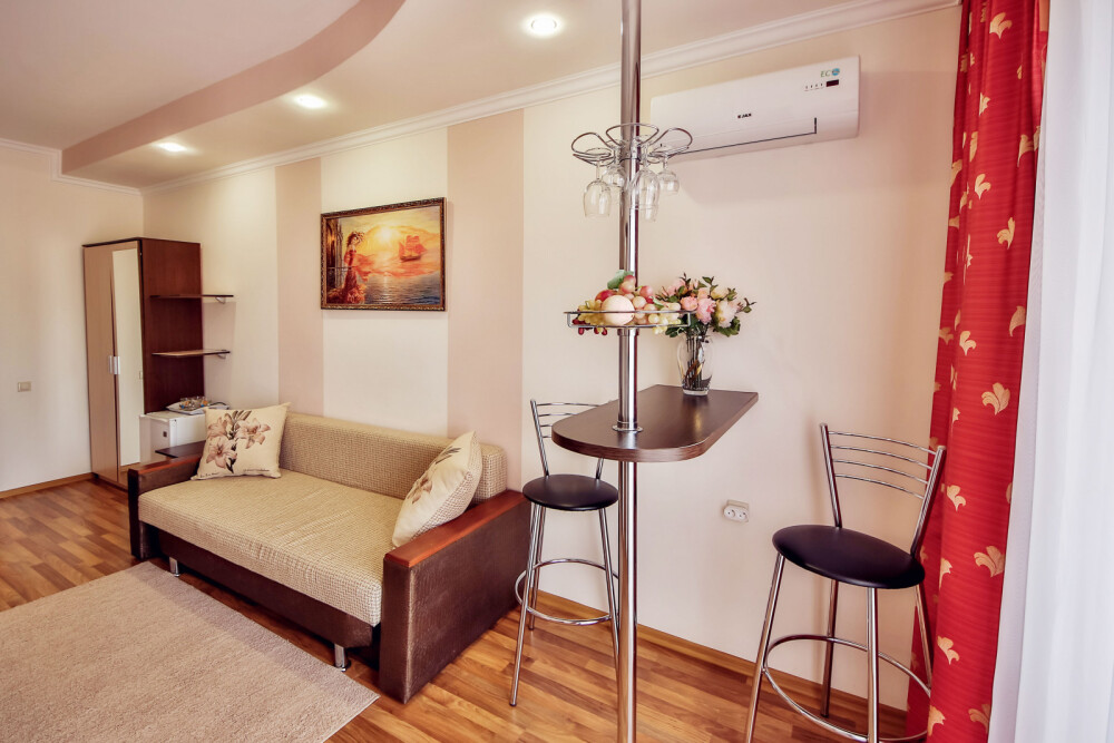Дом располагает уютными комнатами различного уровня комфорта и стоимости, выполненными в современном европейском дизайне (2,3,4-местные и 2-комнатные). В каждой комнате: сплит-система и отопление, позволяющие создать благоприятный микроклимат, кабельное телевидение, сейф для хранения ценностей, фен. В некоторых комнатах приятным дополнениям станет открытый, уютный балкон, меблированный столиками и стульями.