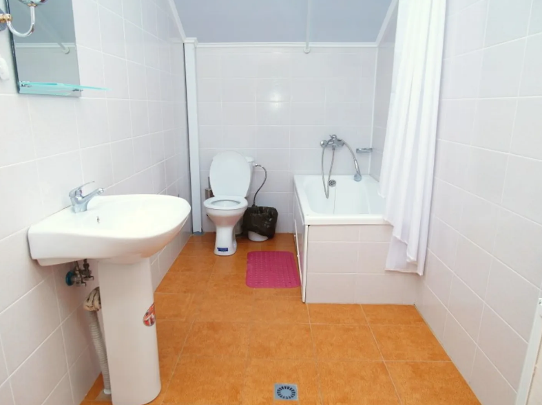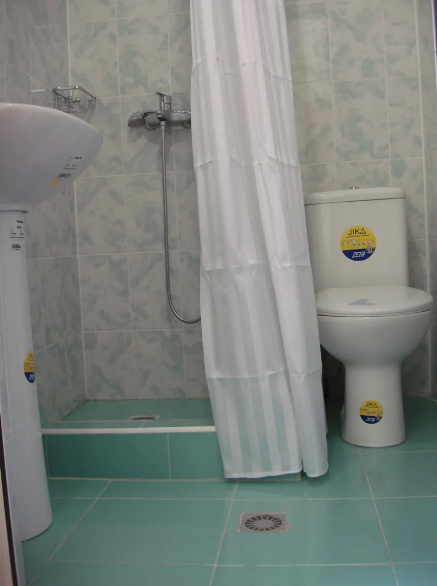 Рядом располагаются два санузла, на три номера (блок: два двухместных и один трехместный номер).