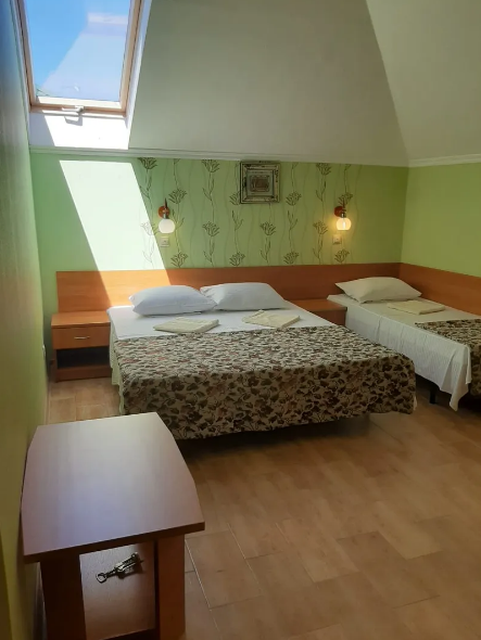 Новый современный гостевой дом расположен в тихом районе Кабардинки, рядом с речкой и виноградником. По дороге на пляж расположены продуктовые магазины, курортные товары, кафе.