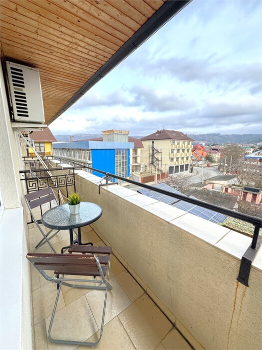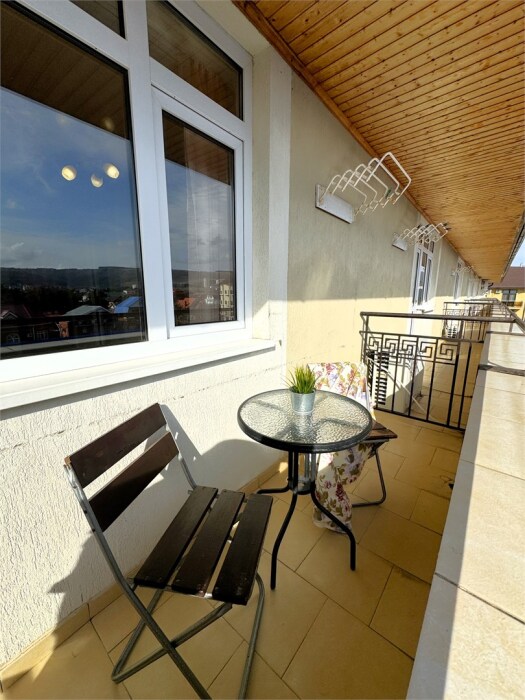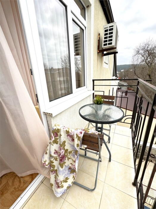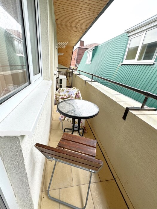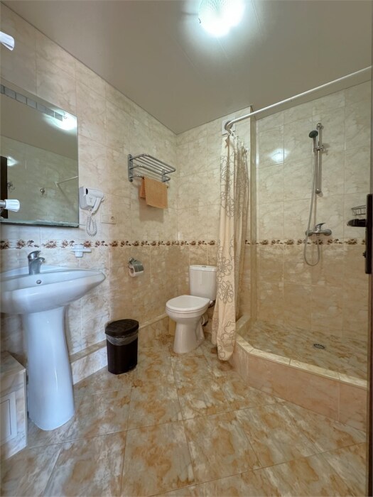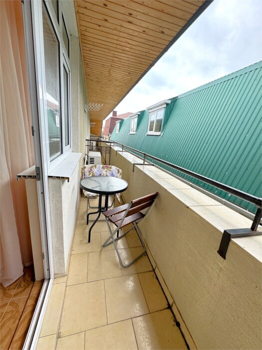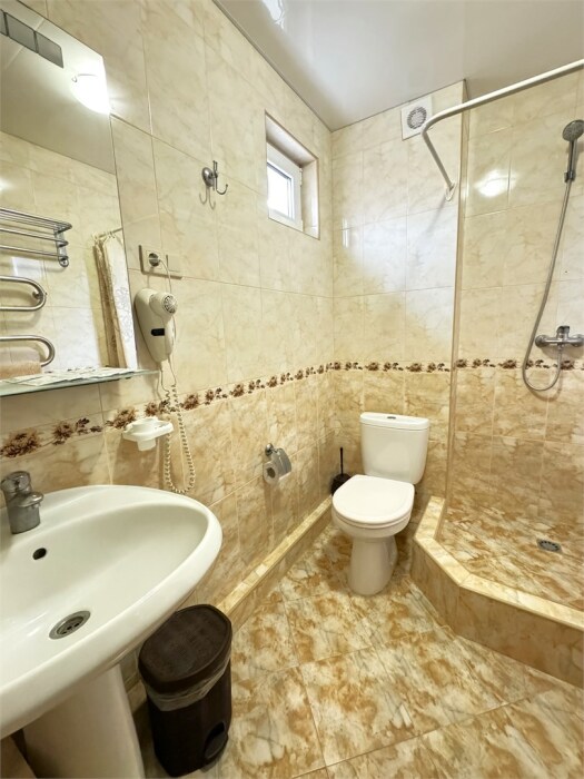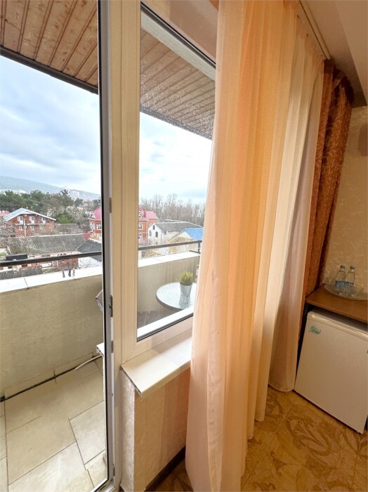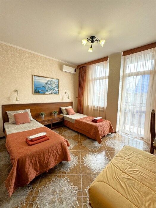 Комфортный трехместный номер с балконом состоит из комнаты и санузла (общая площадь 20-25 м2). Номера данной категории расположены на 2, 3, 4 этажах. Номер оснащен двуспальной кроватью, односпальной кроватью с ортопедическими матрасами и раскладным диваном (ширина 1,2 м), тумбочками, шкафом для одежды, туалетным столиком с зеркалом, журнальным столиком, мини-холодильником, кондиционером, телевизором с плоским экраном. Номер укомплектован постельным бельем, полотенцами. В ванной комнате, укомплектованной феном и набором туалетно-косметических принадлежностей, установлен душ.