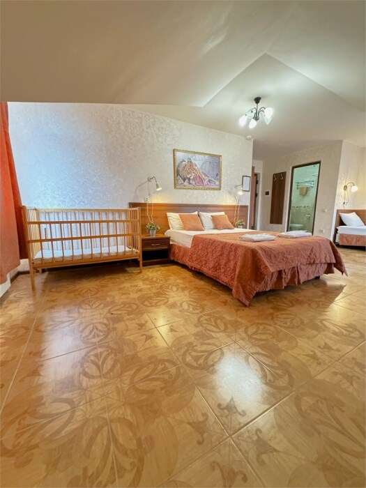 Обращаем внимание, что фотографии номера до обновления: на месте детской кроватки установлена односпальная кровать.