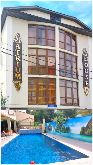 Современный отель 2012 года постройки, четырехэтажное здание с внутренним двором, территория закрытая и охраняемая. Расположен в центре курортной зоны Дивноморского. Близость к морю - пешком 3 минуты ходьбы и не более 5 минут до основных развлечений (бары, ночные клубы). Недалеко от отеля расположены магазины, рынки, сувенирные лавки, рестораны и дискотеки. К услугам гостей отеля “Атриум” предлагается бассейн с подогревом, интернет Wi-Fi на территории всего отеля, детская игровая площадка, столовая, мангал во дворе, летняя беседка, настольный теннис, автостоянка, организация экскурсий, гладильная комната, организация трансфера , услуги прачечной , прокат детских кроваток.