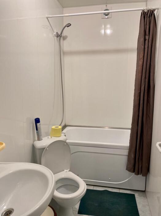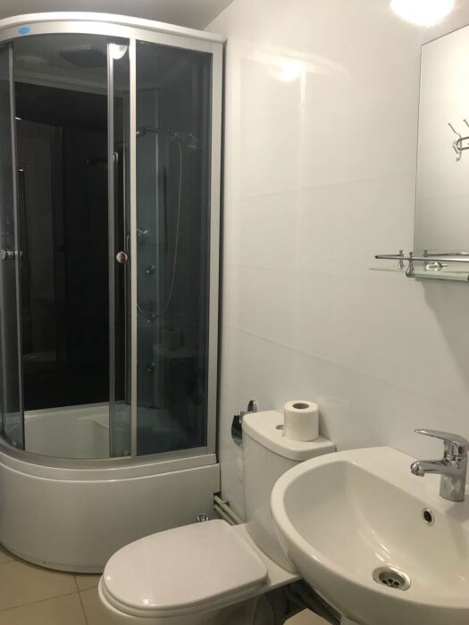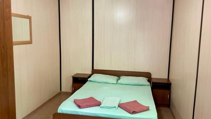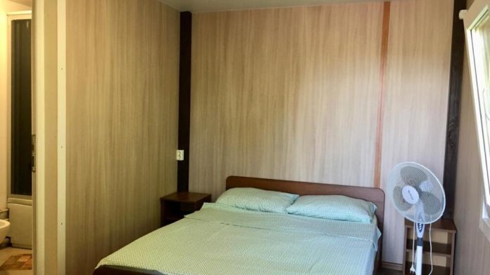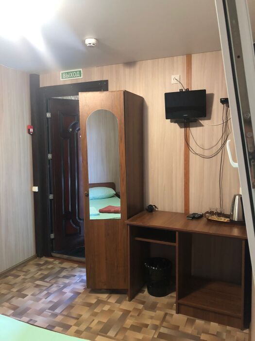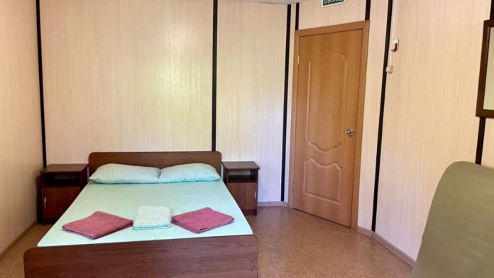 В номере: двуспальная кровать, односпальная кровать, душ, туалет, чайник, телевизор, холодильник, кондиционер.
