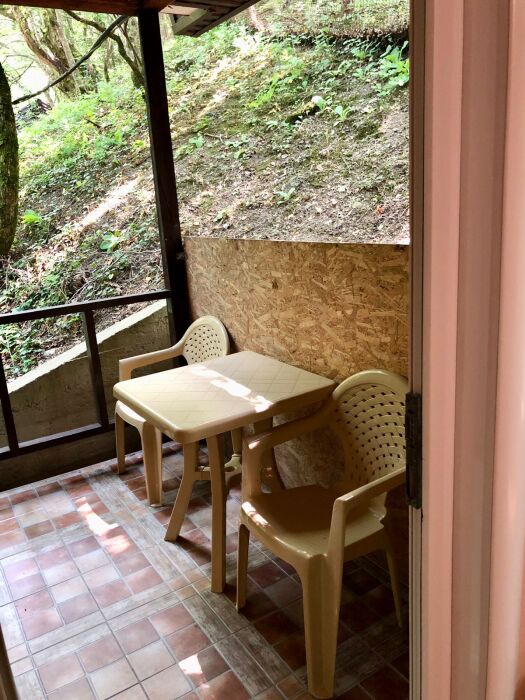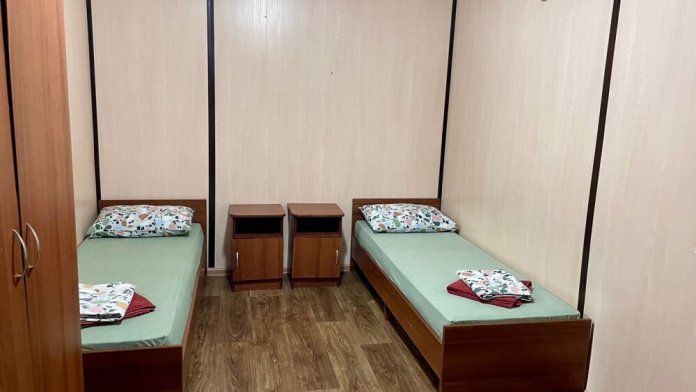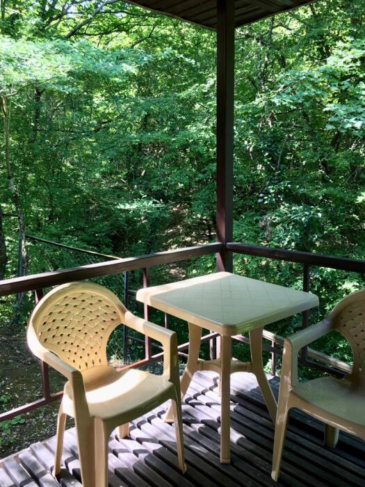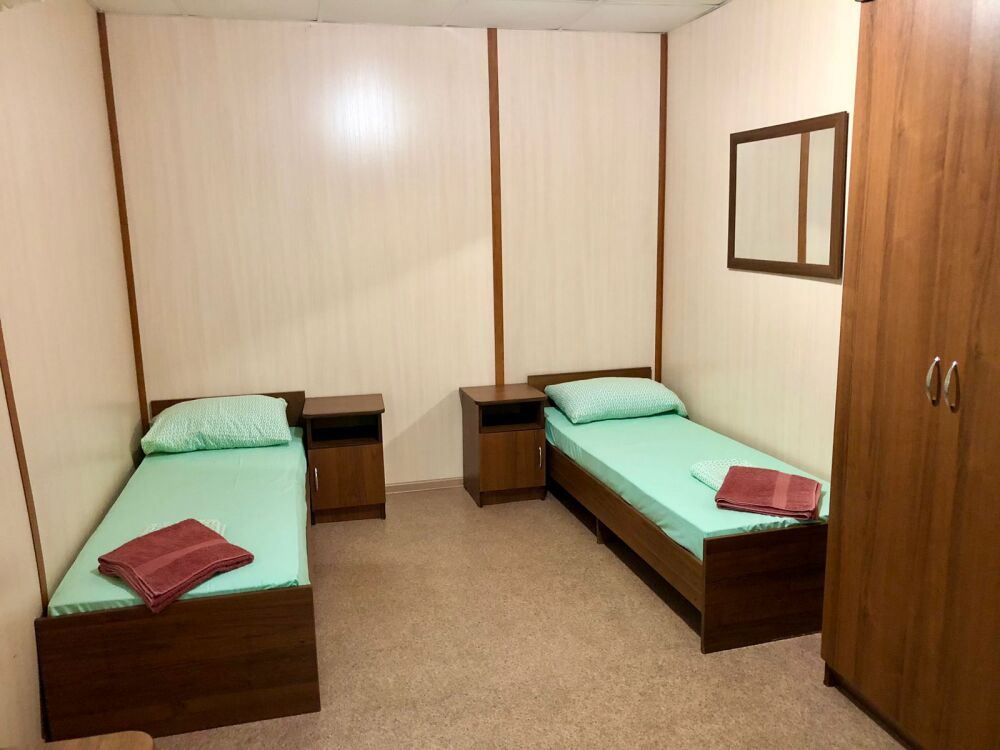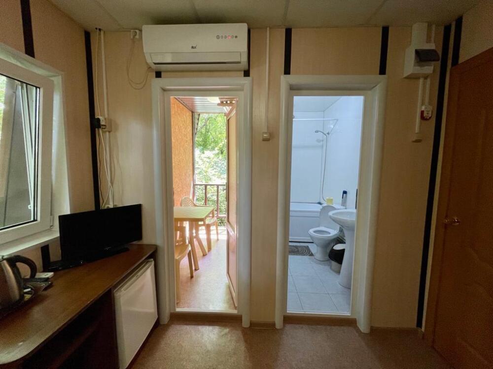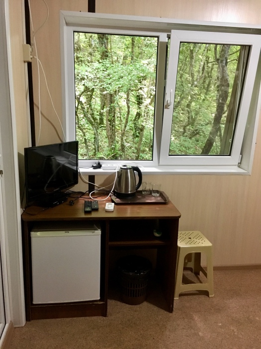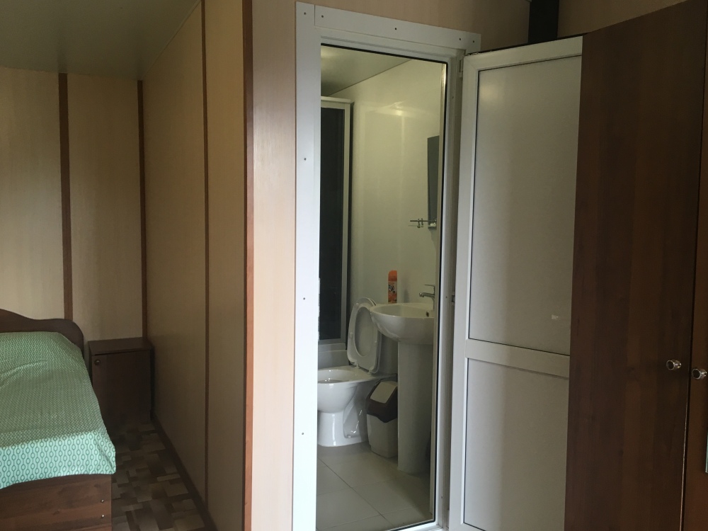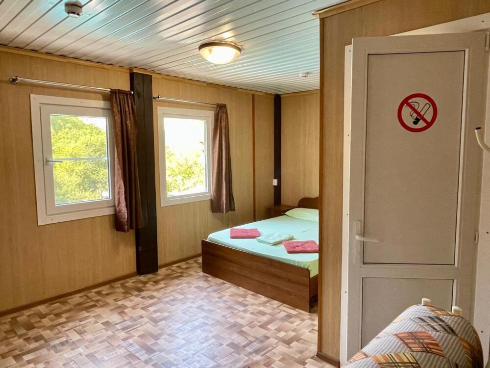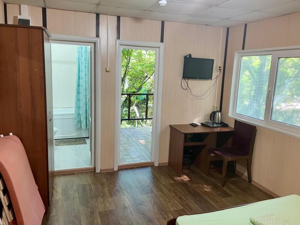 Двухместный номер с 2 односпальными кроватями и кондиционером, общая веранда на 2 номера. В номере: 2 односпальные кровати, душ, туалет, чайник, телевизор, кондиционер, холодильник на веранде (на 2 номера).