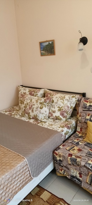 в номере двухспальная кровать , раскладной одноместный диван-кровать