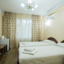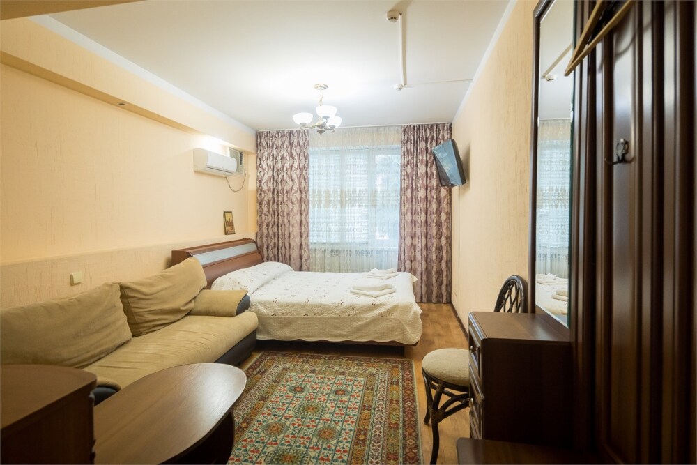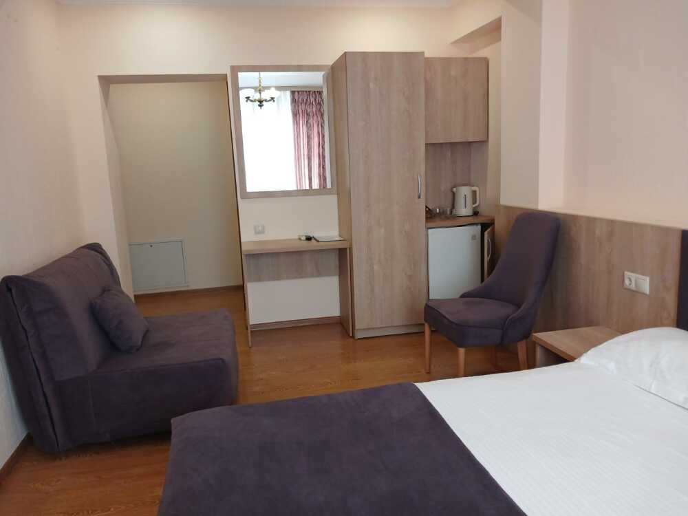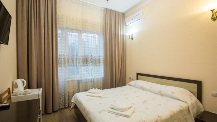 Все номера оборудованы удобными кроватями, сплит-системами, современными ТВ с плоским экраном, холодильниками, вместительными шкафами для одежды. В отдельных номерах есть мягкая мебель, сейфы для ценных вещей и балконы. В каждом номере индивидуальная ванная комната с набором полотенец, гигиенических принадлежностей, санузлом, раковиной и феном.