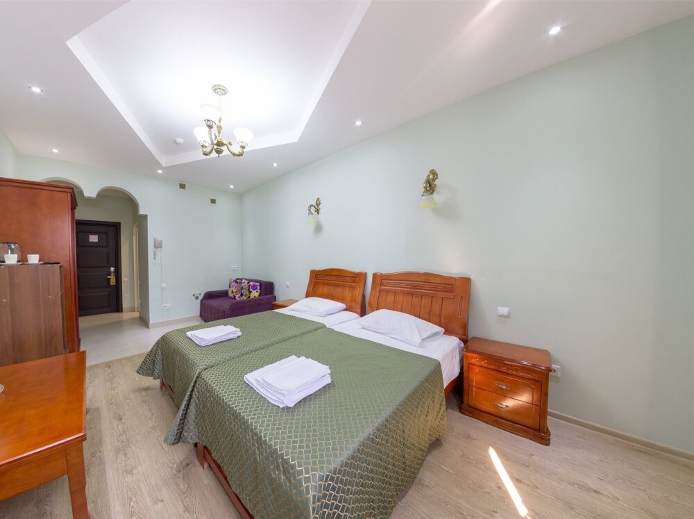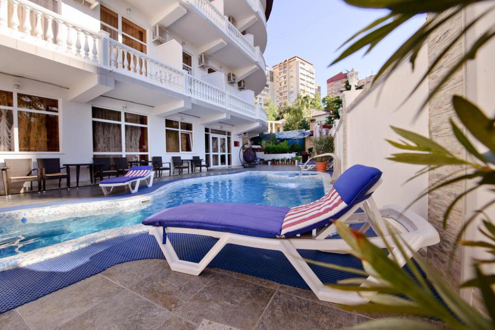 С 1 июня и до 30 сентября рады Вам предложить бесплатный трансфер до пляжа по графику. Современный комфортабельный отель, который славится отличным соотношением цены и качества. К услугам гостей 2-местные, 3-местные и 4-местные номера различных категорий. В стоимость проживания входит завтрак по системе «шведский стол». Так же на обед или ужин мы предложим Вам самые вкусные блюда европейской и кавказской кухни.