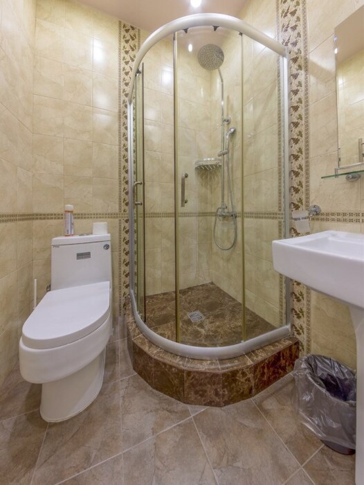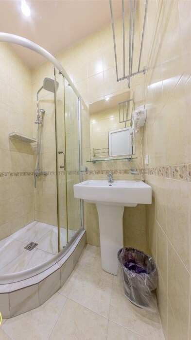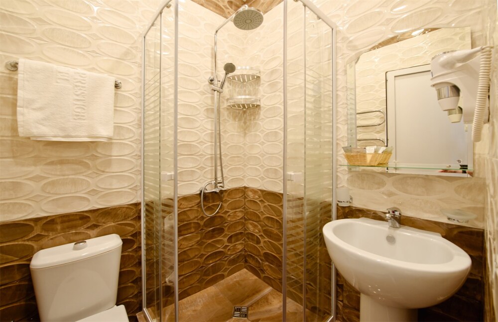 В номере двухместная кровать, телевизор, холодильник, сплит-система, санузел с душевой кабиной, фен.