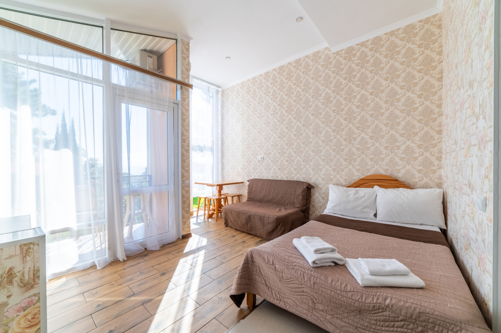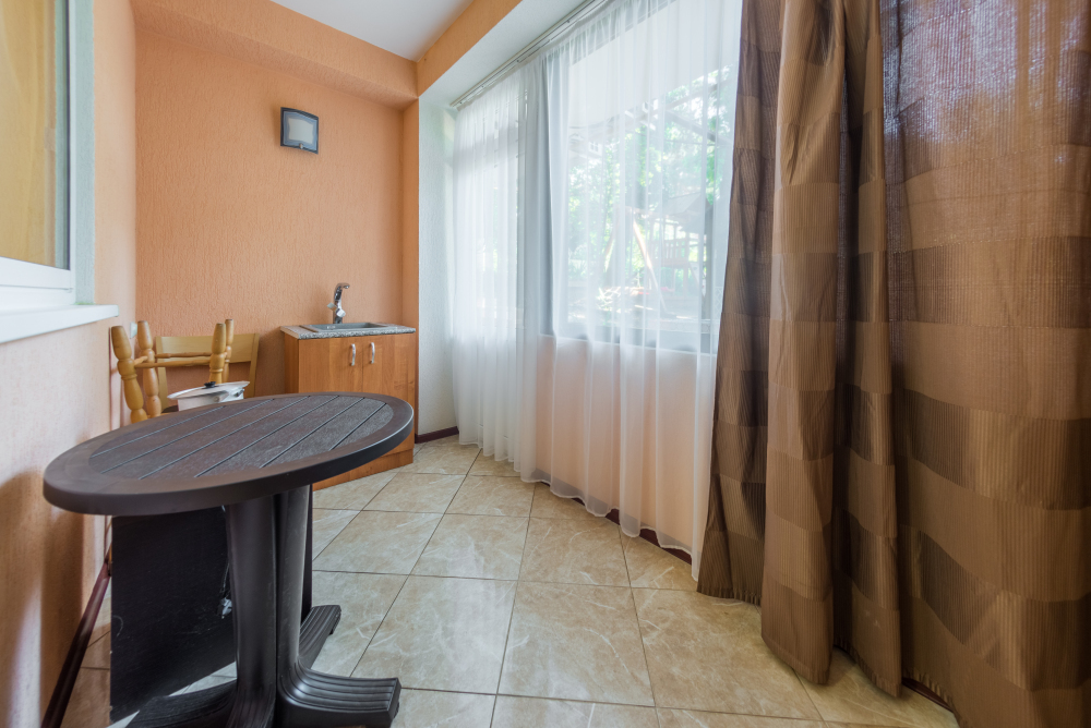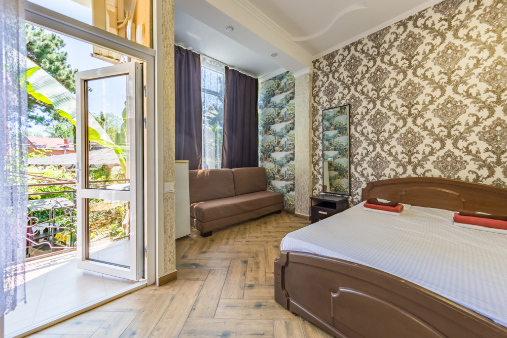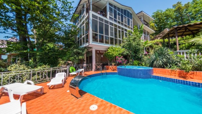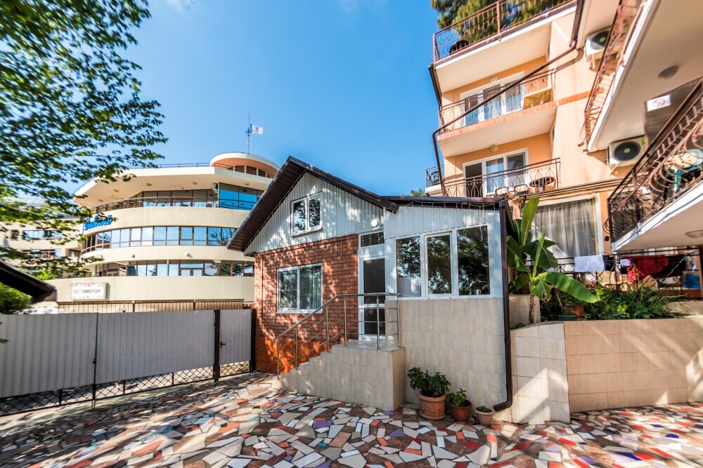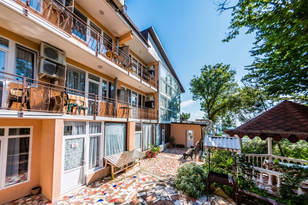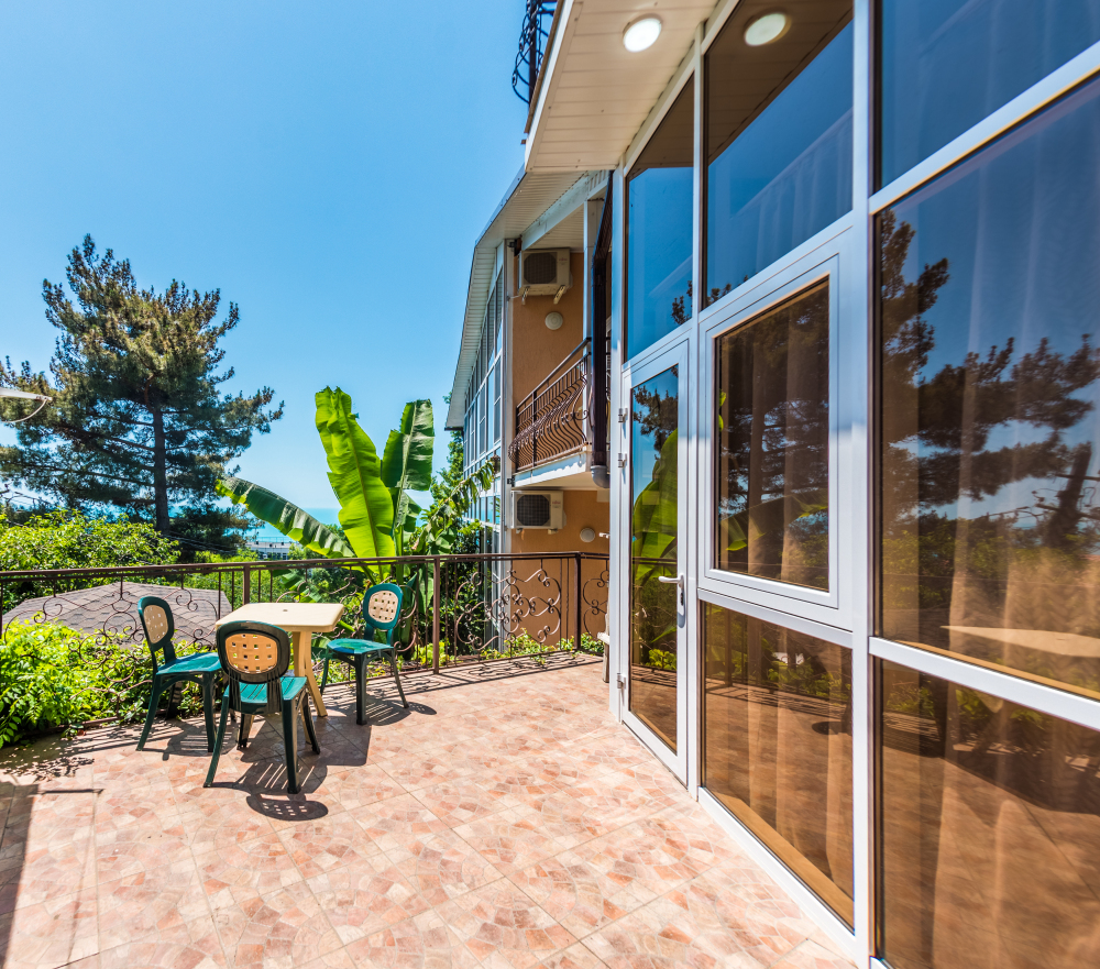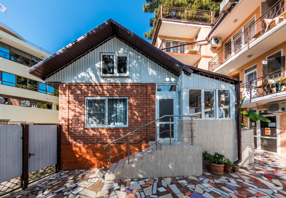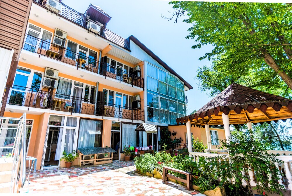 Отель располагается в курортном поселке Лоо, в 5-10 минутах неспешной ходьбы от моря, в 12 км от центра г. Сочи.