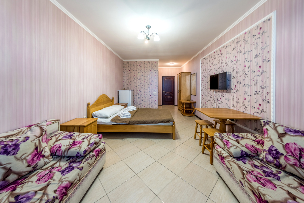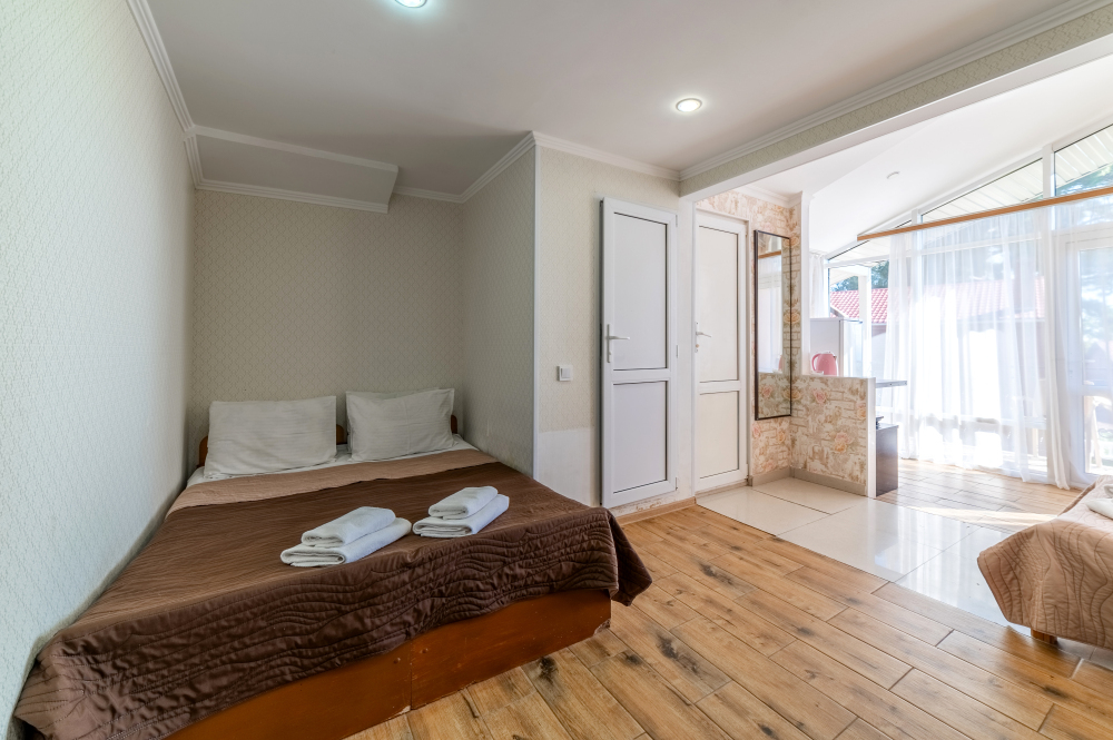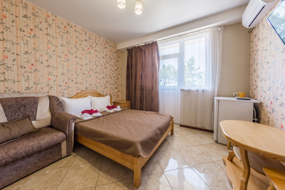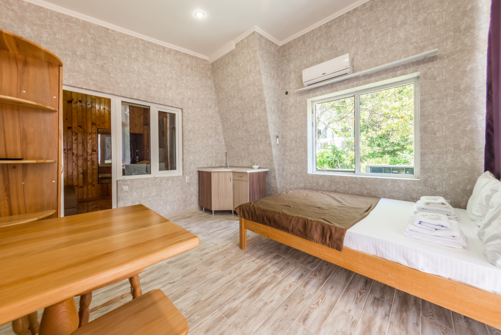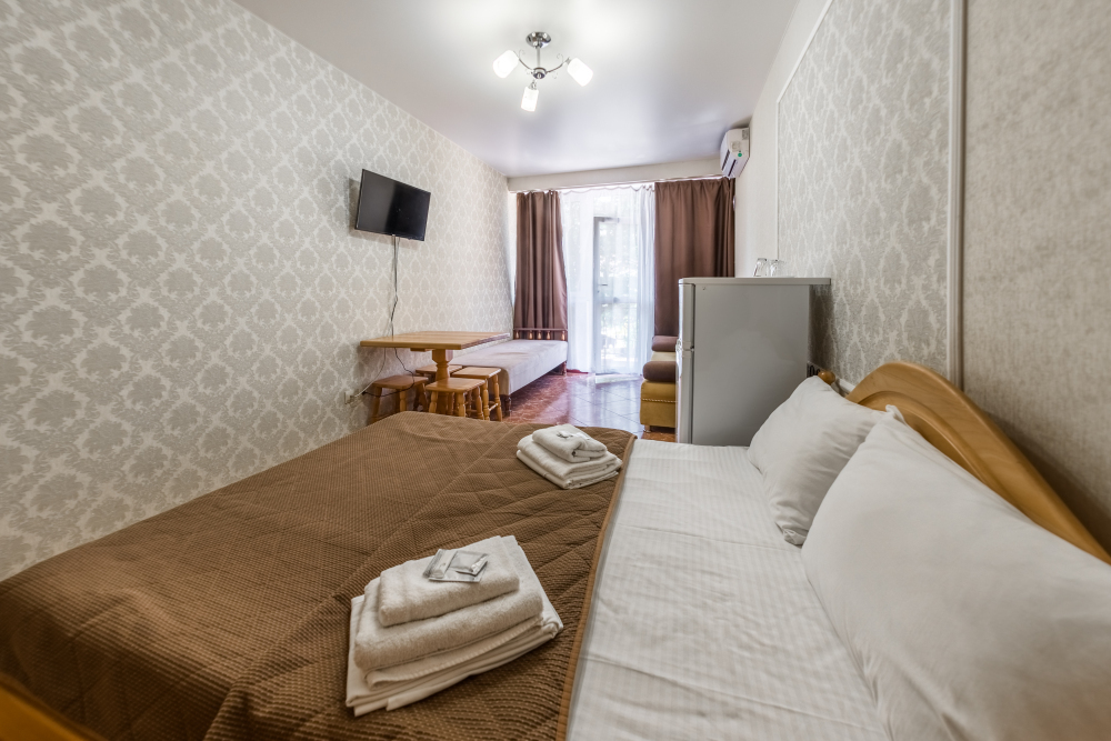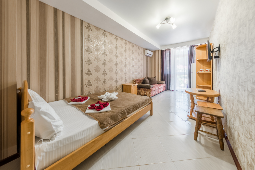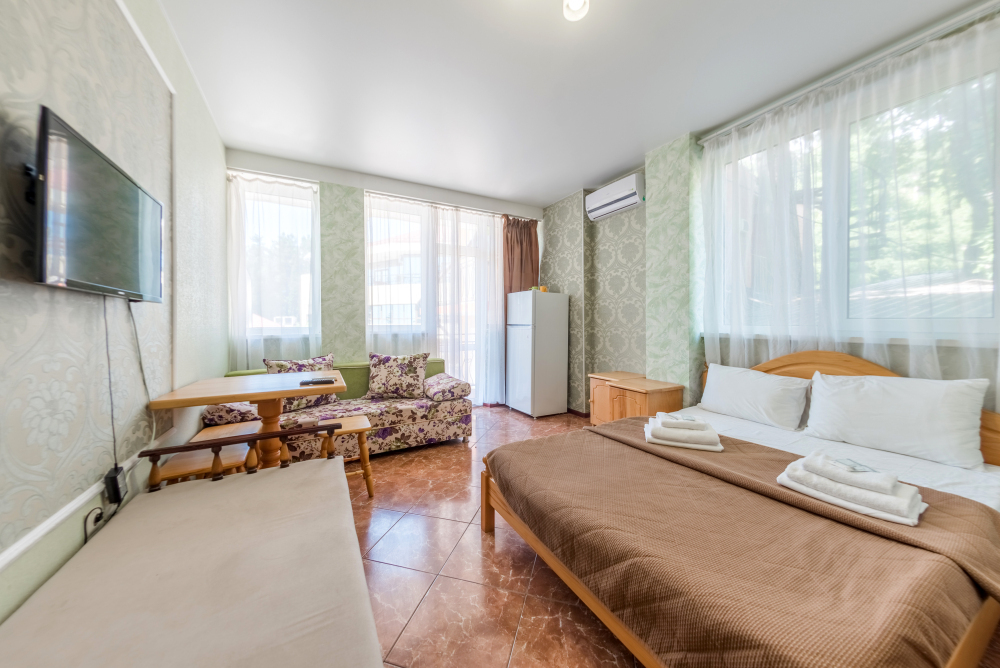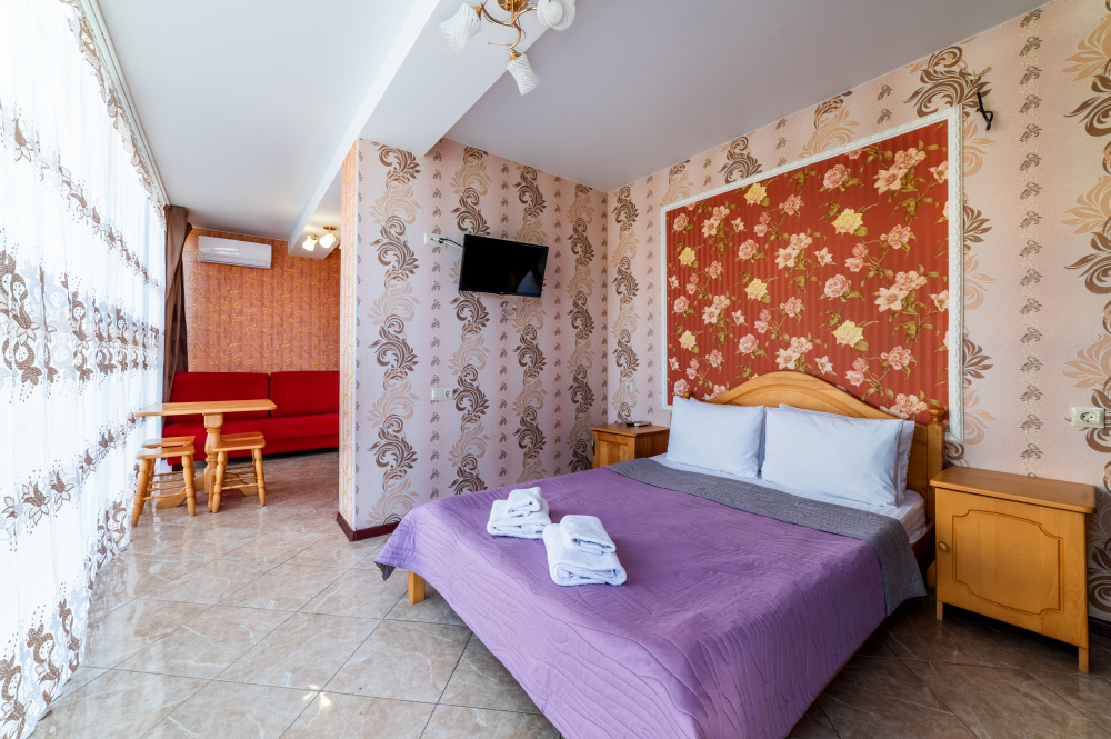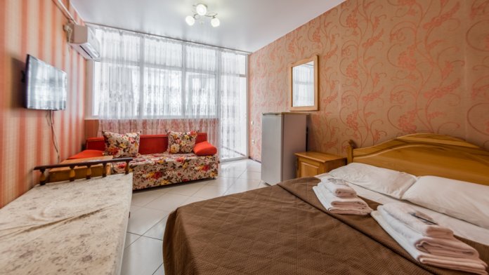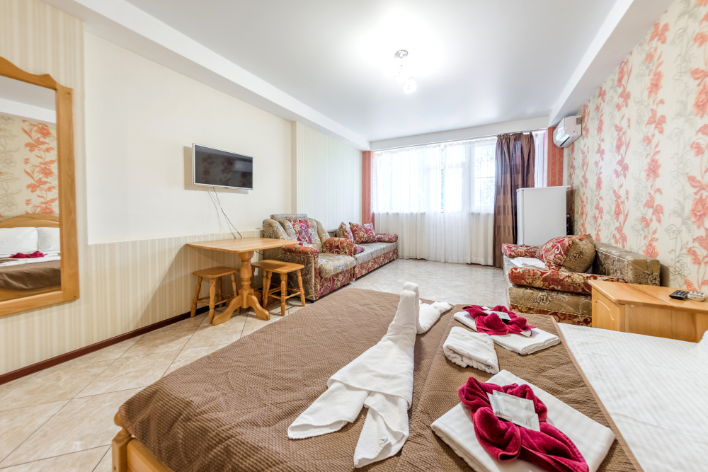 Отель располагается в курортном поселке Лоо, в 5-10 минутах неспешной ходьбы от моря, в 12 км от центра г. Сочи.