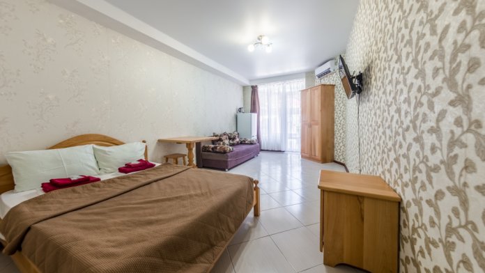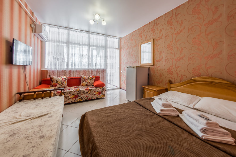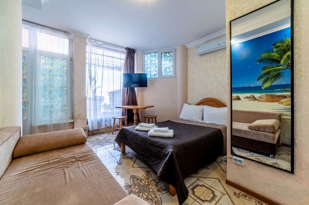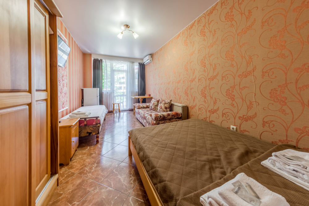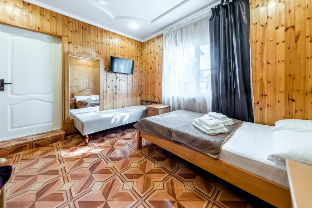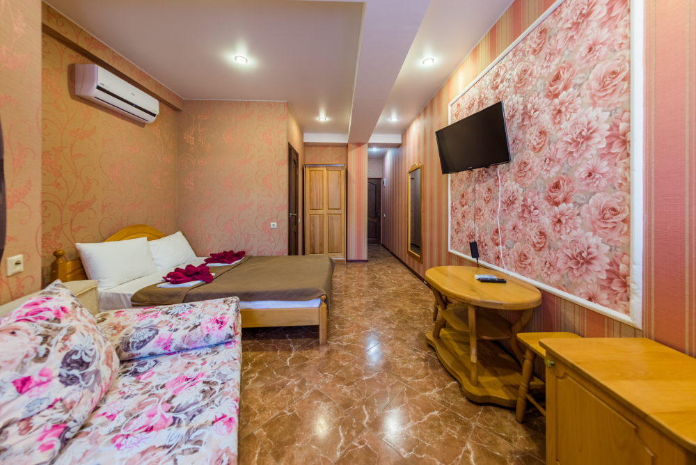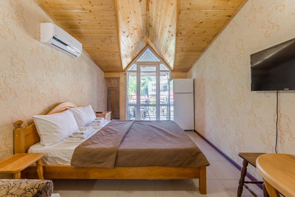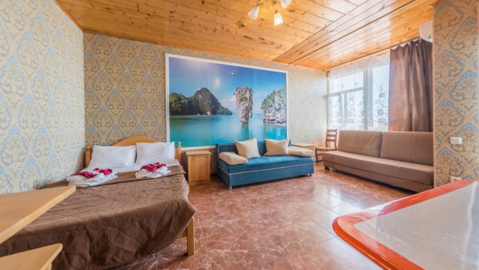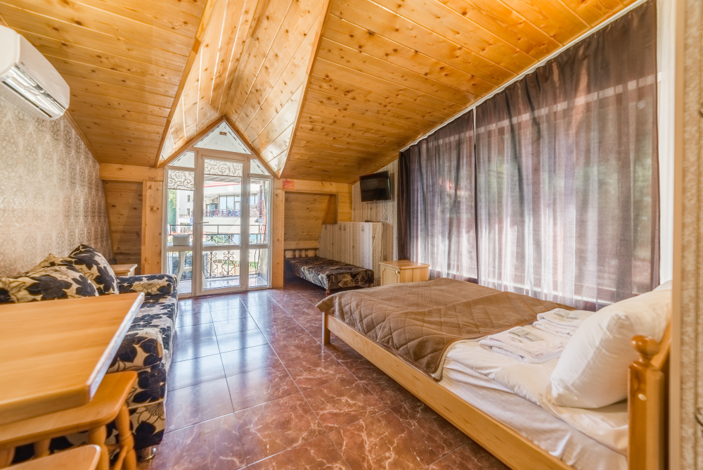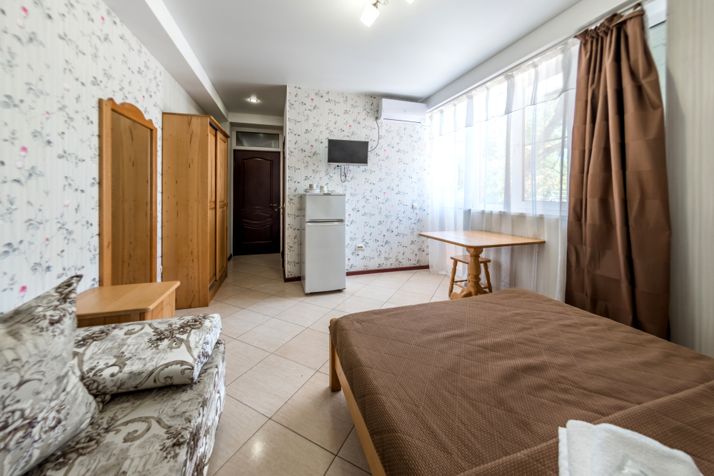 Отель располагается в курортном поселке Лоо, в 5-10 минутах неспешной ходьбы от моря, в 12 км от центра г. Сочи.