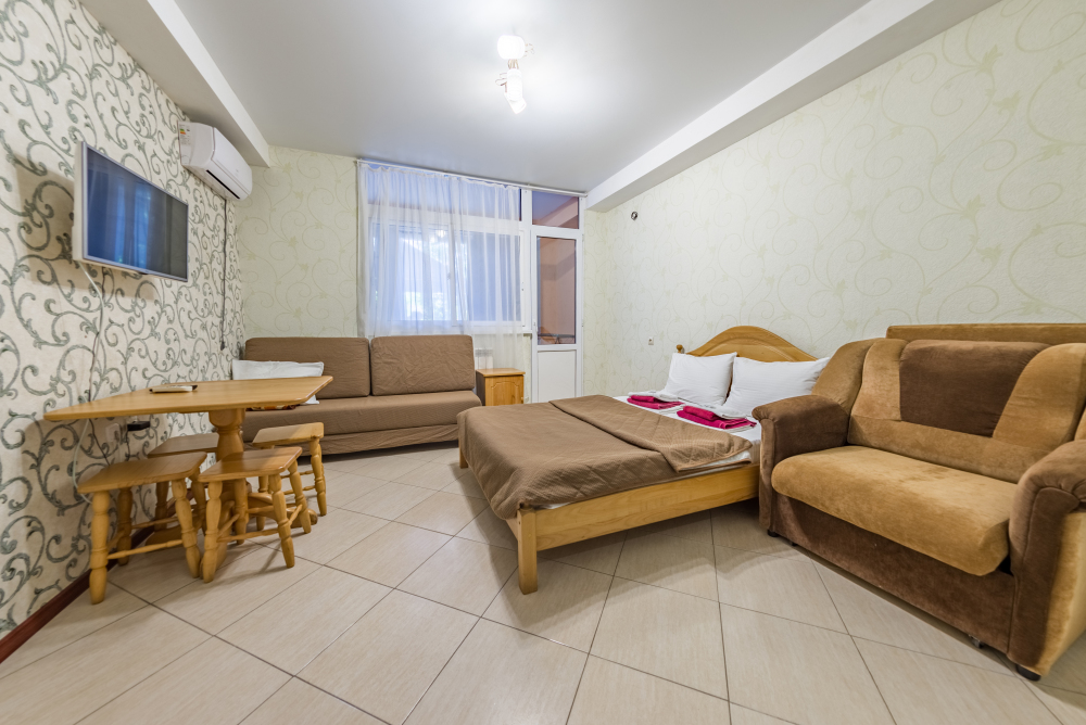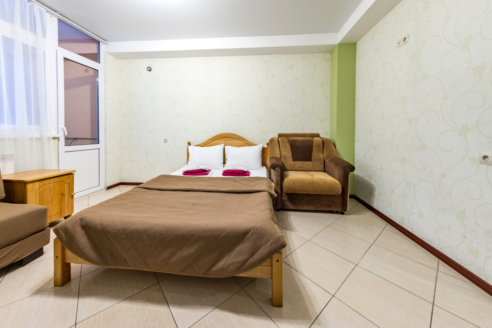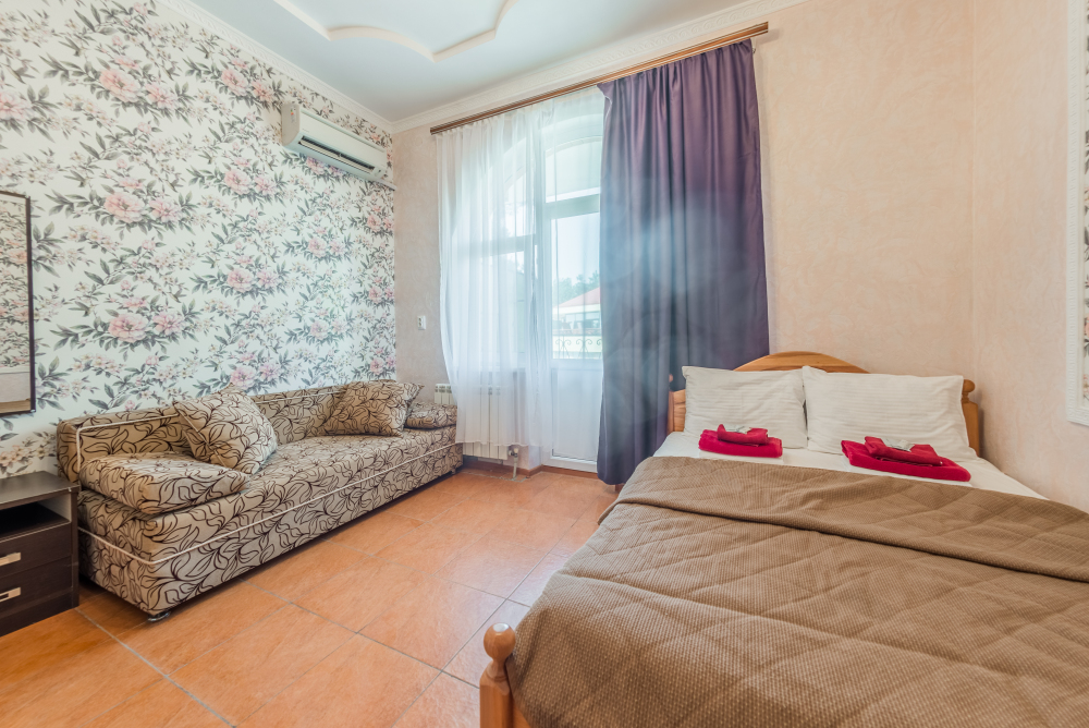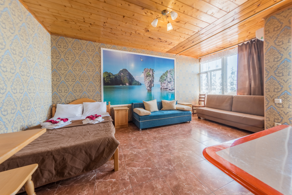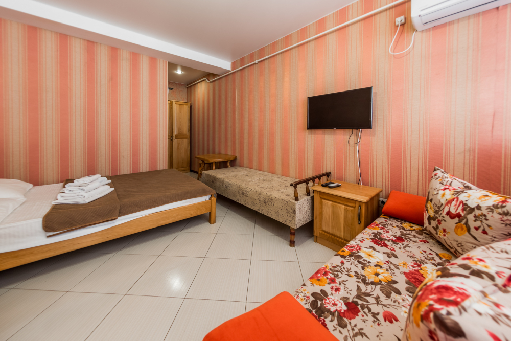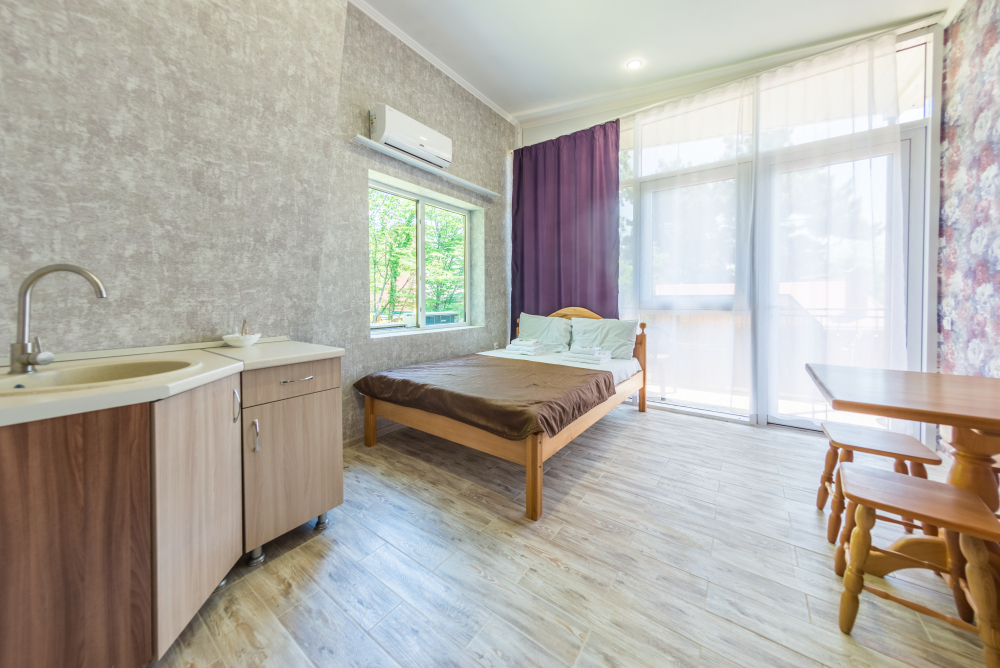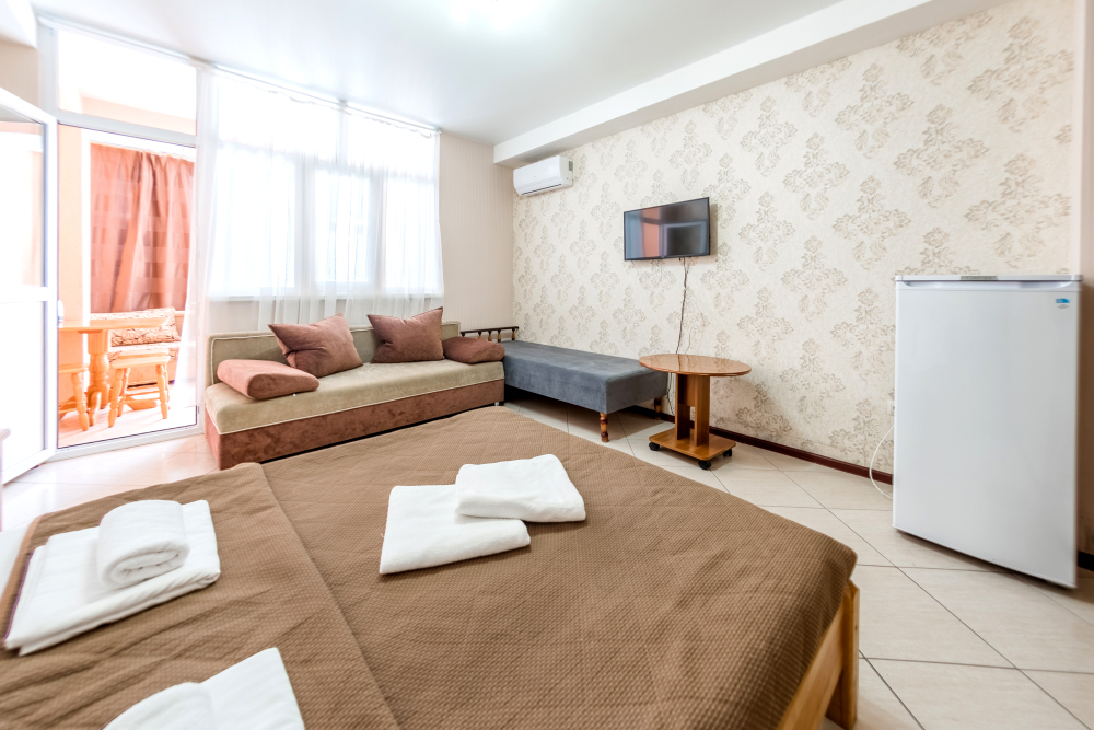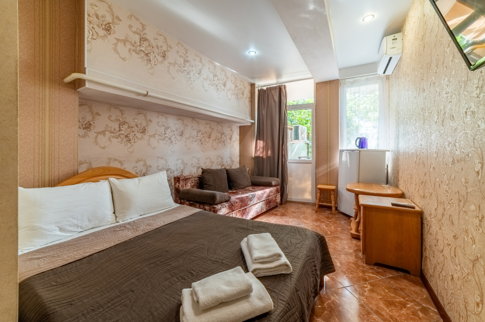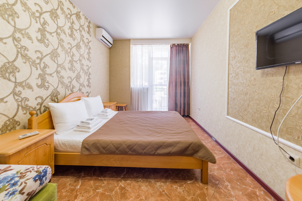 Отель располагается в курортном поселке Лоо, в 5-10 минутах неспешной ходьбы от моря, в 12 км от центра г. Сочи.
