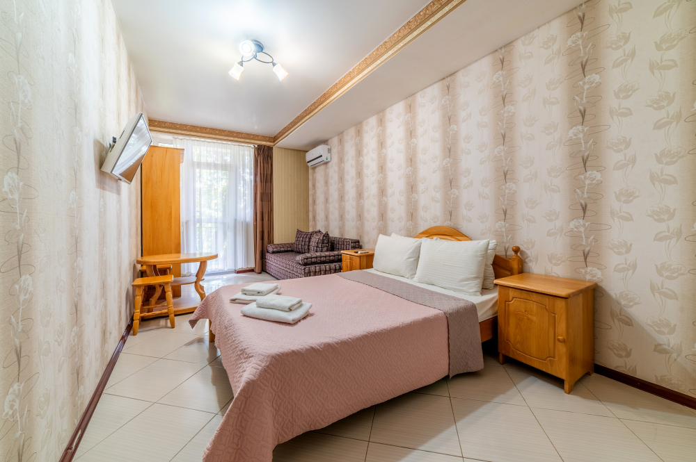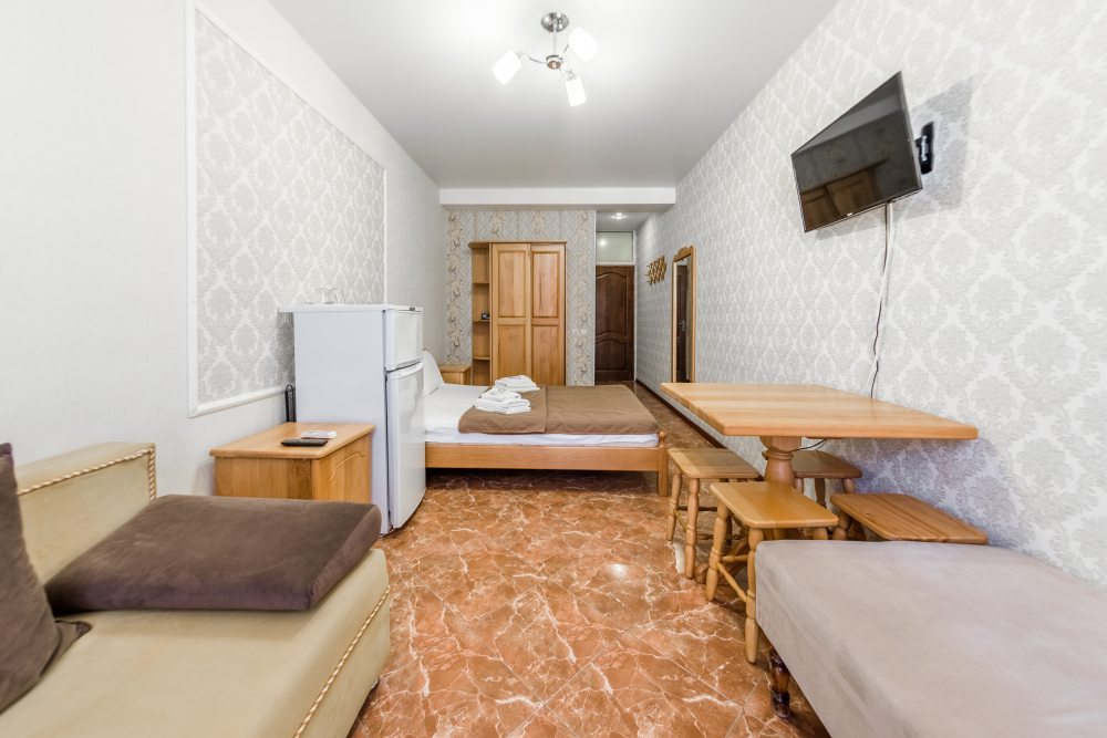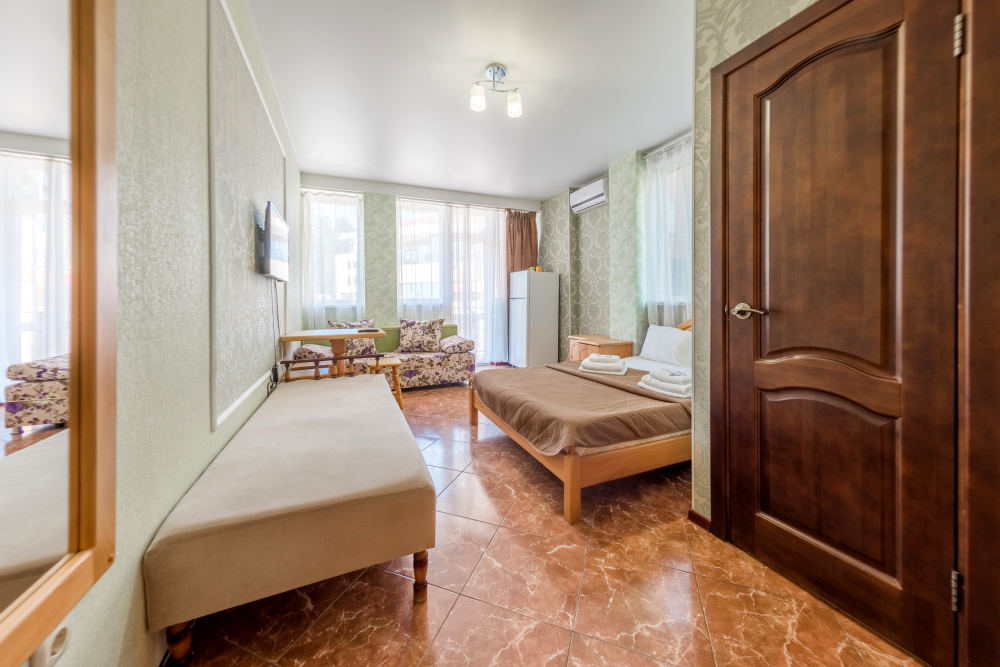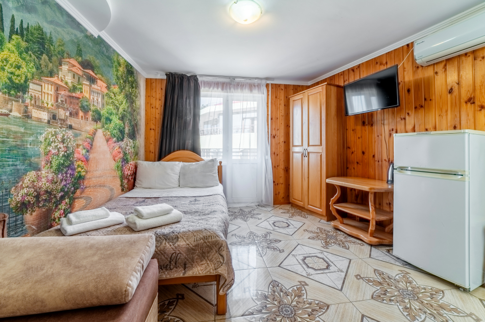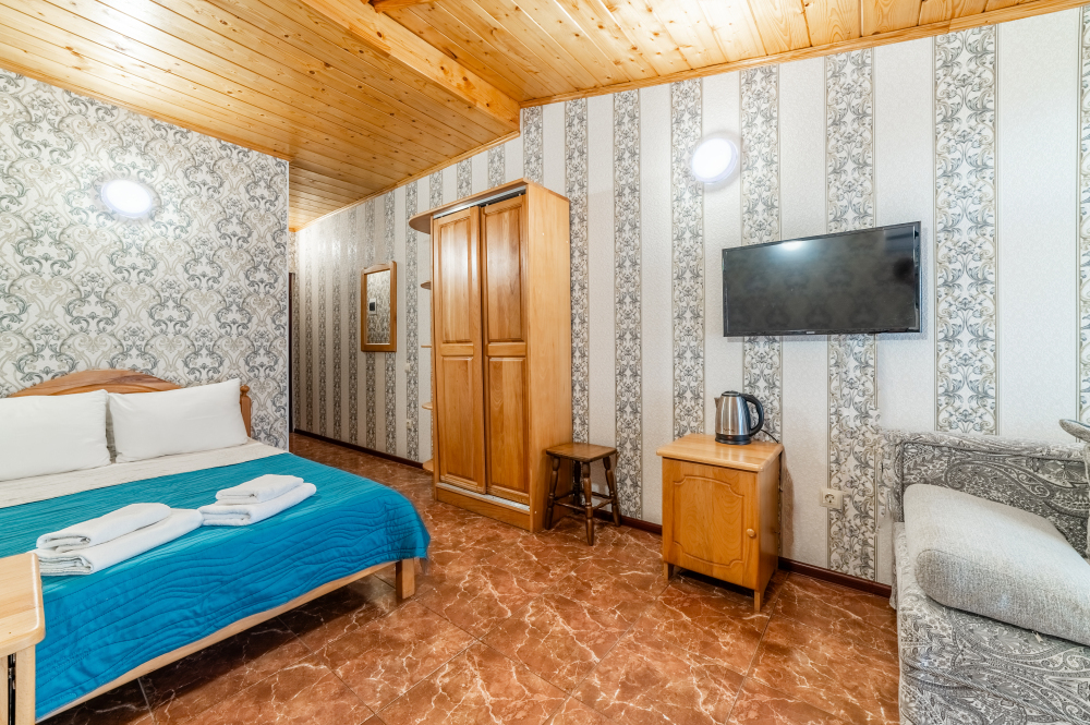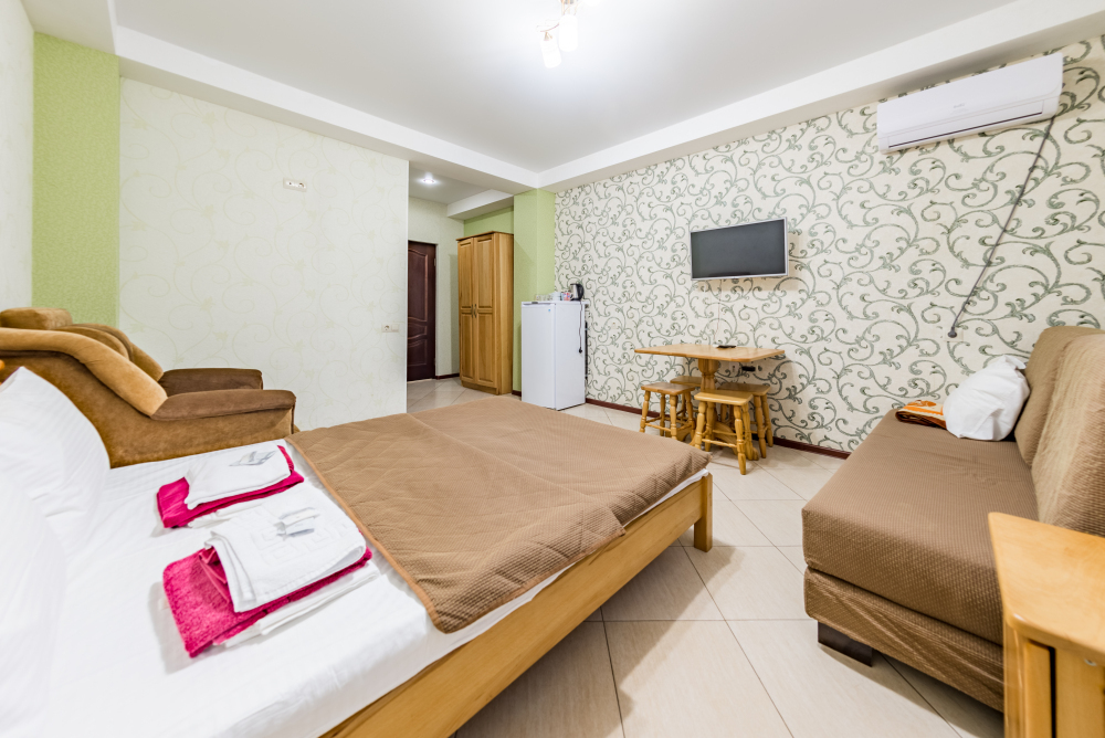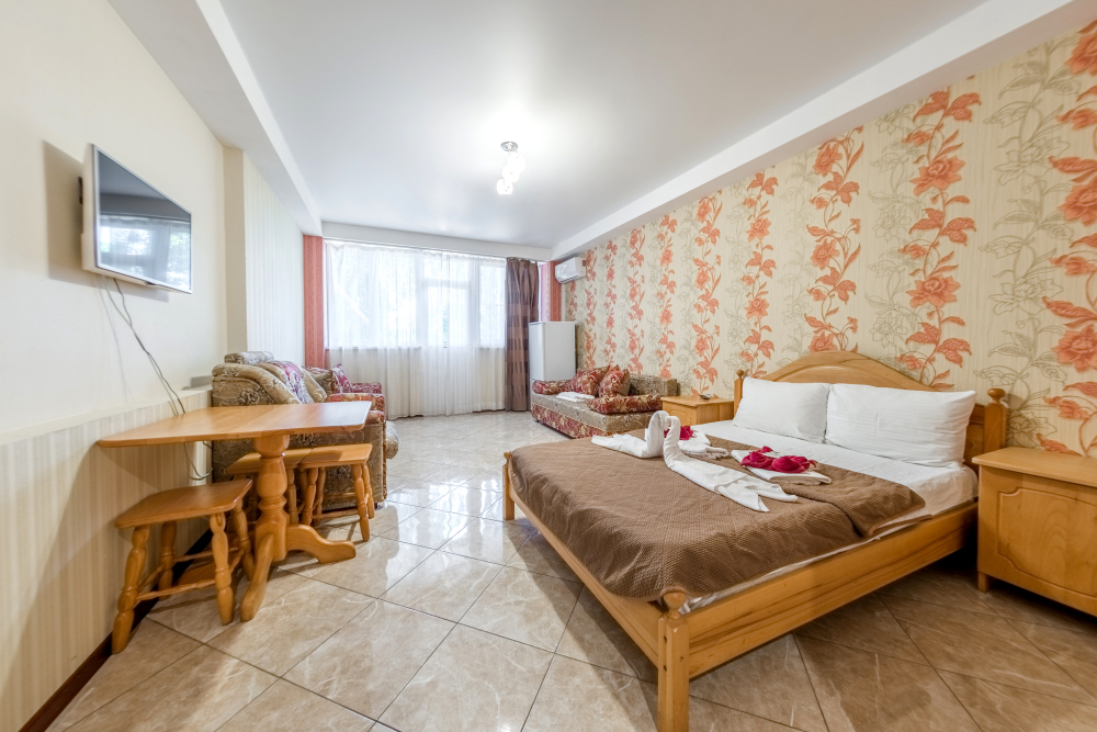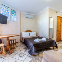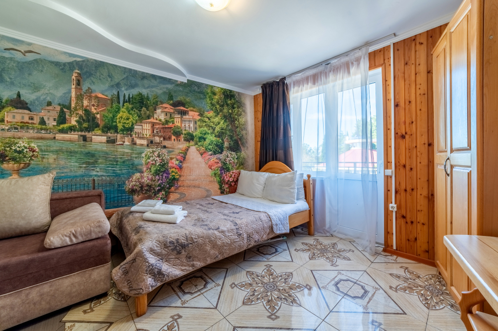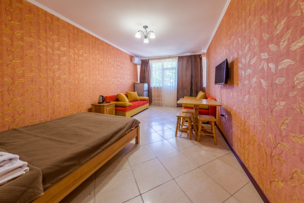 Отель располагается в курортном поселке Лоо, в 5-10 минутах неспешной ходьбы от моря, в 12 км от центра г. Сочи.