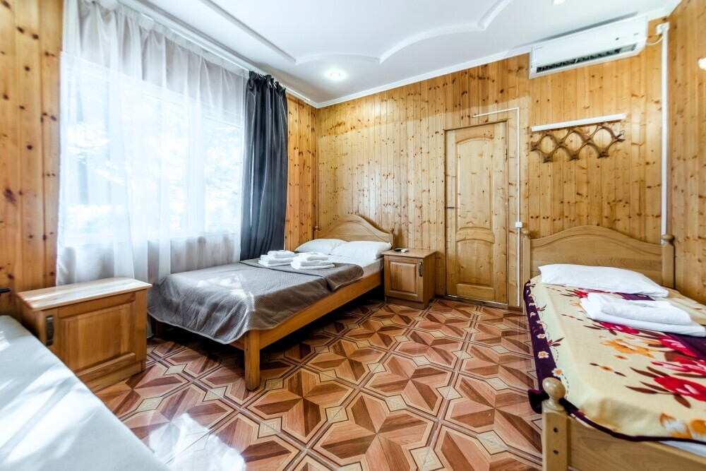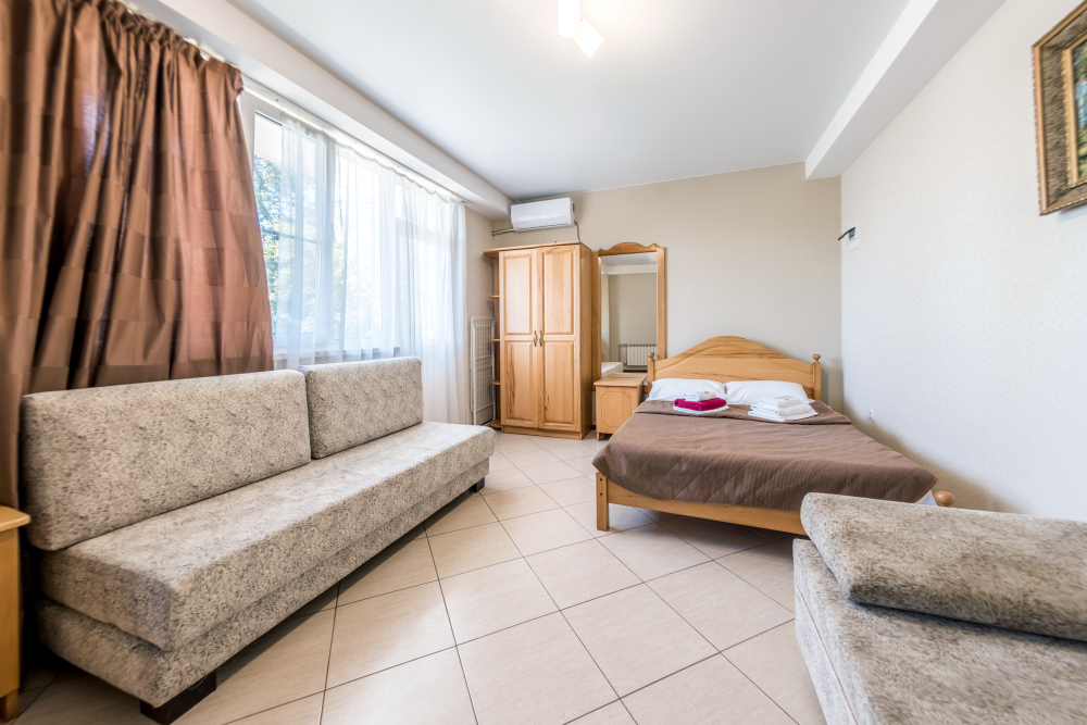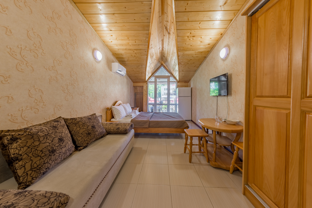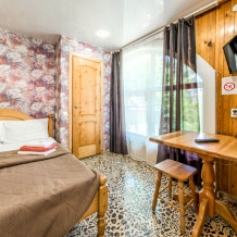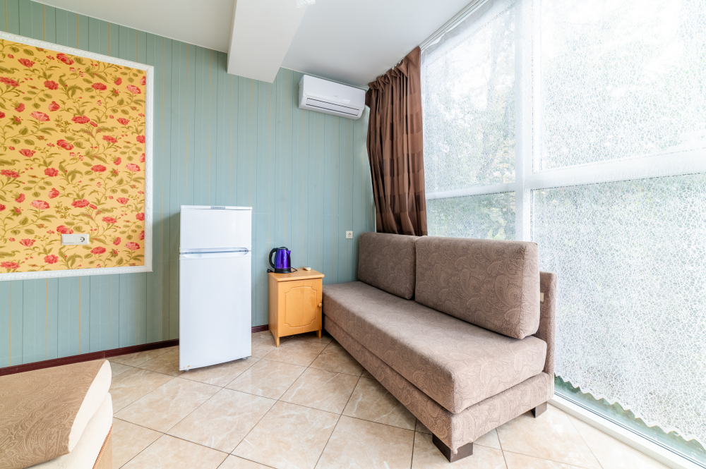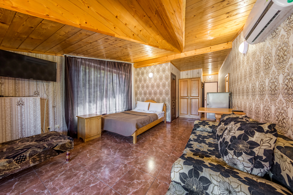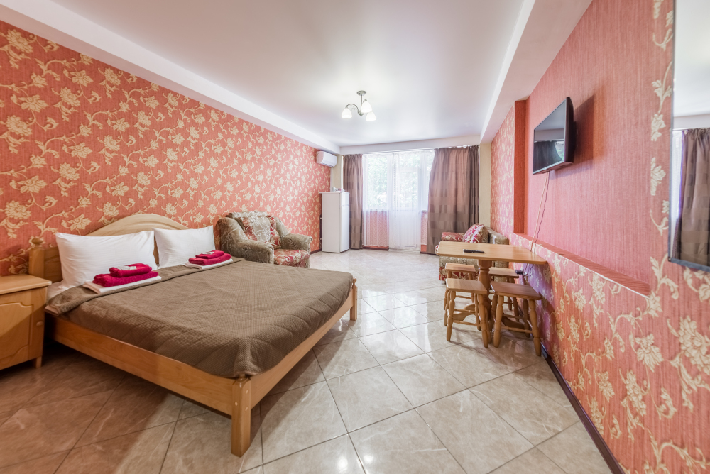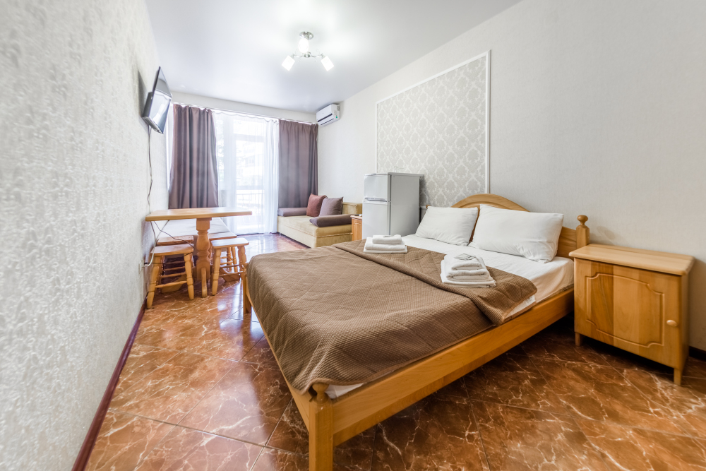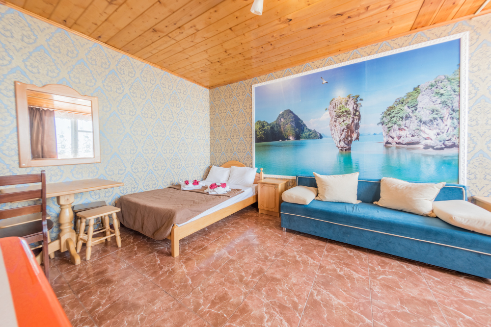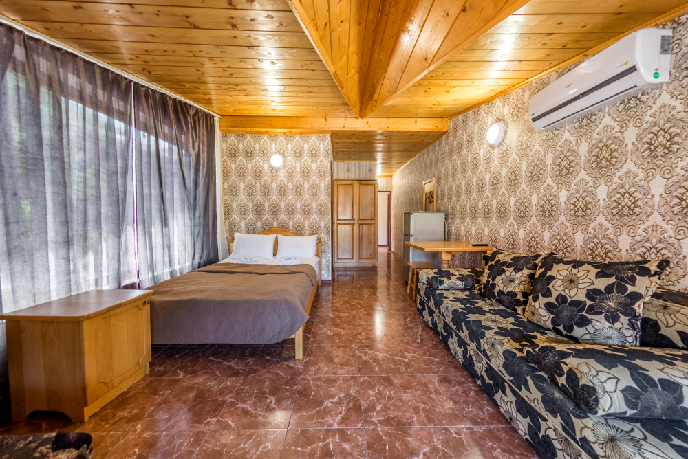 Отель располагается в курортном поселке Лоо, в 5-10 минутах неспешной ходьбы от моря, в 12 км от центра г. Сочи.